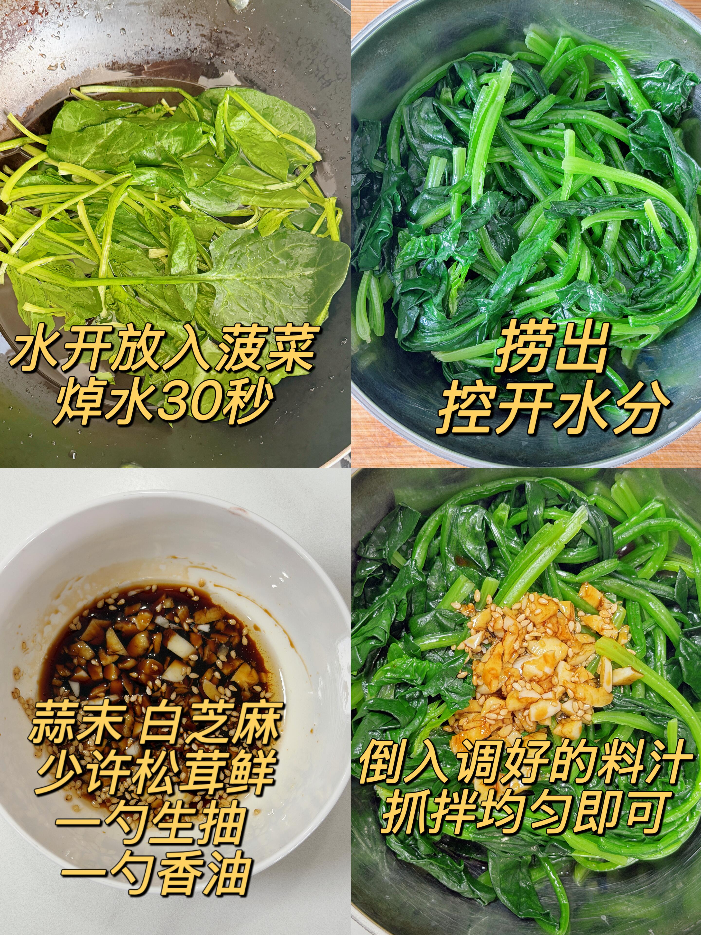 📌 菠菜控干水分这一步别偷懒,水分没挤干,料汁会被稀释,味道变淡,还会出水,影响整体口感