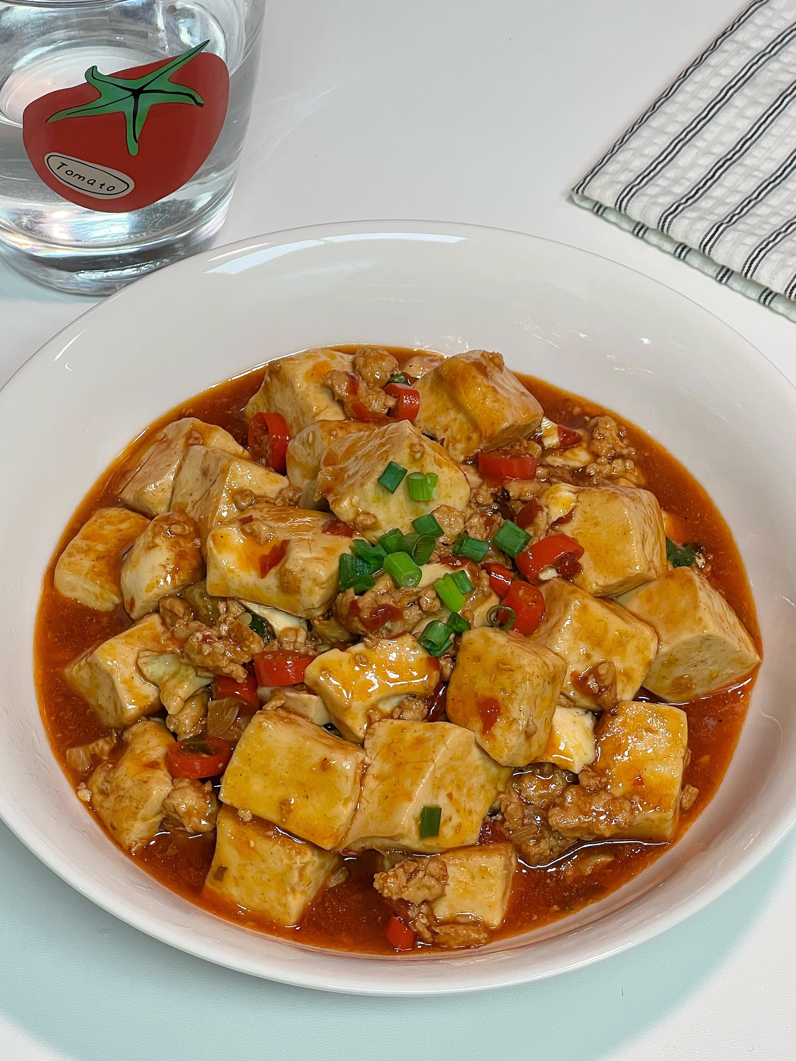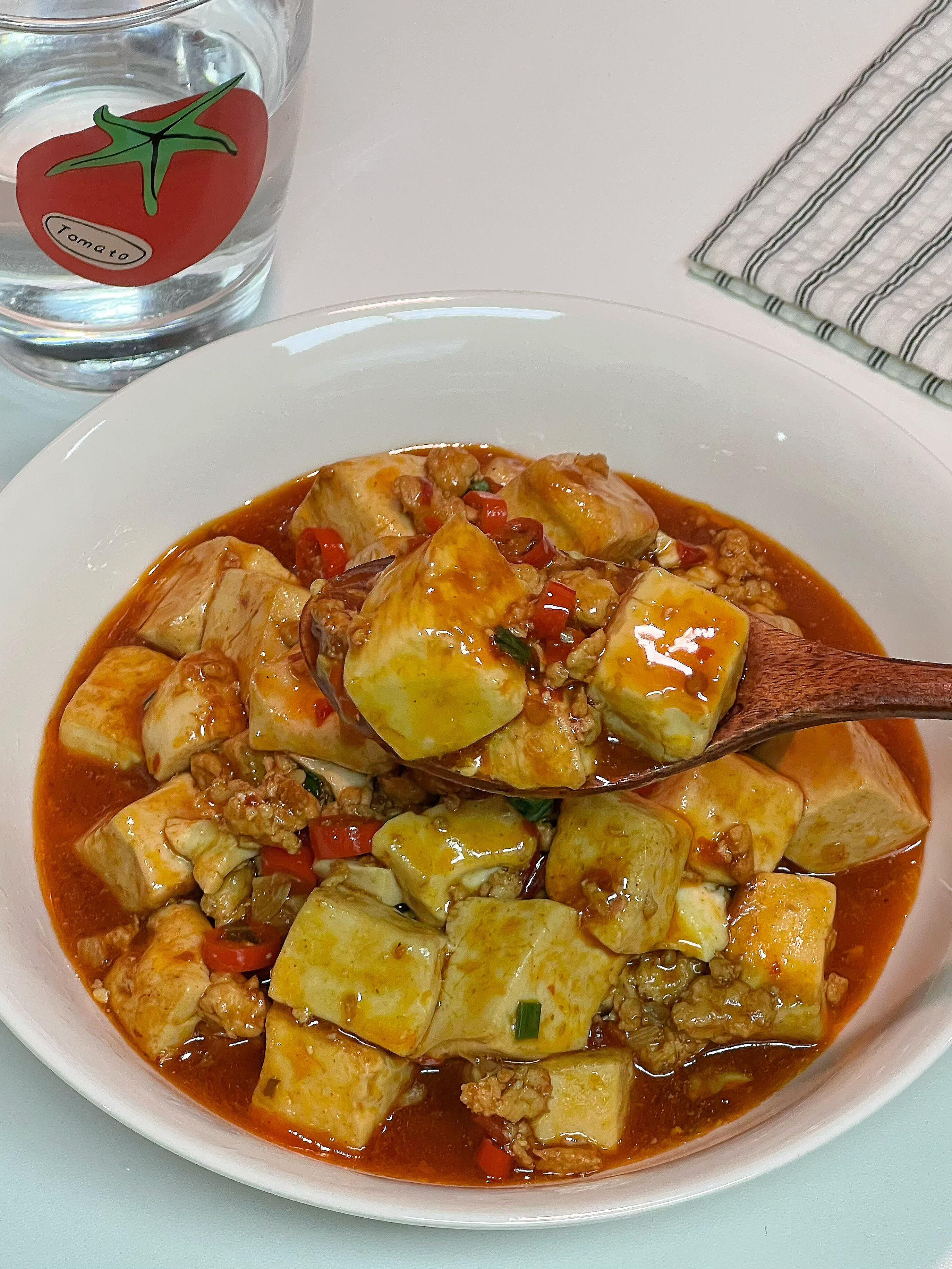 软fufu的嫩豆腐,吸饱了浓郁的麻辣酱汁,裹着鲜香的肉沫,每一口都嫩滑入味,麻辣不呛喉、鲜香不腻人,新手也能零失败,厨房小白闭眼冲就对了!