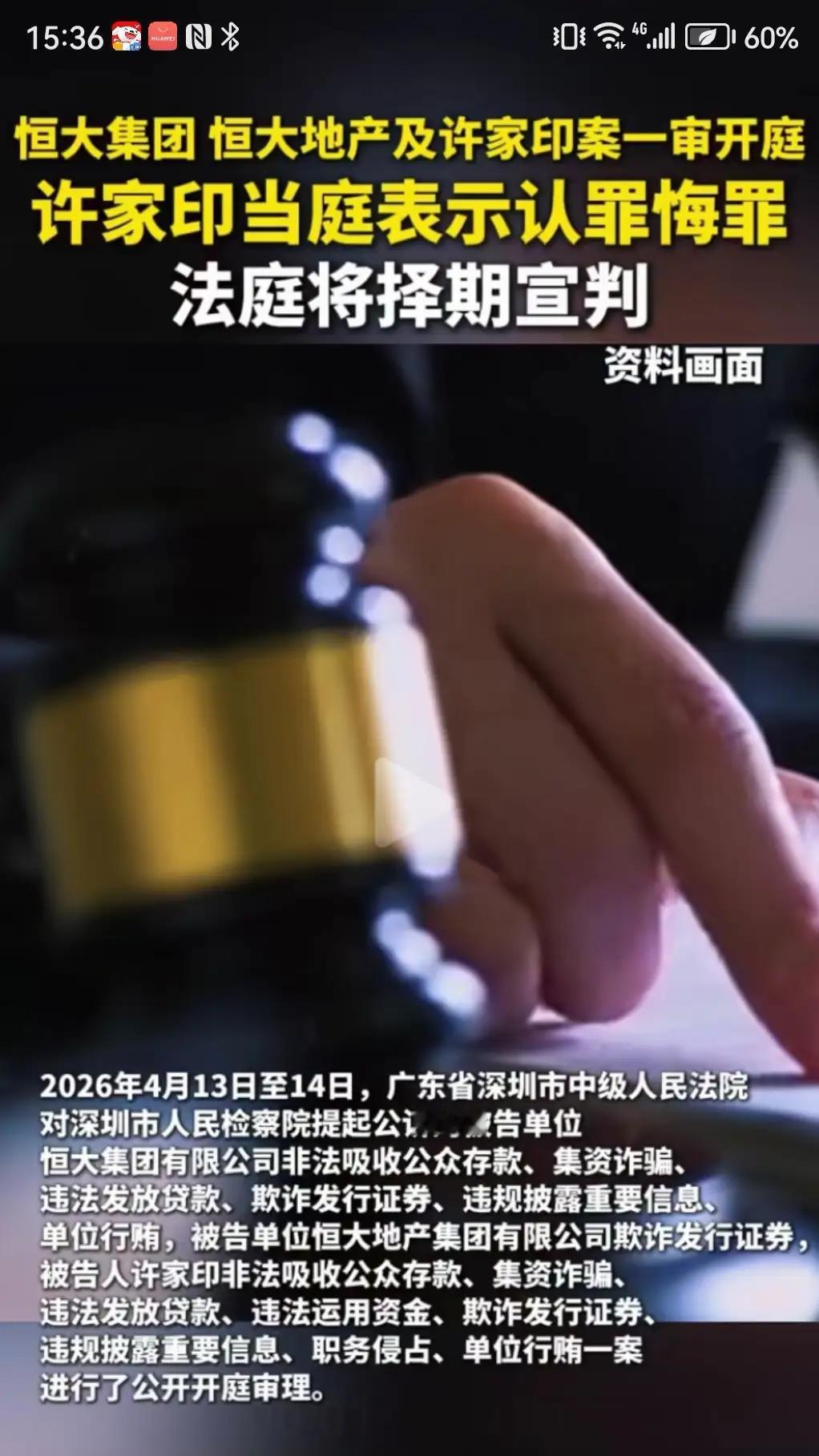 - 2026.4.13–14:案件一审开庭,许家印当庭认罪 。