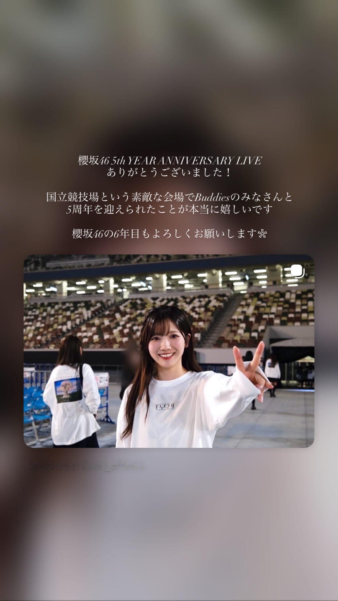 小田倉麗奈「櫻坂46 5th YEAR ANNIVERSARY LIVEありがとうございました!国立競技場というステージでBuddiesのみなさんと櫻坂46の5周年をお祝いできて嬉しかったです。関わってくださった皆さまに感謝でいっぱいです。これからもたくさんの素敵な夢を見られますように⁡、櫻坂46の6年目もよろしくお願いします!」