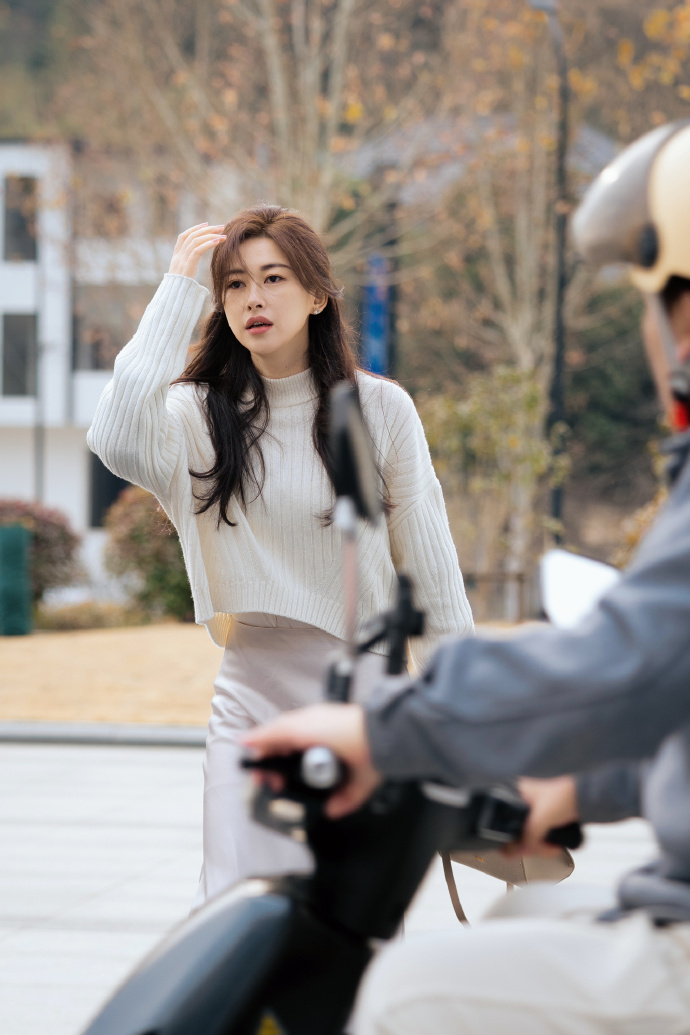辛芷蕾新造型美炸了!✨酒红真丝V领开衫自带柔润光泽,搭配斜纹花呢半裙,红棕撞