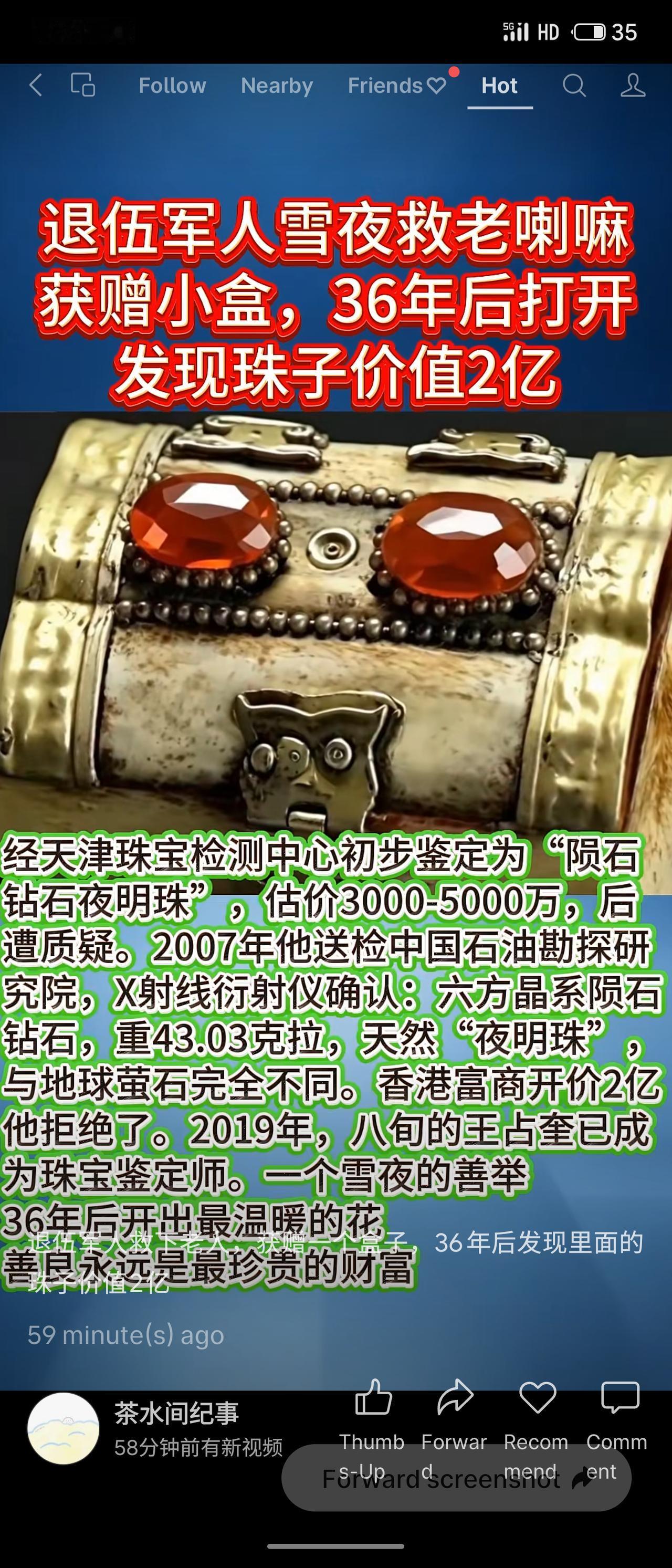 1971年冬,退伍军人王占奎在内蒙古雪地救了一位老喇嘛,获赠一个小盒。他随手一放就是24年,1995年整理旧物时才发现盒中有一颗会发光的珠子。经多次鉴定,确认为重43.03克拉的“陨石钻石夜明珠”,曾有香港富商开价2亿元,但他拒绝了。2019年,年过八旬的他已成为珠宝鉴定师。雪夜善举,终得温暖回响。