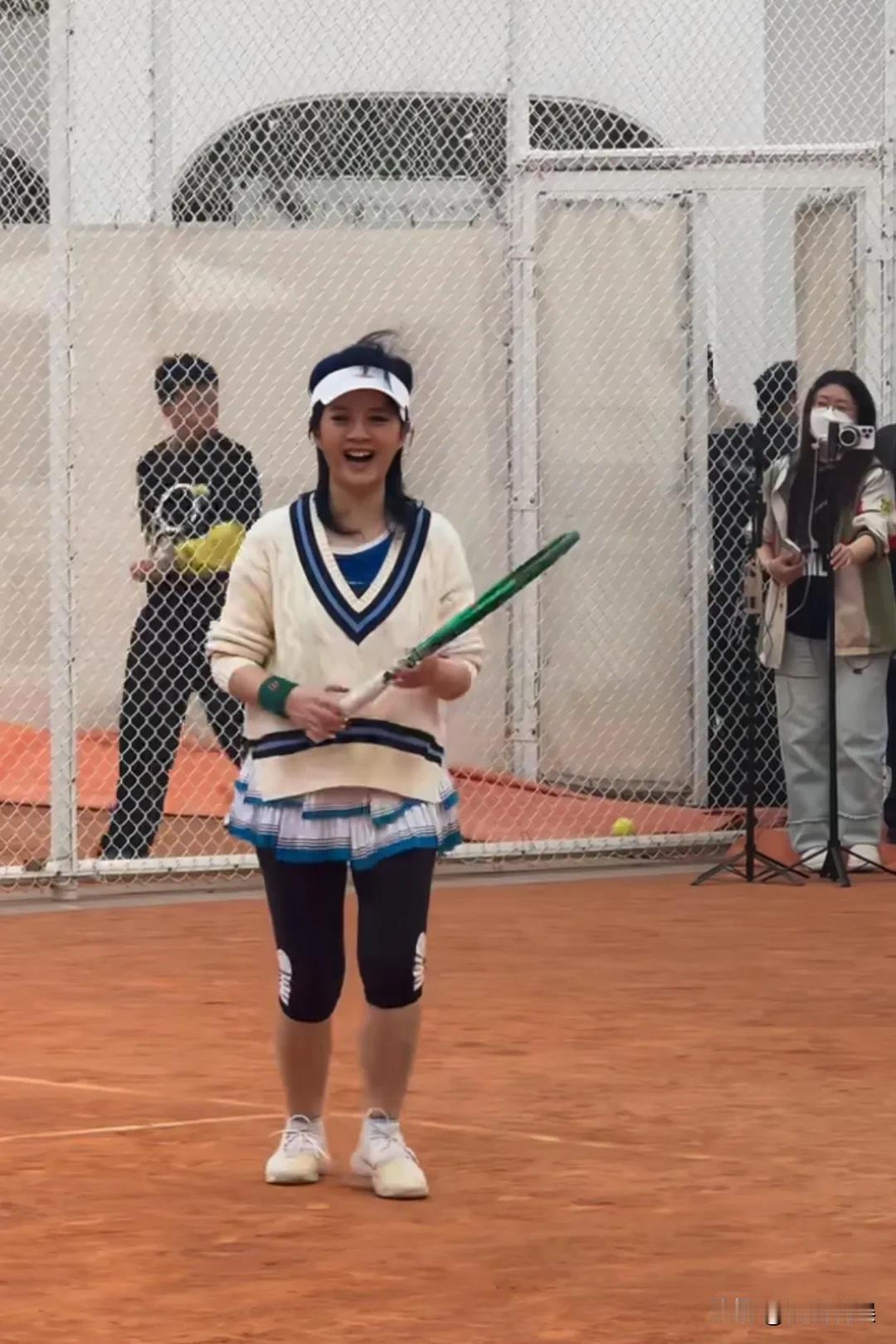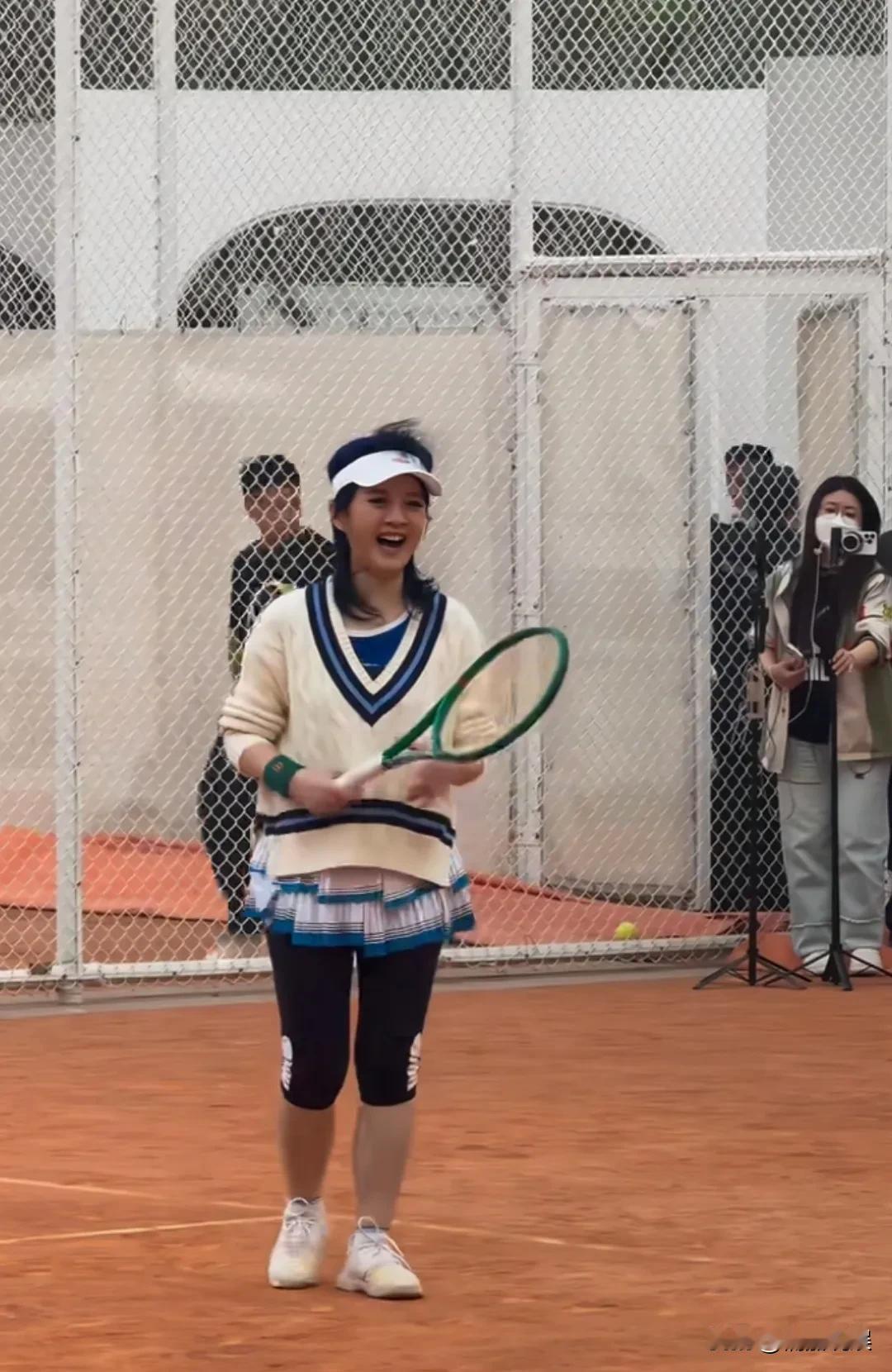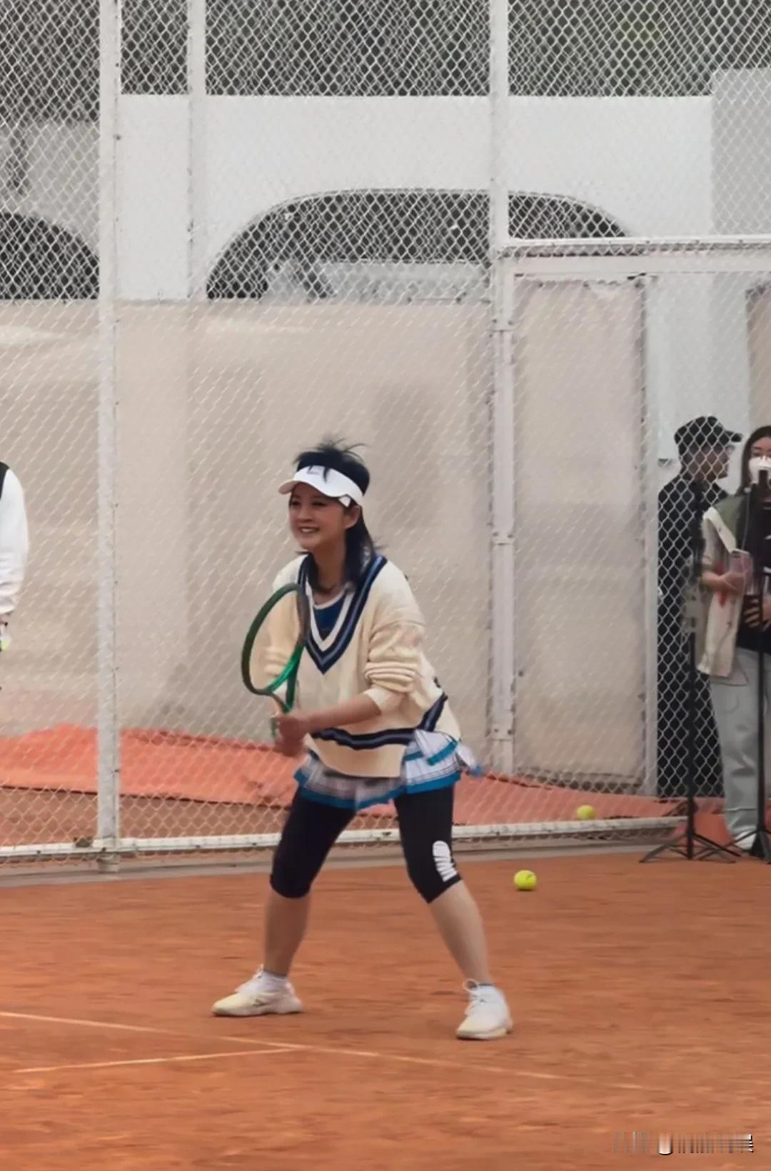 她现身明星网球邀请赛,穿着一件白色的针织衫配齐膝紧身裤,身材发福,双下巴圆润,腿也挺粗的,外形变化好多,与以前精致、知性的样子,相去甚远。