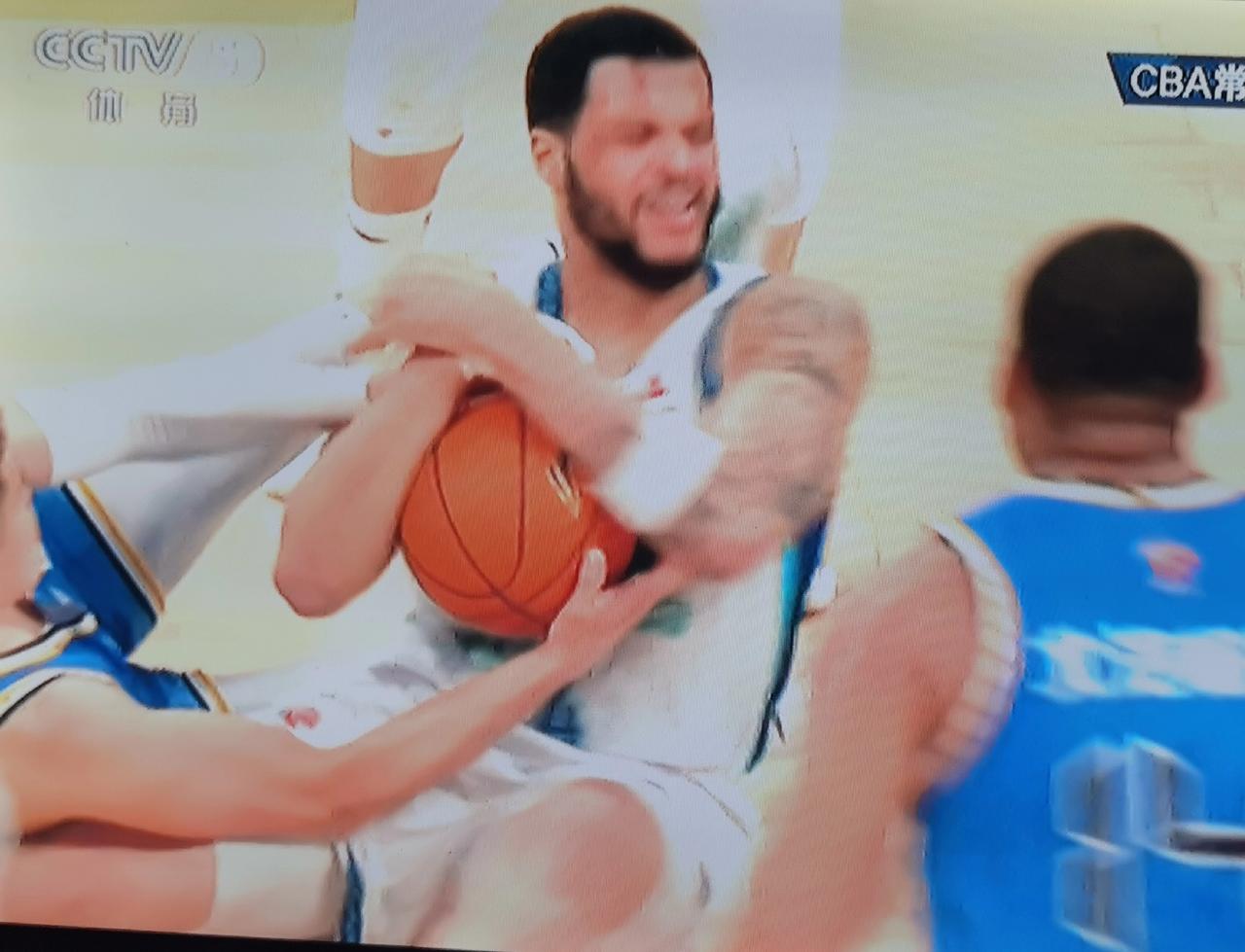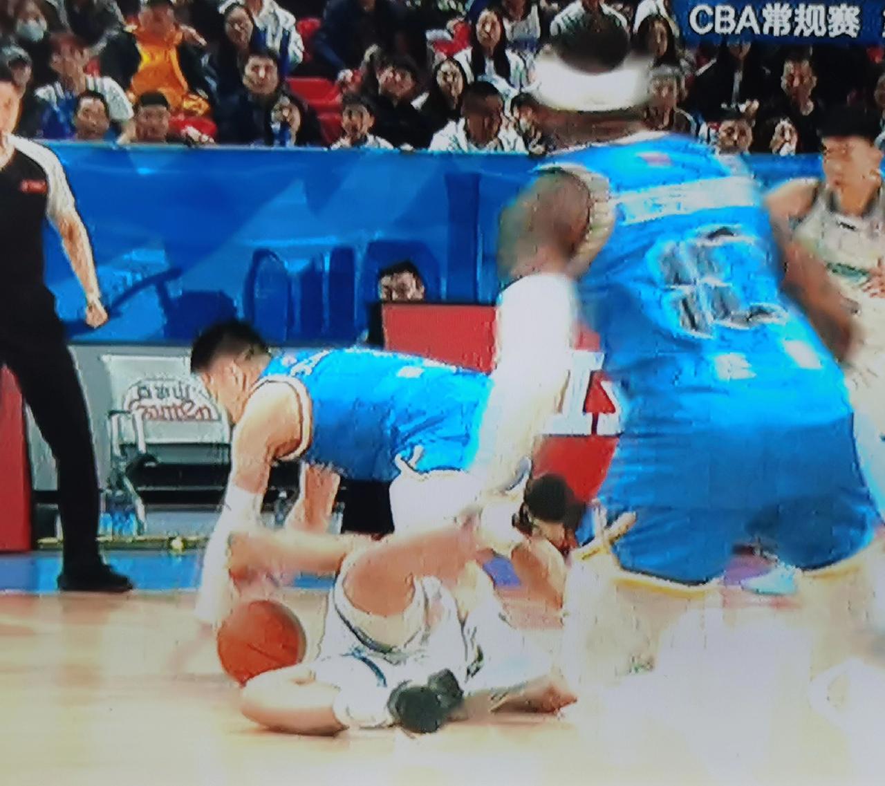 又是陈盈骏。 今晚北汽主场对青岛,第三节6分20秒左右,陈盈骏借抢球之机压伤威瑟
