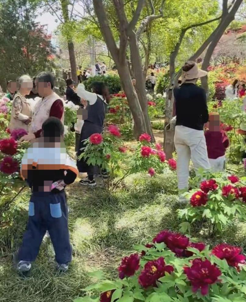 近日牡丹盛开,游人如织,但在周边有围栏,禁止游客进入的标语,且有保安和其他工作人员执勤的情况下,仍然有很多没有素质的游客强行闯入花池,拍照,甚至有人折花!!!