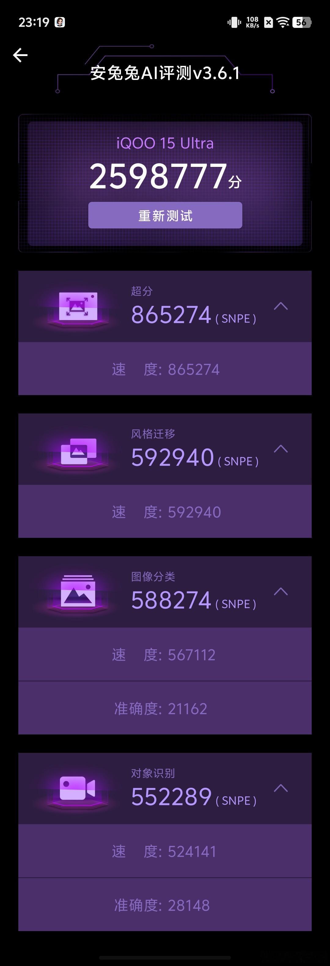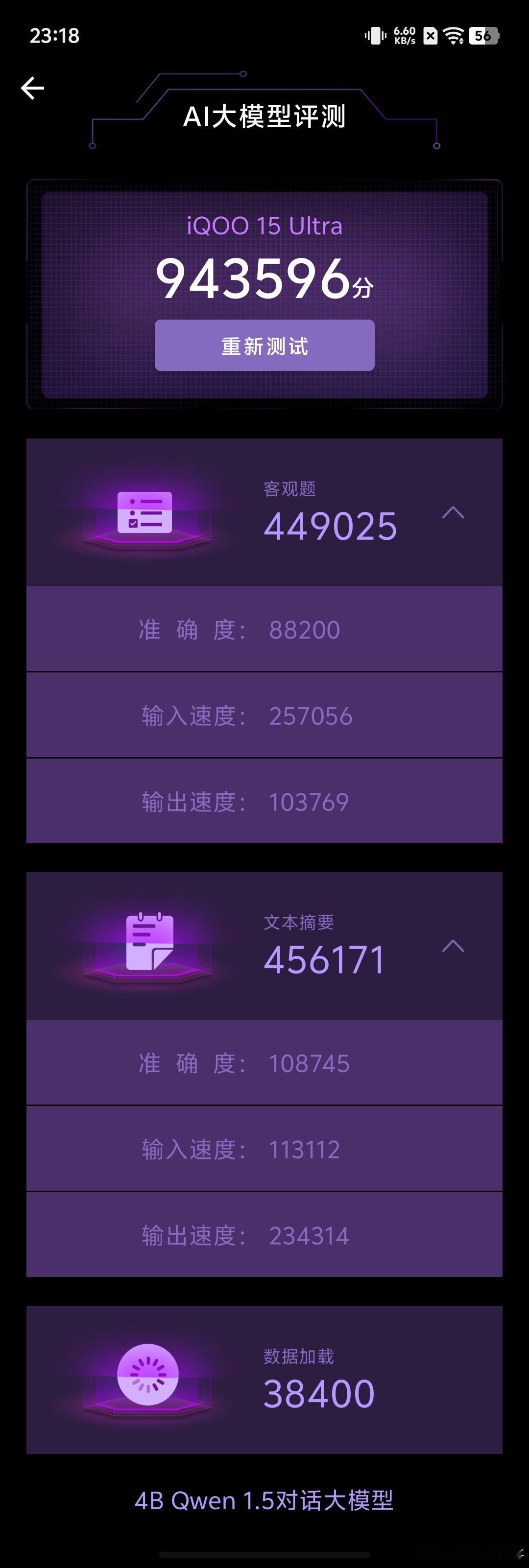 iQOO15 Ultra今天闲来没事,特意用安兔兔跑了一下AI大模型评测,没想到成绩非常满意。