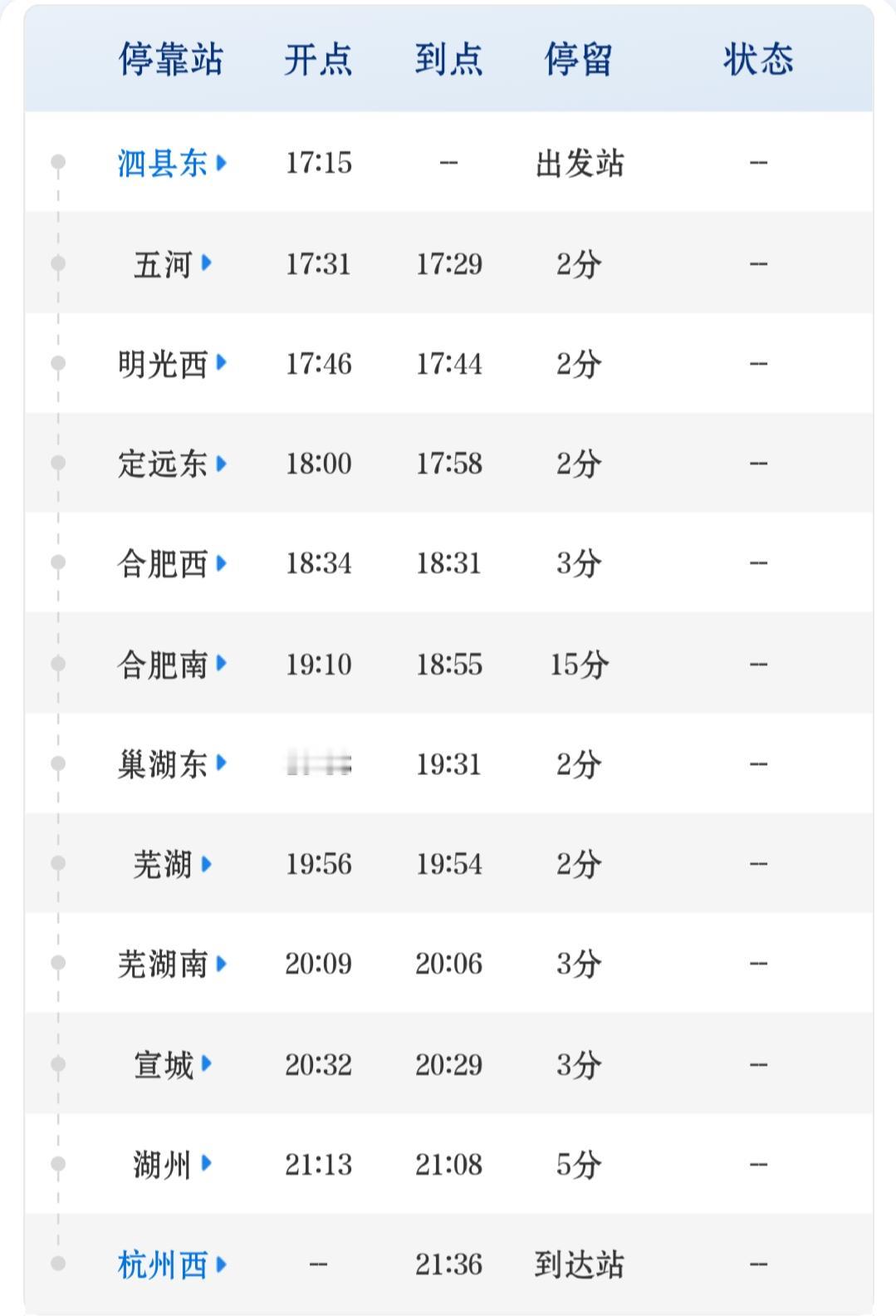 泗县东刚通直达杭州西,4小时21分就能到 ,皖北人去长三角终于不用绕路。可对比砀山就有点扎心——2016-2022年砀山南到杭州最快3小时30分左右,现在调图后直达车普遍要4小时40分甚至6小时以上 ,反而变慢了。