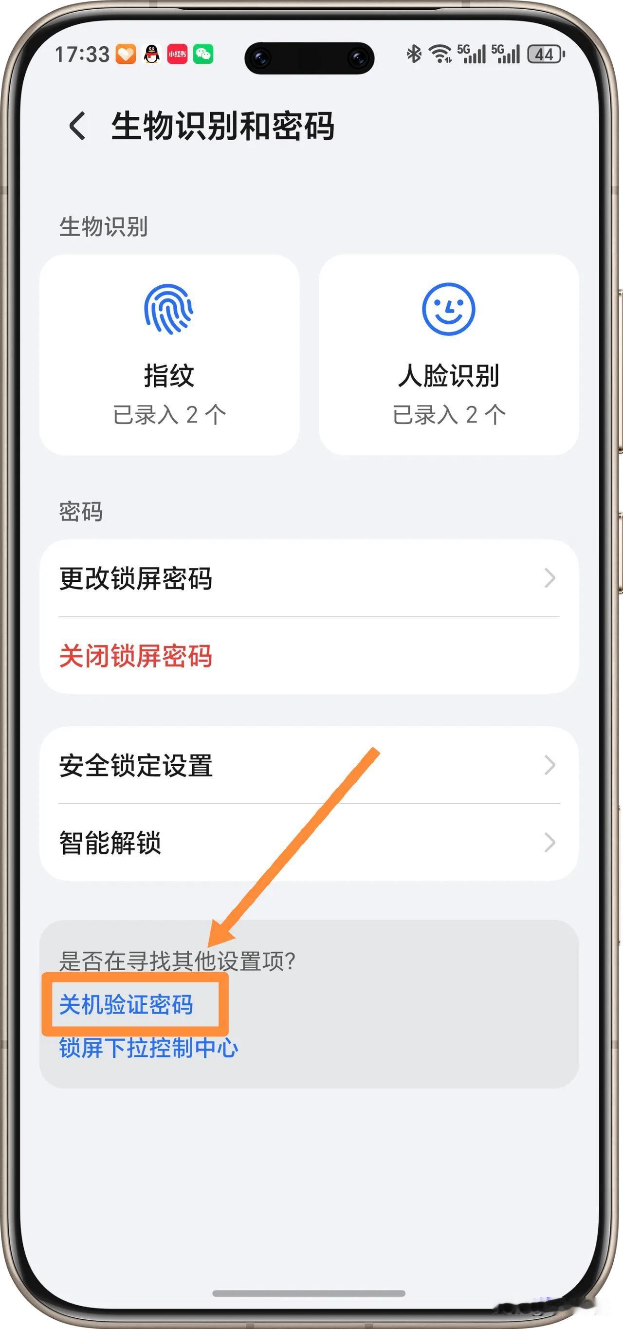 设置路径: 设置 → 生物识别和密码 → 关机验证密码(打开它!)