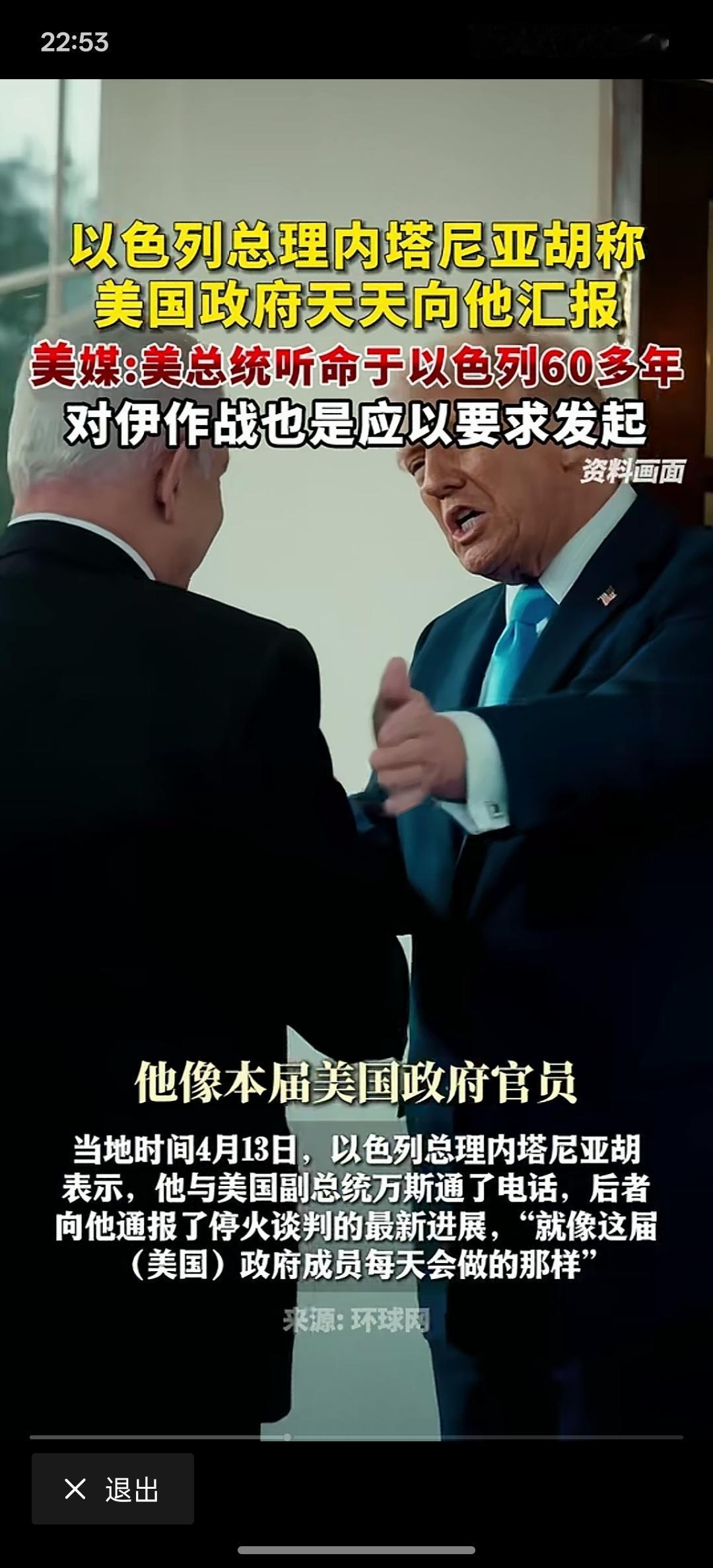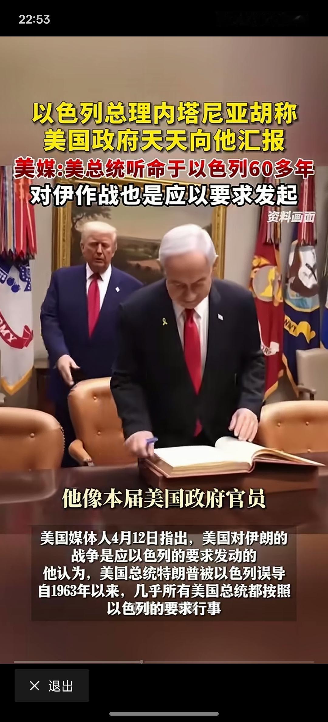 内塔尼亚胡还真敢说,美国政府天天向他汇报工作,对伊朗发动战争也是以色列要求的,这完全是不给美国任何面子,一个美国居然要向以色列总理天天汇报工作,这是上级跟下级汇报工作的态度,以色列是美国他爹吗?
