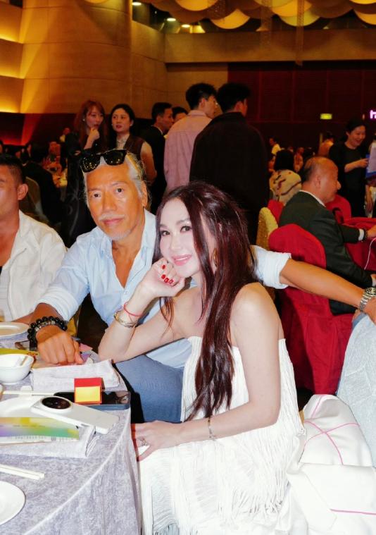 4月12日夜,香港会展中心五楼宴会厅,曾志伟「寺同道合」慈善素宴上“乌鸦哥”张耀扬、温碧霞和汤臣国际娱乐公司总监汪曼玲合影。 自2020年起,曾志伟每年生日前夕都会举办大型慈善素宴,筹集善款用于特区寺庙修缮。 港星 张耀扬