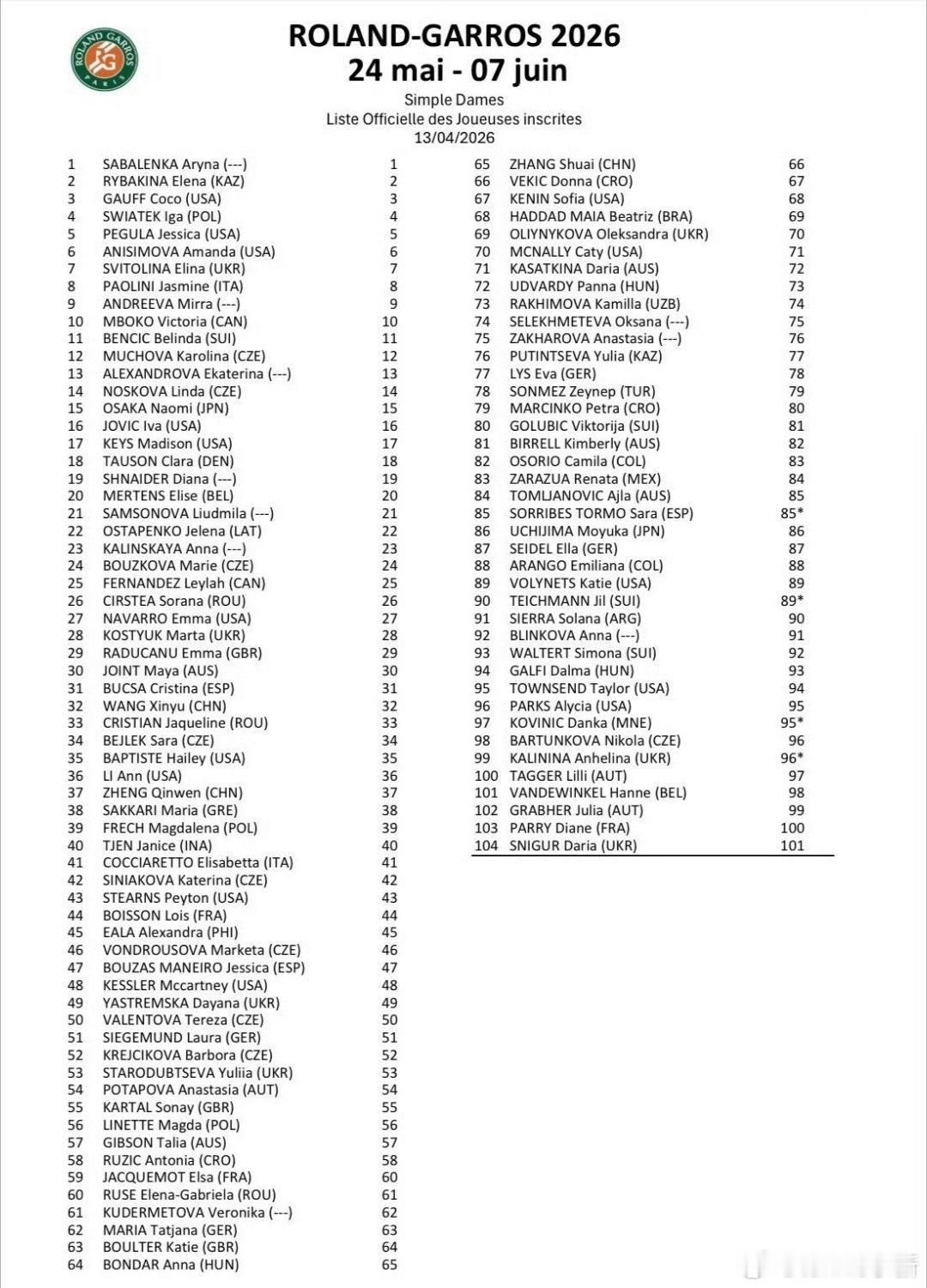法网正赛名单公布✍️2026法网男单正赛名单公布,张之臻、吴易昺两位中国大陆选手