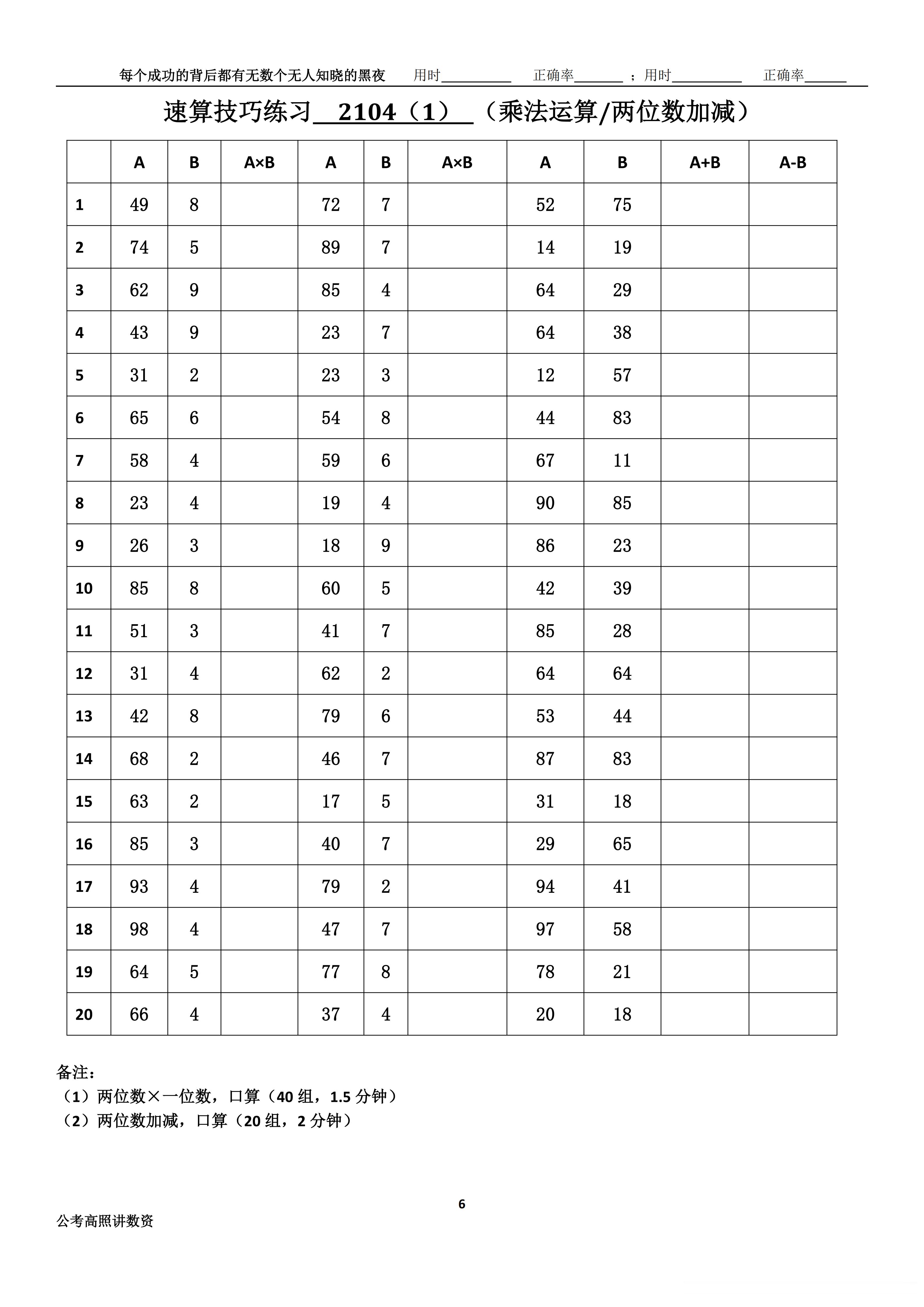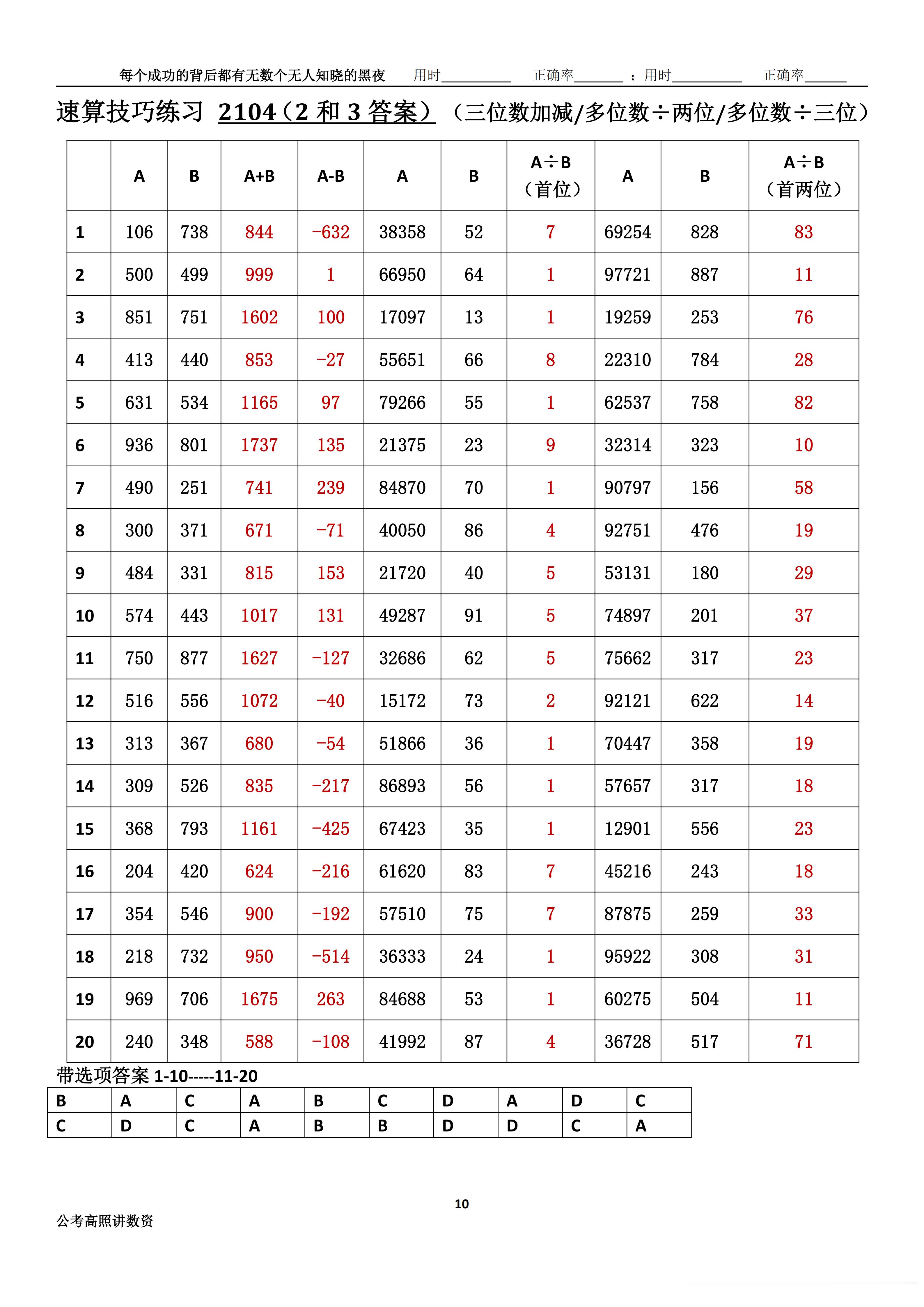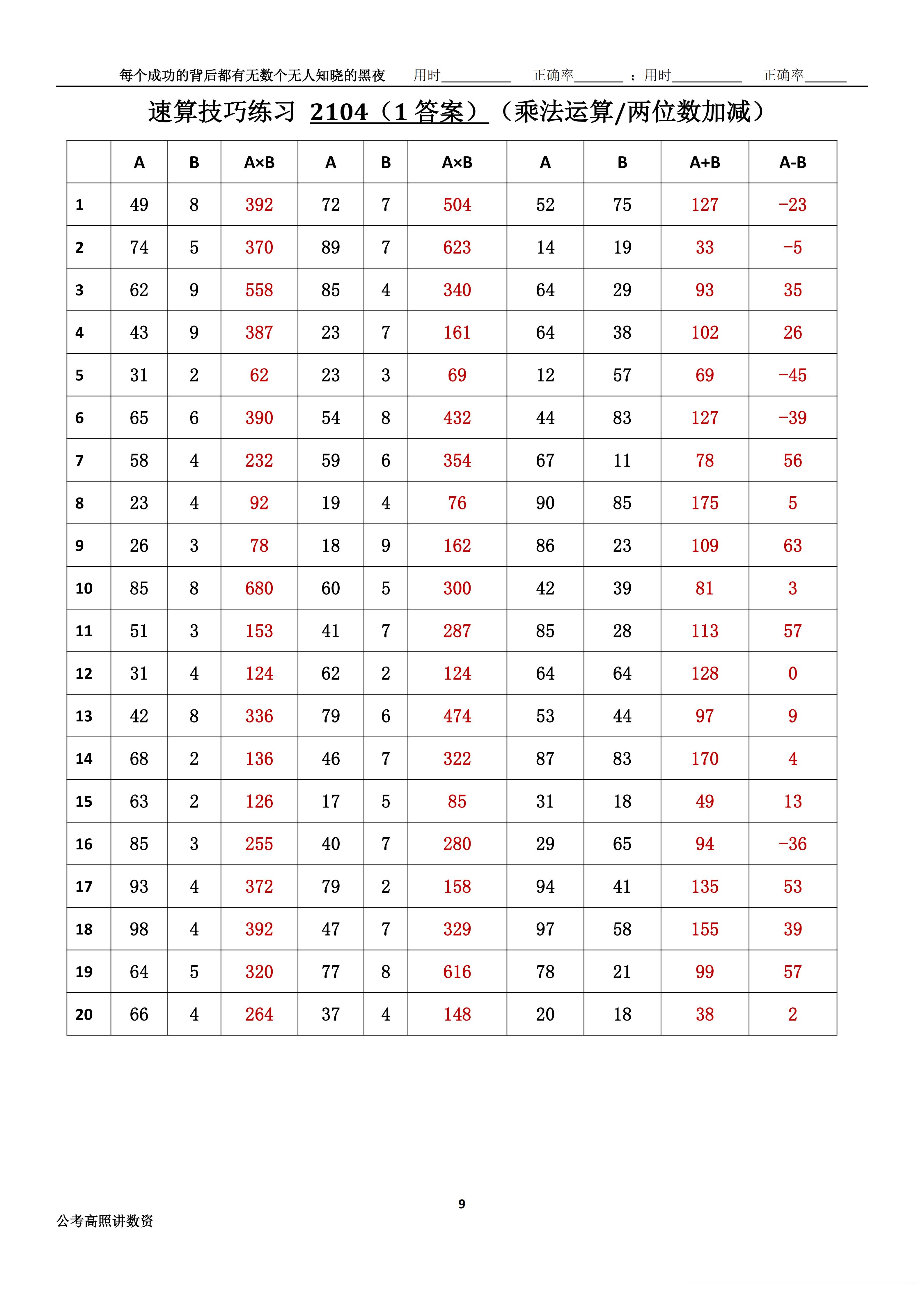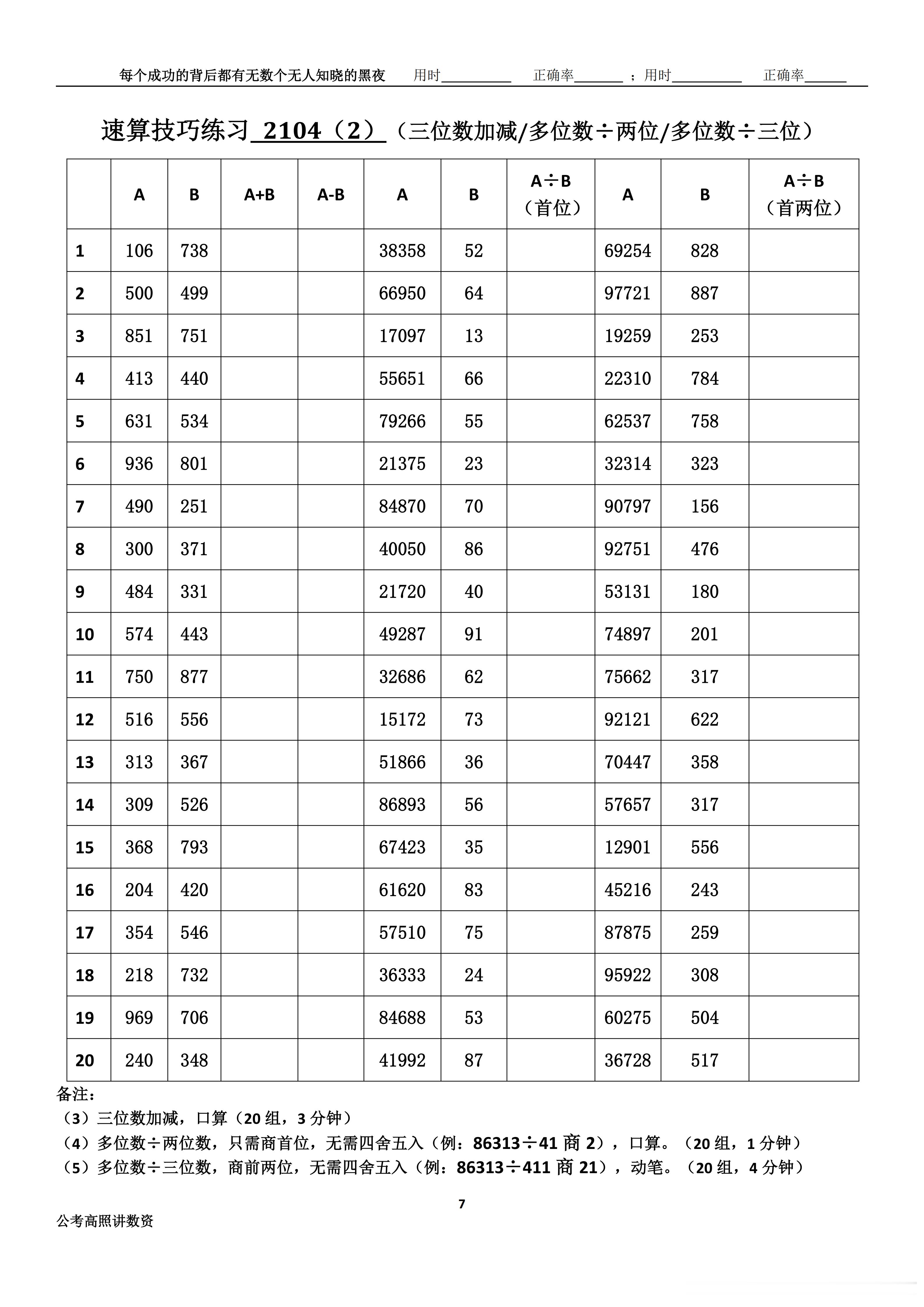 跟着高照练速算决战公考 速算练习2104