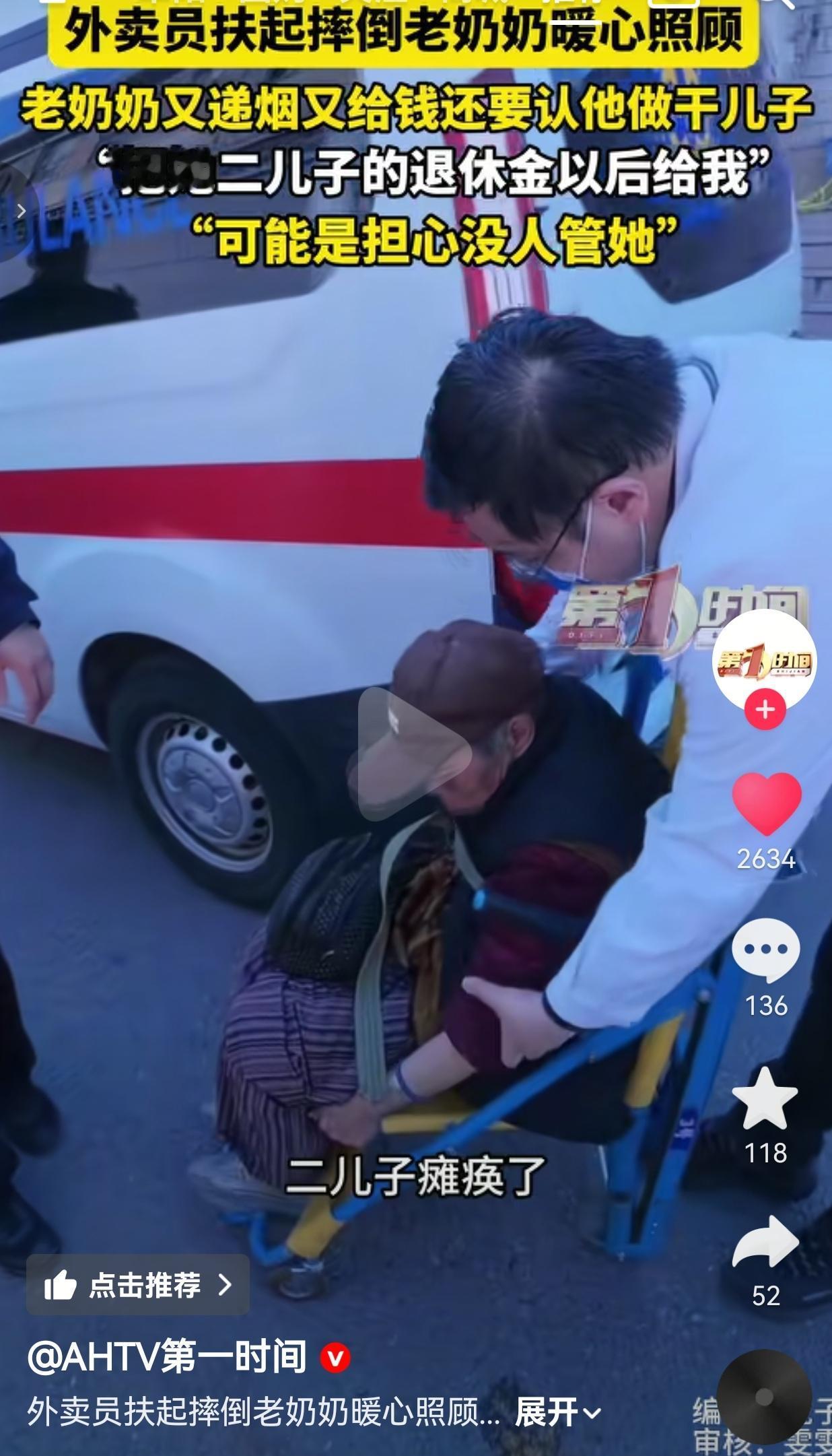 网友看到后评论说:我直接哭崩了!外卖员不怕被讹,果断扶老人,这才是骨子里的善良!老奶奶知恩图报,要认干儿子,这才是最暖的双向奔赴!