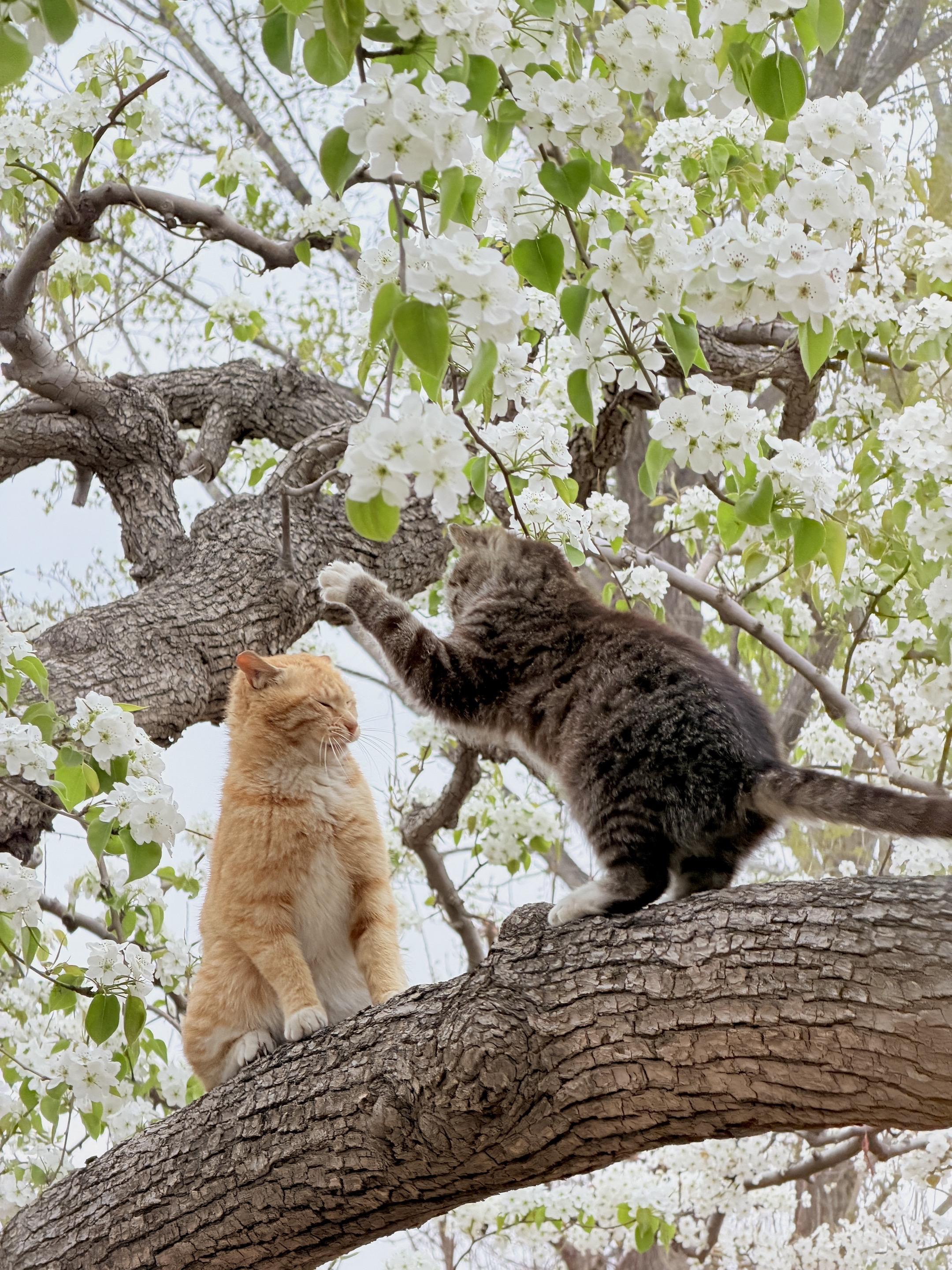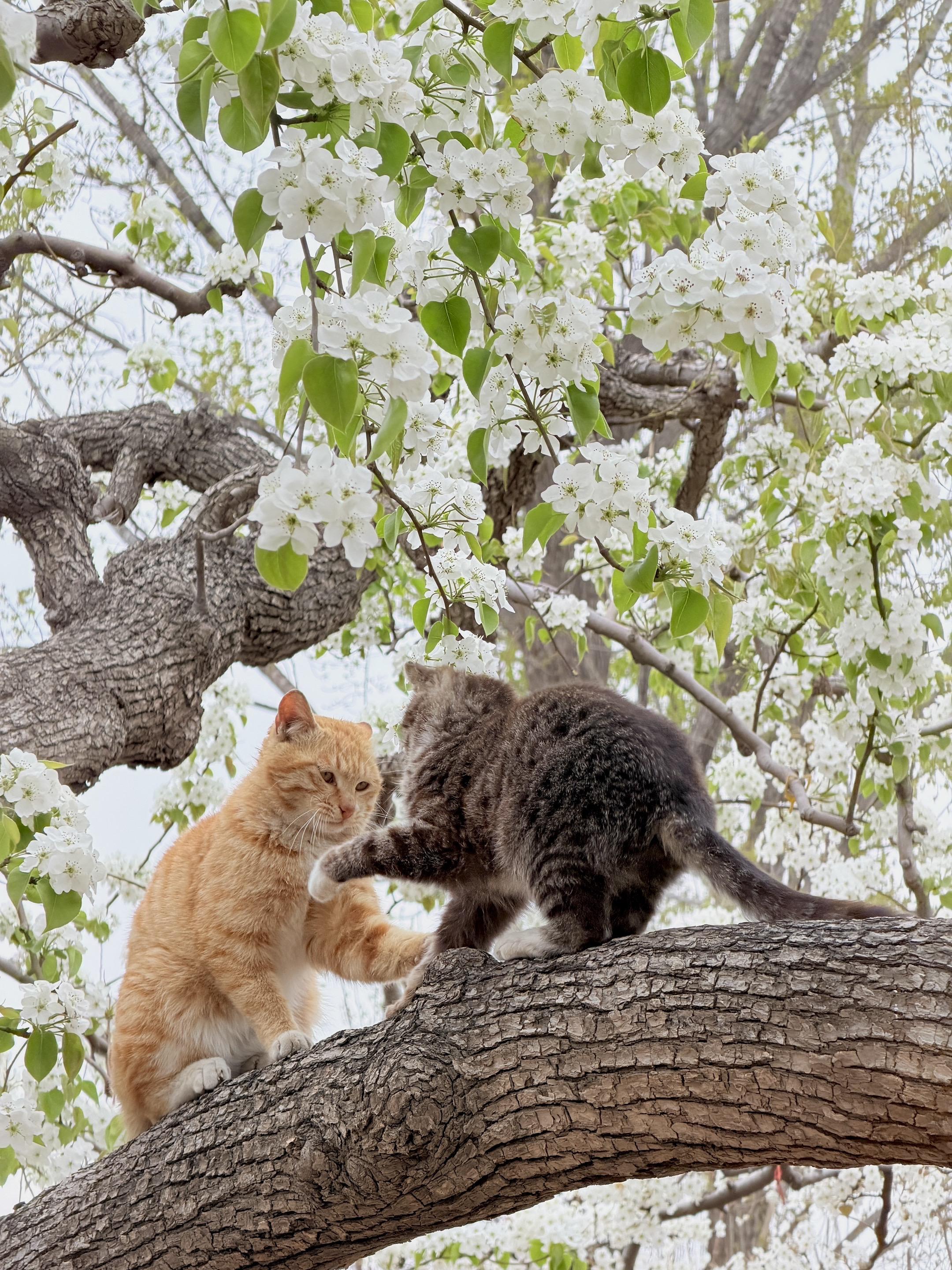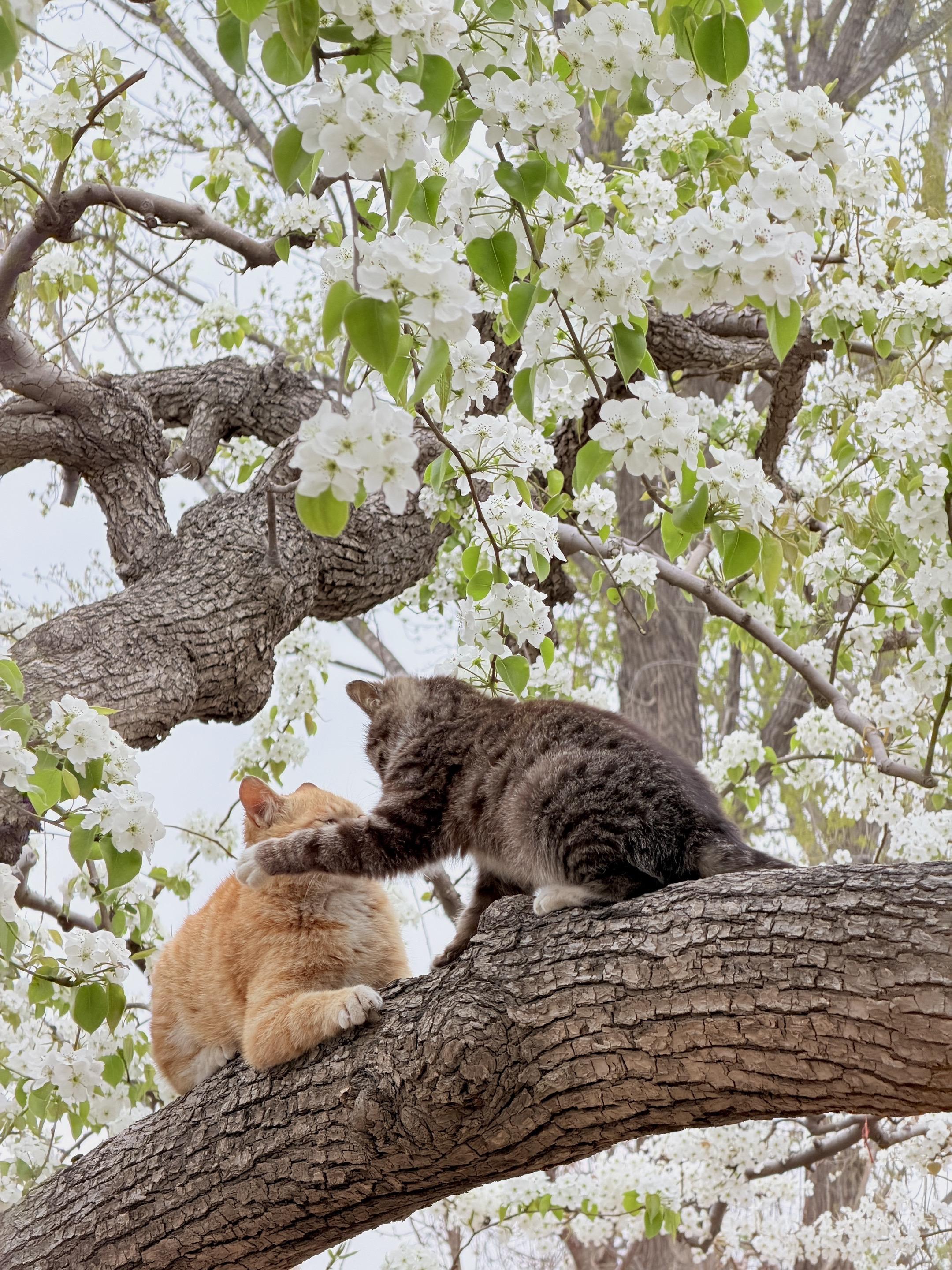 左滑|看猫猫在梨花下打起来 下午刚拍的,两小无猜好可爱