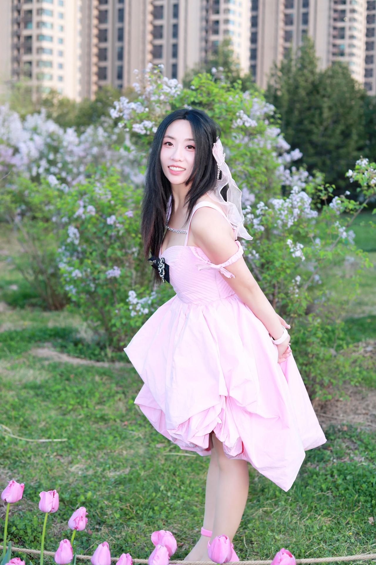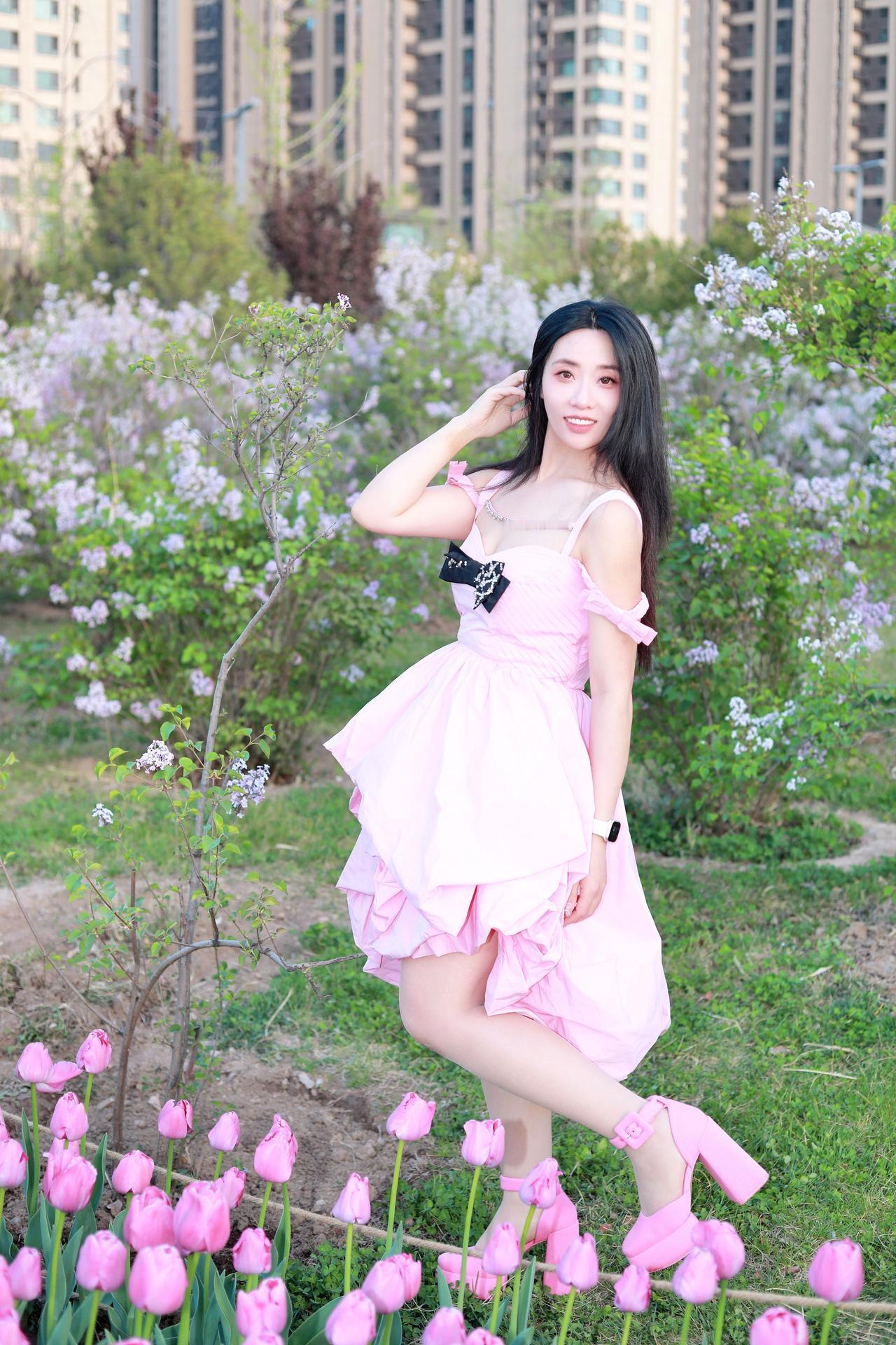 人像摄影约拍跟拍晋阳湖郁金香人像原创摄影粉色小裙子 软妹裙