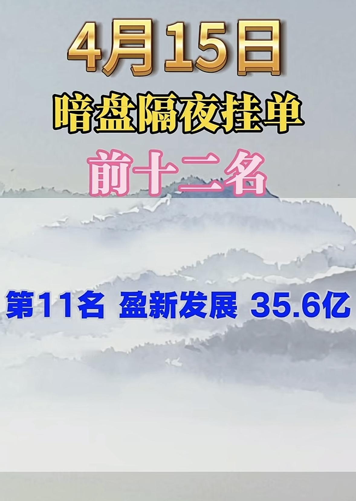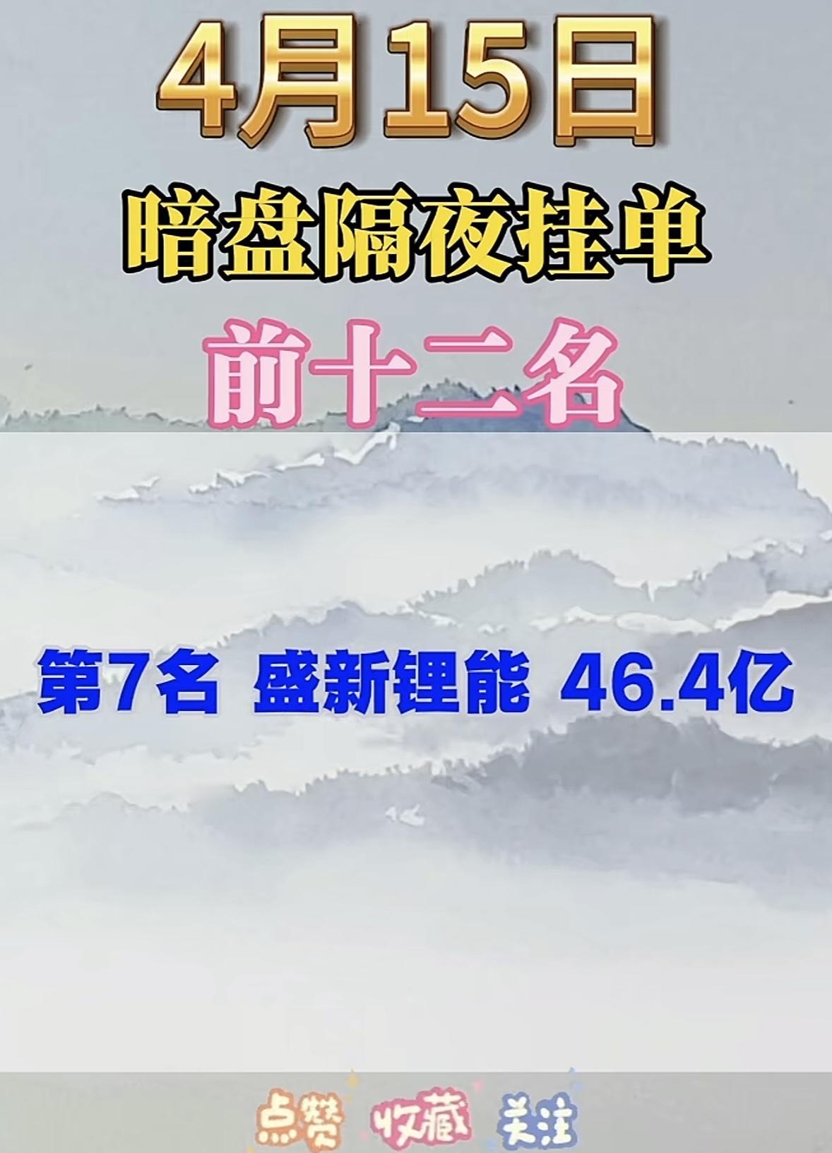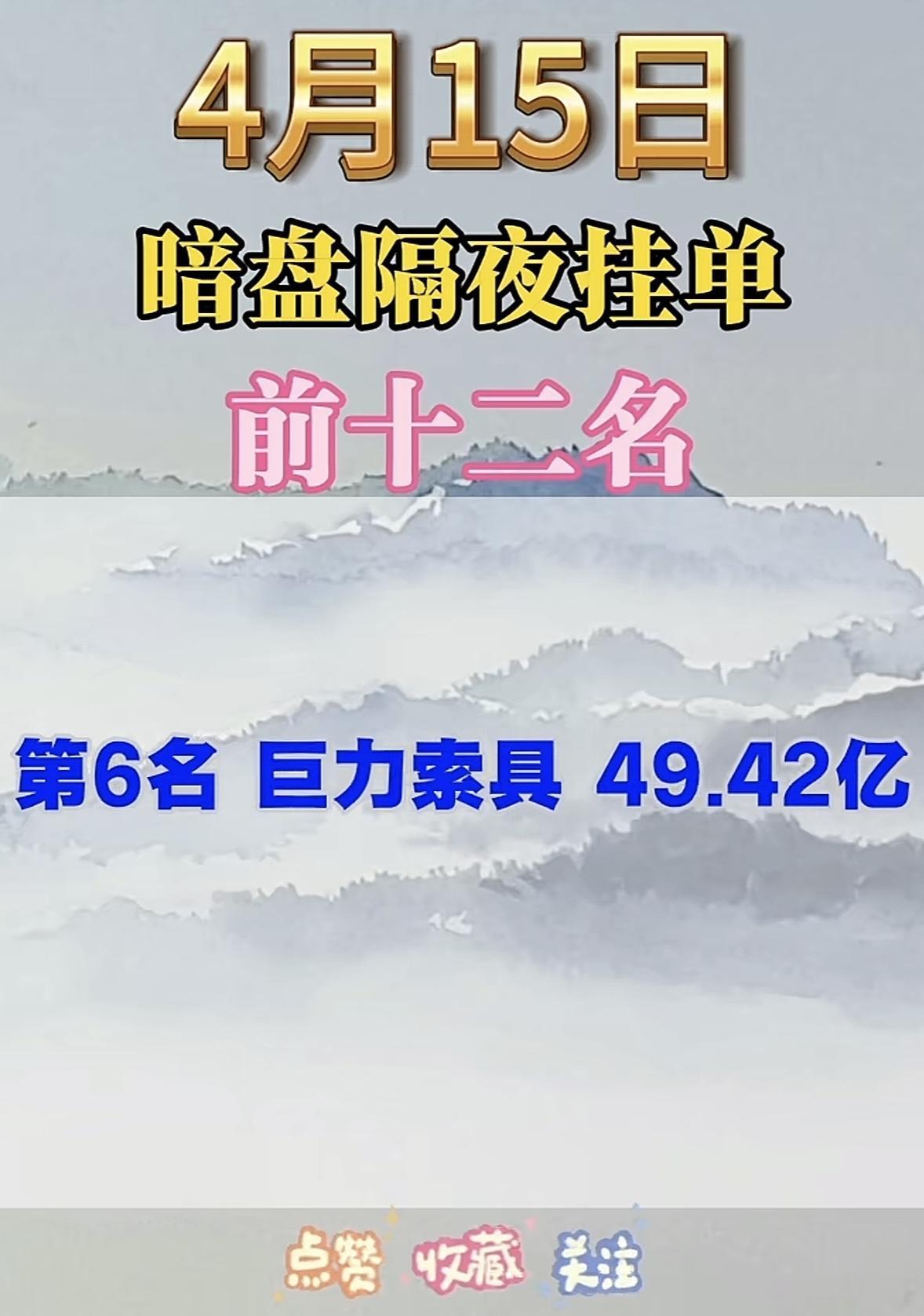 4月15日周三暗盘隔夜挂单排行榜出炉 4月15日暗盘隔夜挂单榜前十二名新鲜出炉