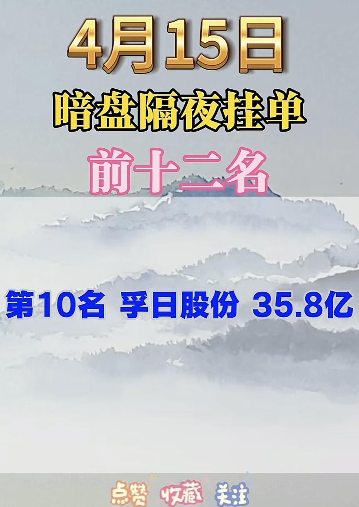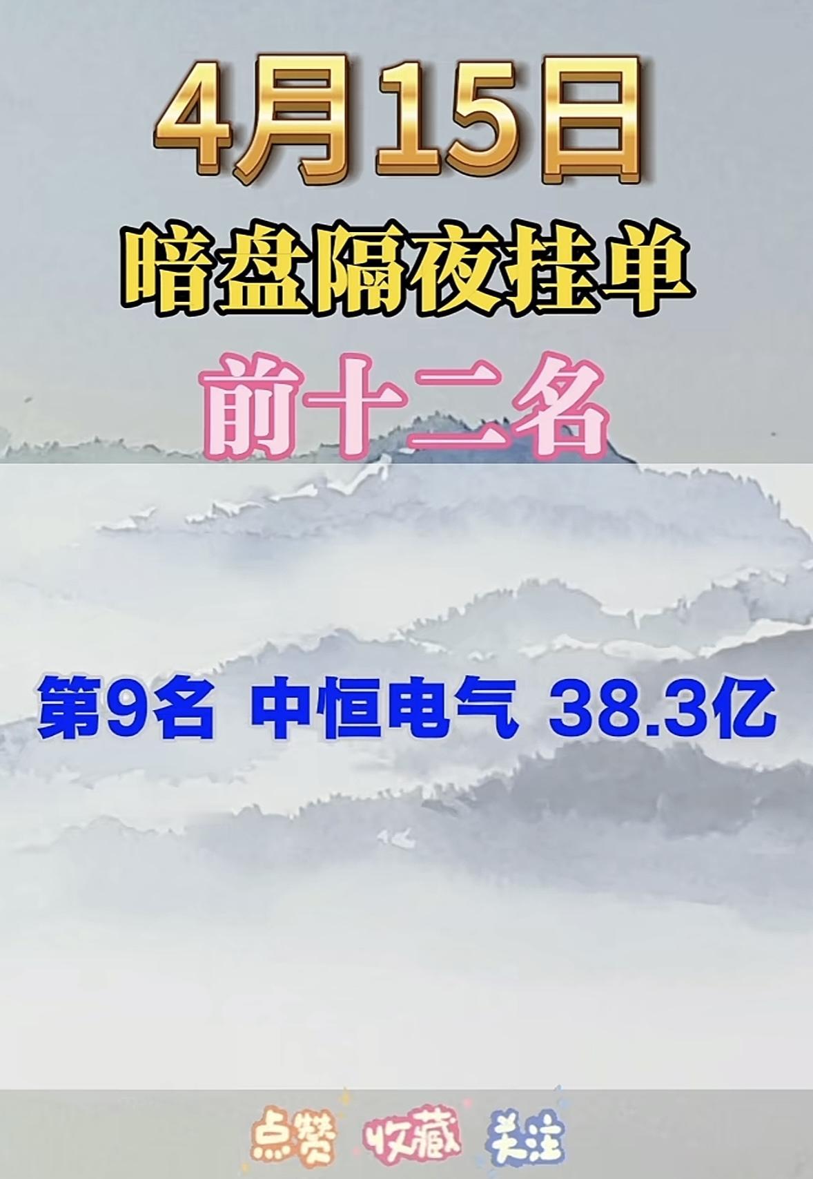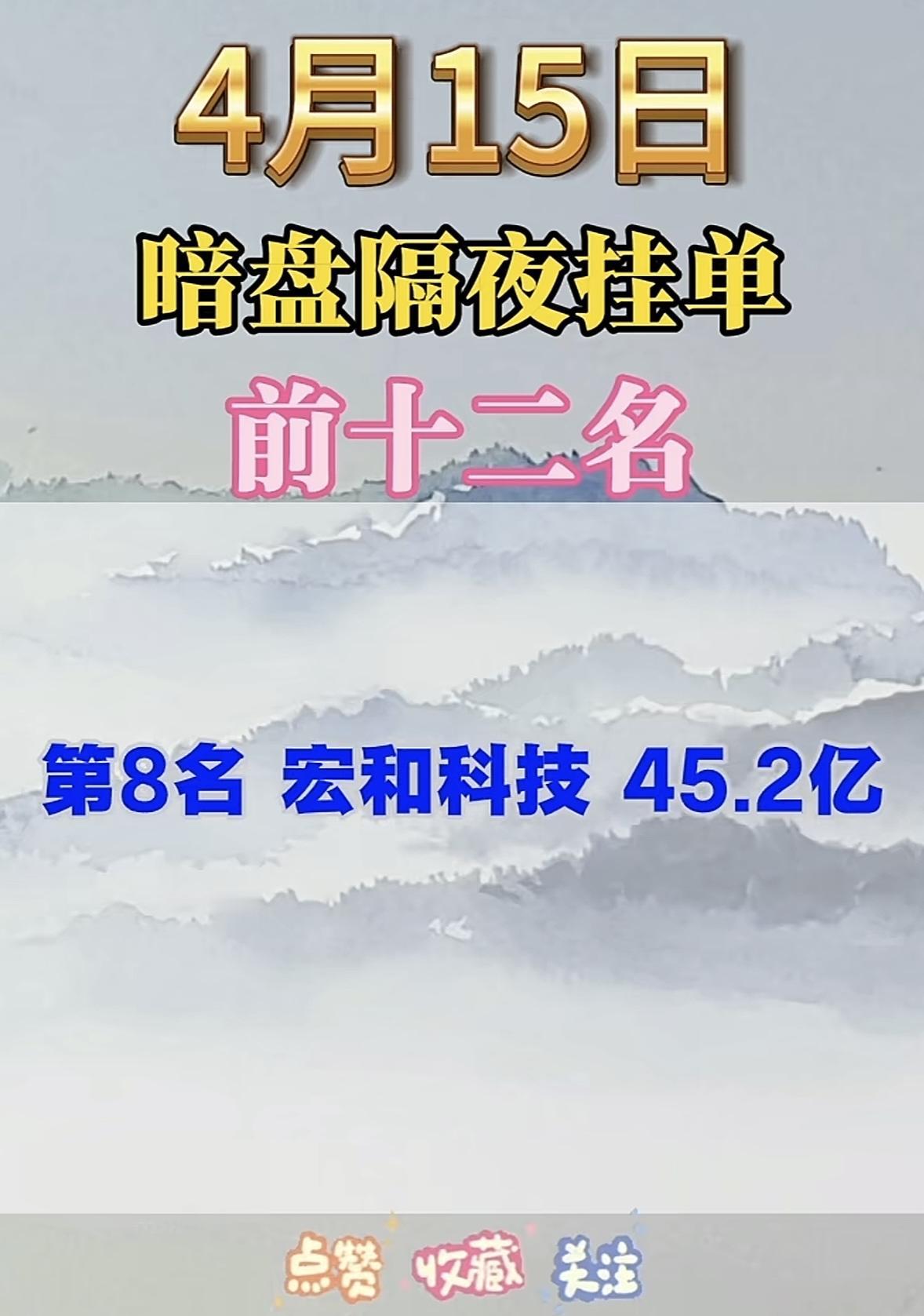 4月15日周三暗盘隔夜挂单排行榜出炉 4月15日暗盘隔夜挂单榜前十二名新鲜出炉