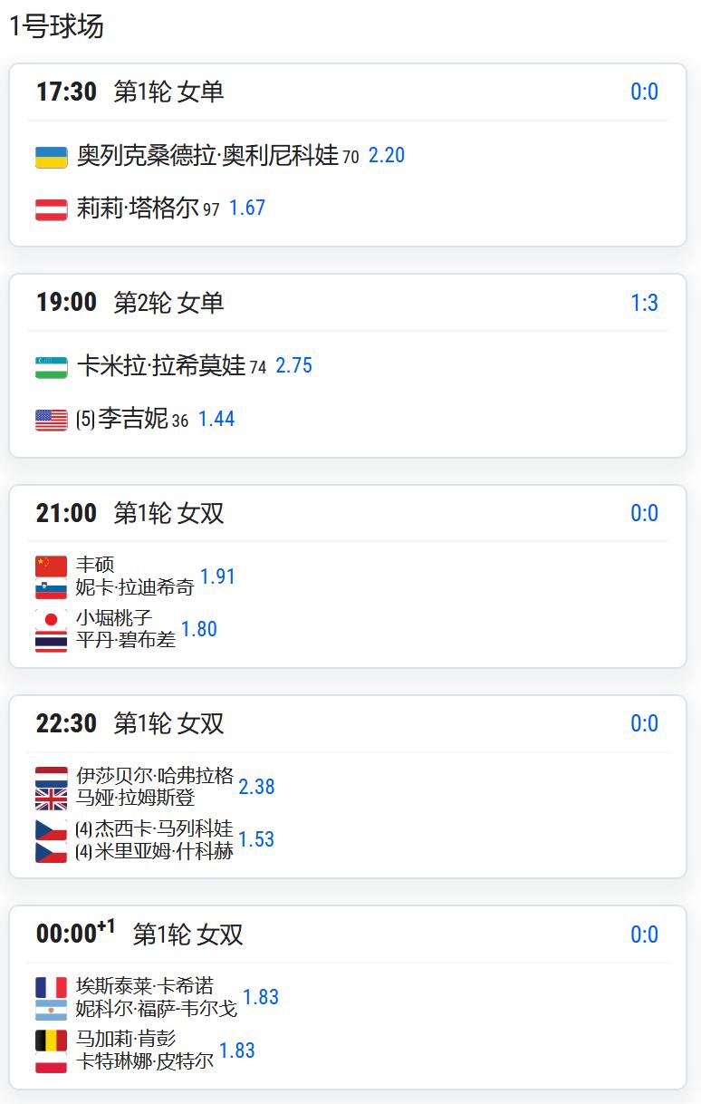 WTA250赛鲁昂站,女双第一轮,丰硕搭档斯洛文尼亚的拉迪希奇出战,将对阵小堀桃子/碧布差;