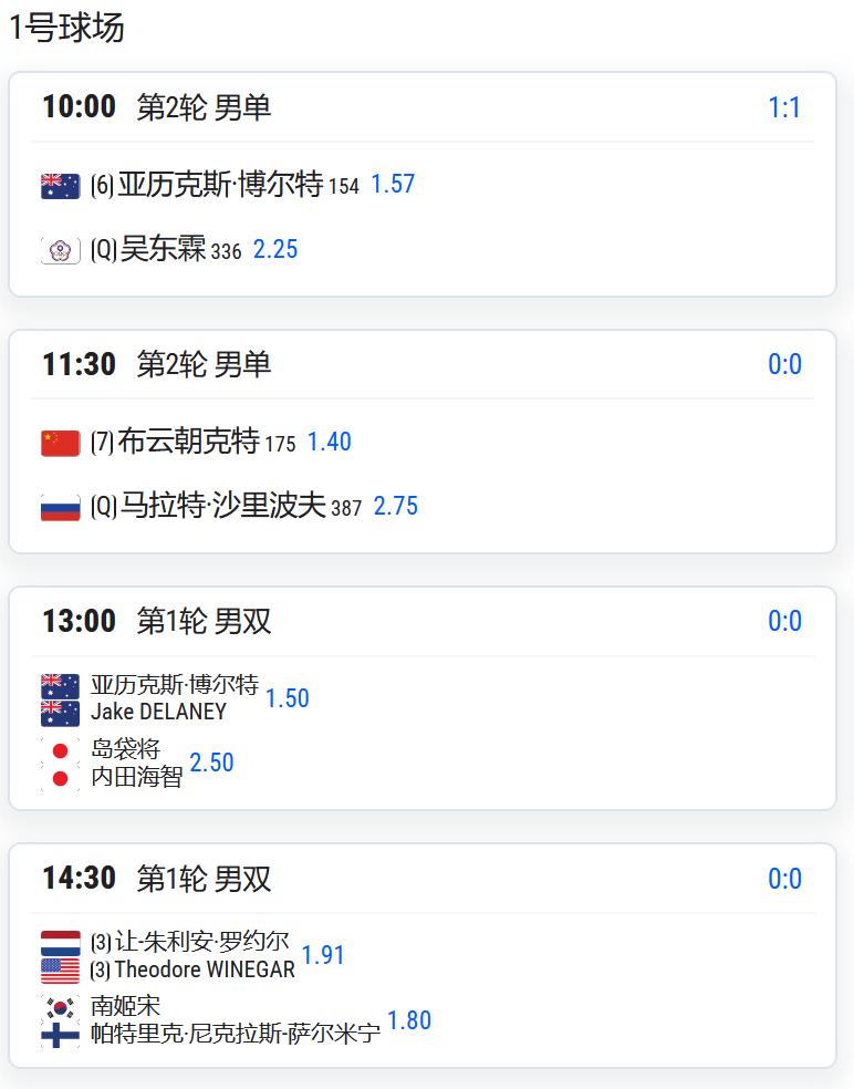 CH125釜山,男单第二轮,布云朝克特将对阵资格赛球员沙里波夫;