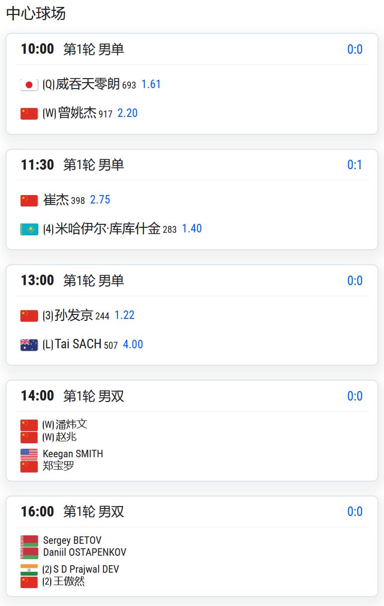 CH50武宁,男单第一轮,持外卡出战的曾姚杰将对阵威吞天零朗;