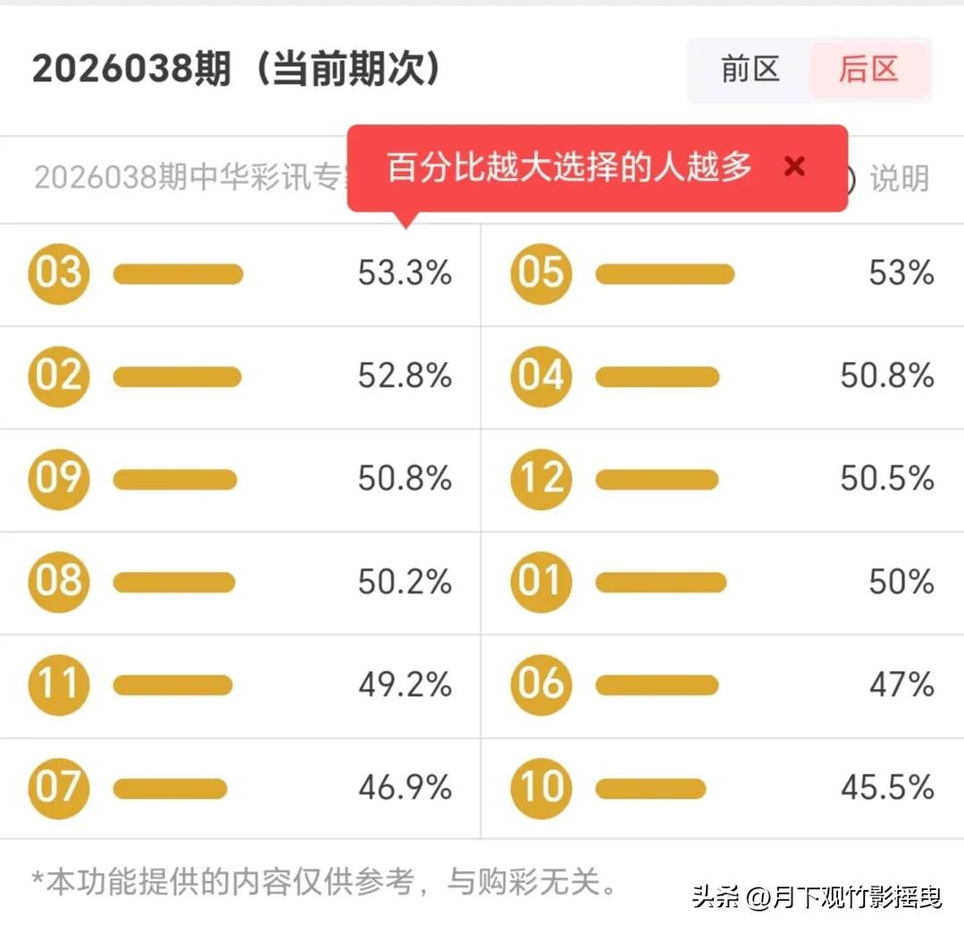 前区:专家共识度最高的是12、05、17、21,可作为前区胆码备选;次热门20、28、34等可作为拖码补充;若搏冷,可选择未上榜的低热度号码。