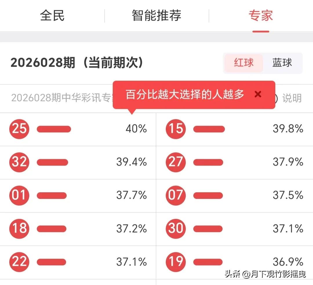 028期双色球选号热度分析 1. 专家群体:红球锚定25、32、15,蓝球锁定1