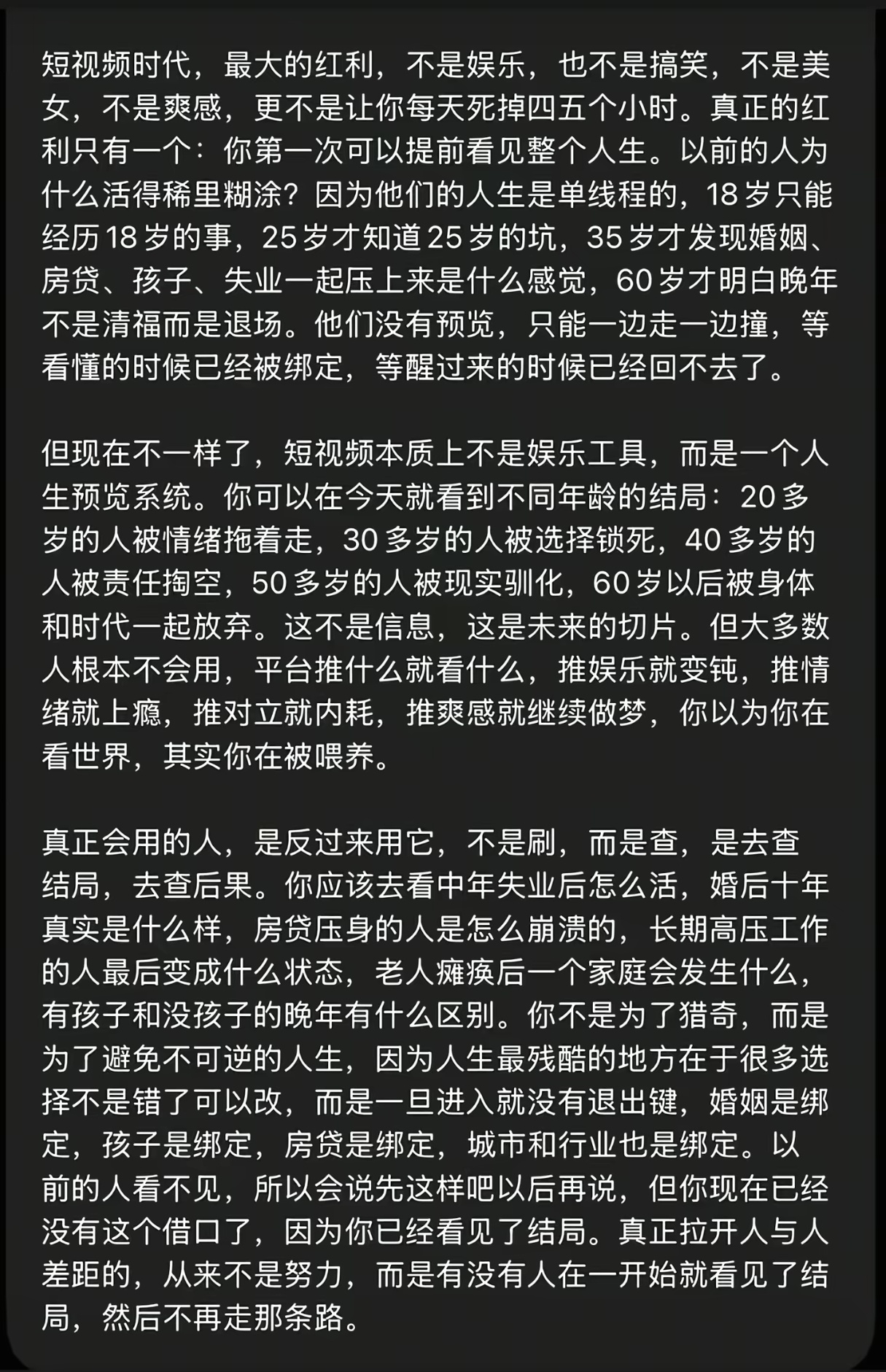 短视频时代最大的红利,是你第一次可以提前看见自己的整个人生。