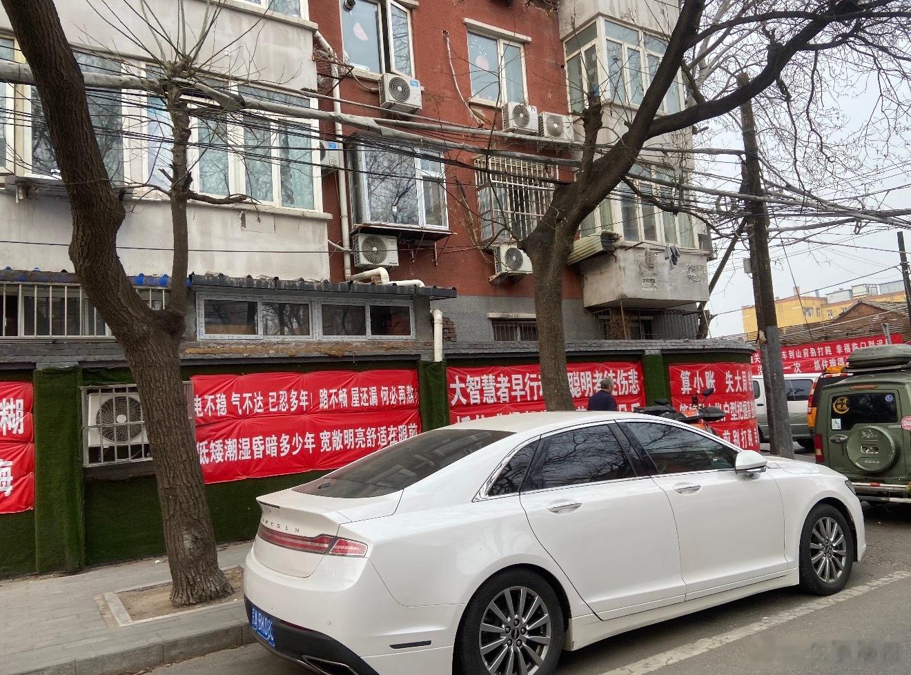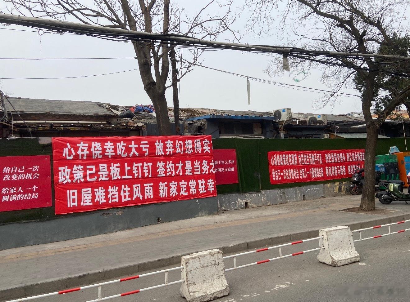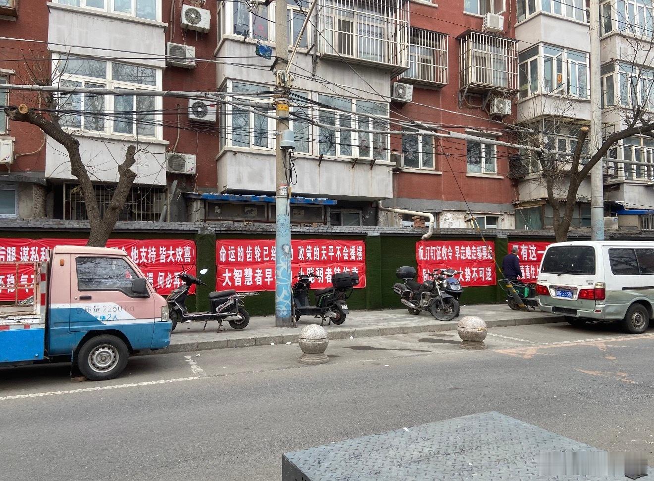 北京甜水园拆迁现场满街都是红通通的动迁标语有意思的是标语内容都不一样别说小词一套一套的哈哈😂
