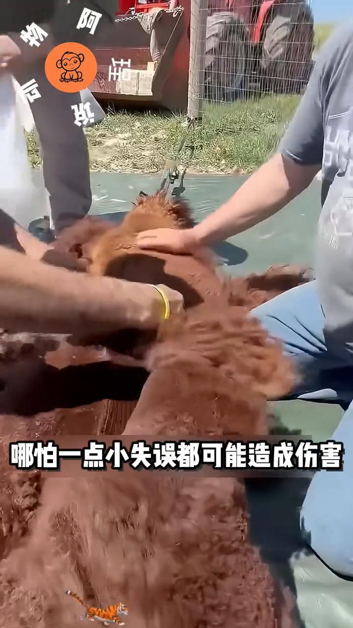 ·头部搞定后,身体的其他部分就简单多了。剪毛人有条不亲地工作,去除厚厚的羊毛层,经常是一整块剥下来,简直就像掀开一条厚毯子。看着羊毛这么顺滑地脱落,莫名有一种解压的满足感。
