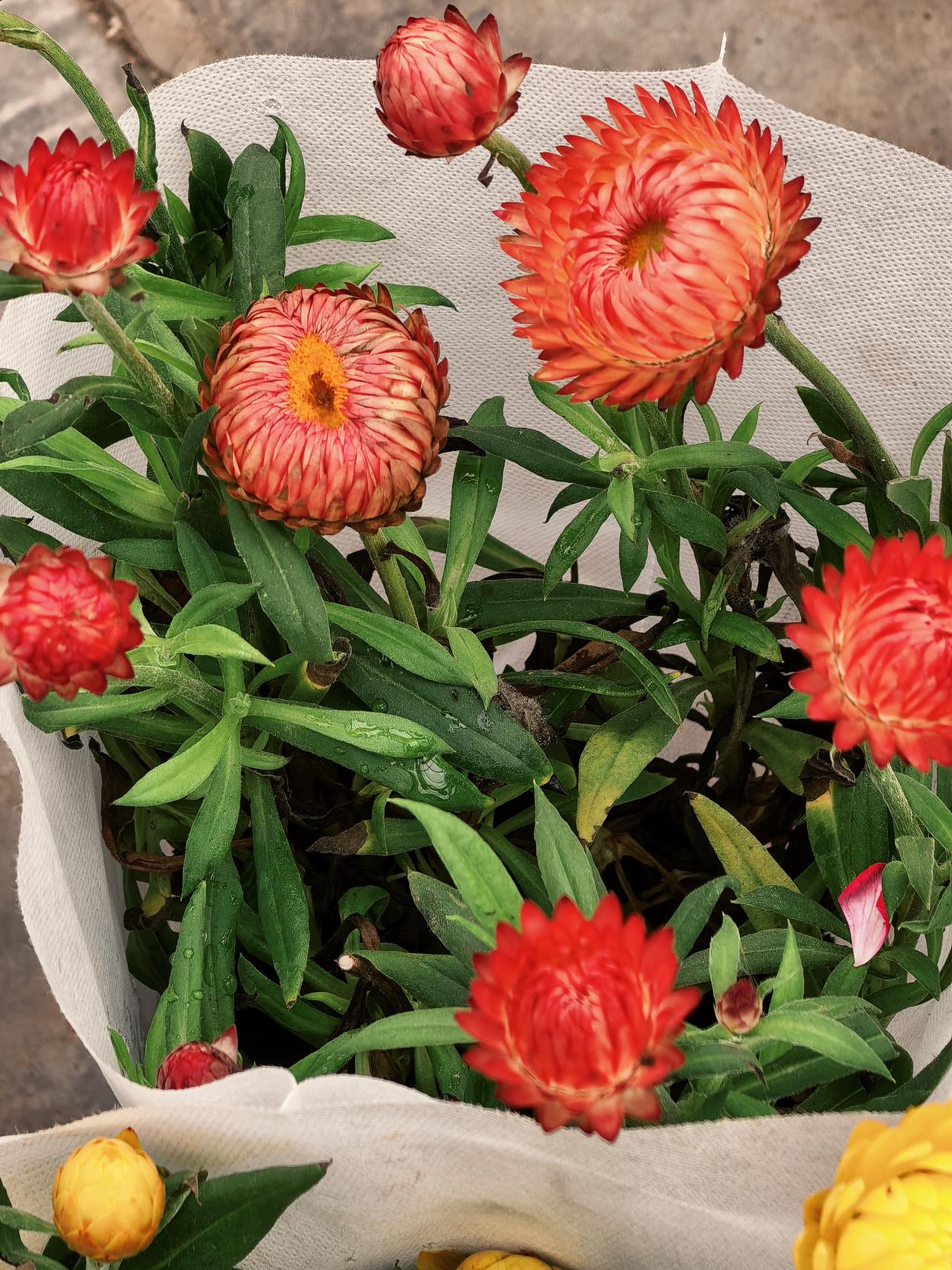春日花市中,五彩斑斓的鲜花随处可见。有色彩缤纷的雏菊,娇俏可人的兜兰,宛如小灯笼般的倒挂金钟,花朵好似蜡制的腊菊,拖着小尾巴的耧斗菜花,以及红艳似火的虞美人。