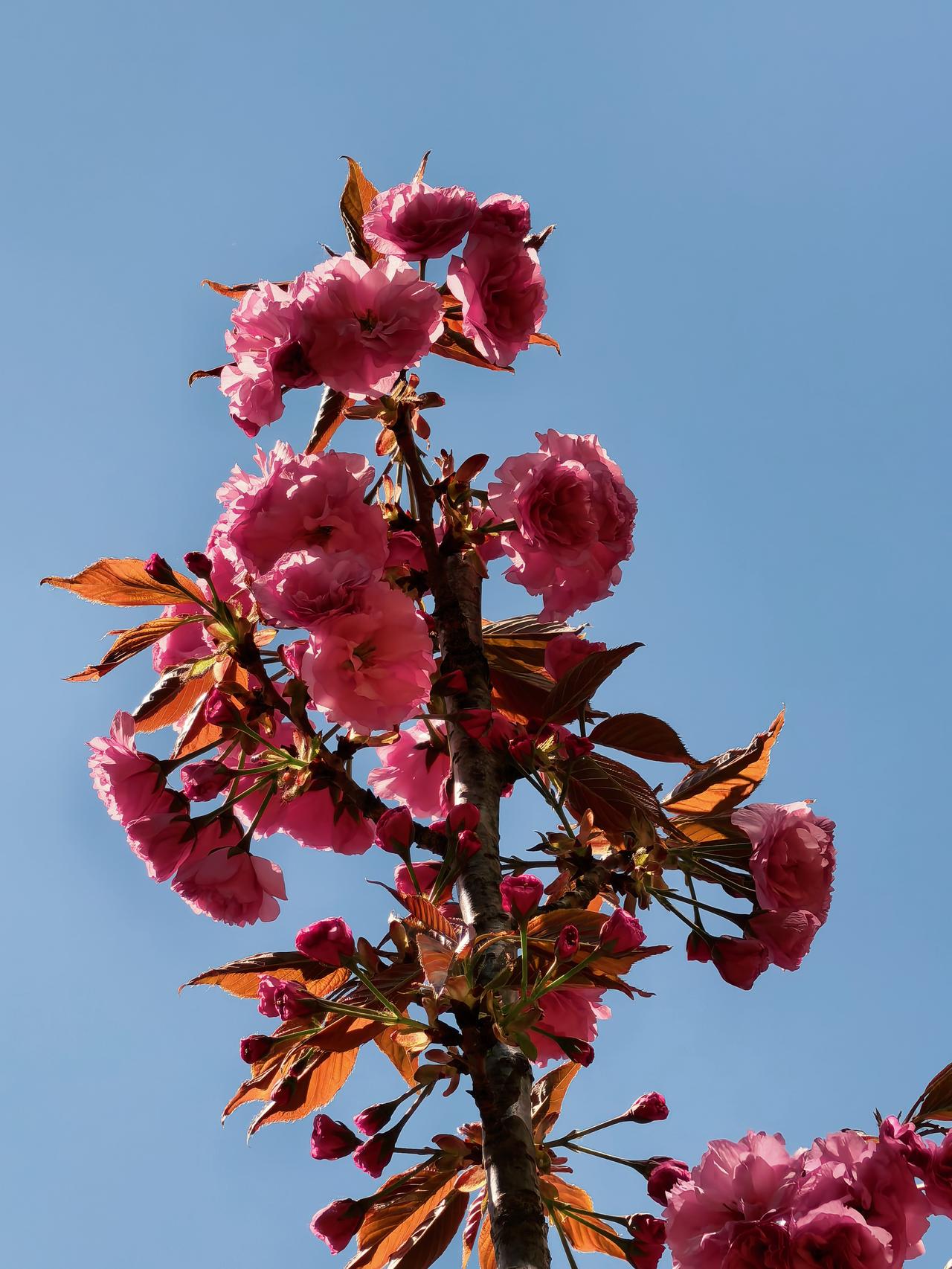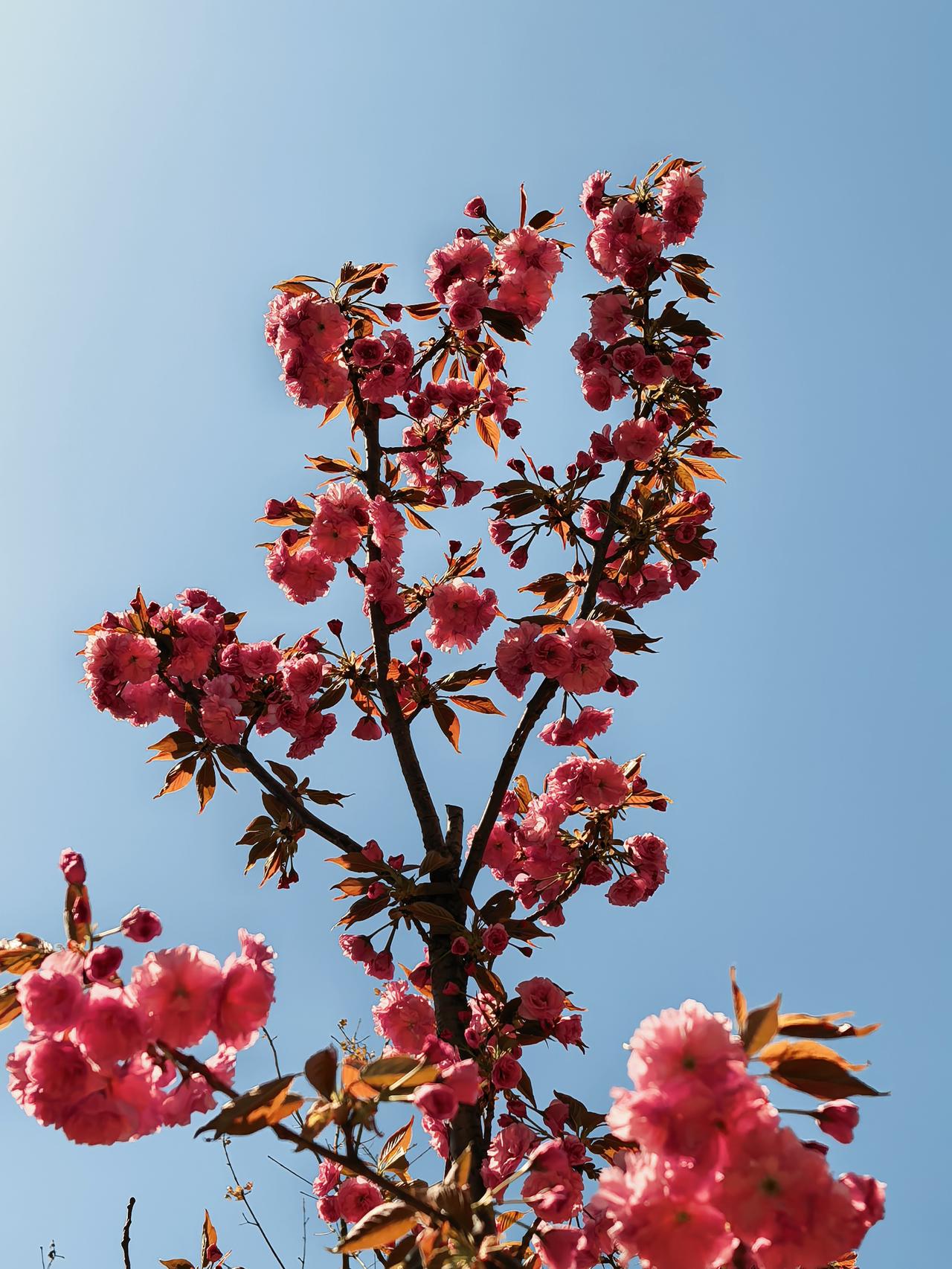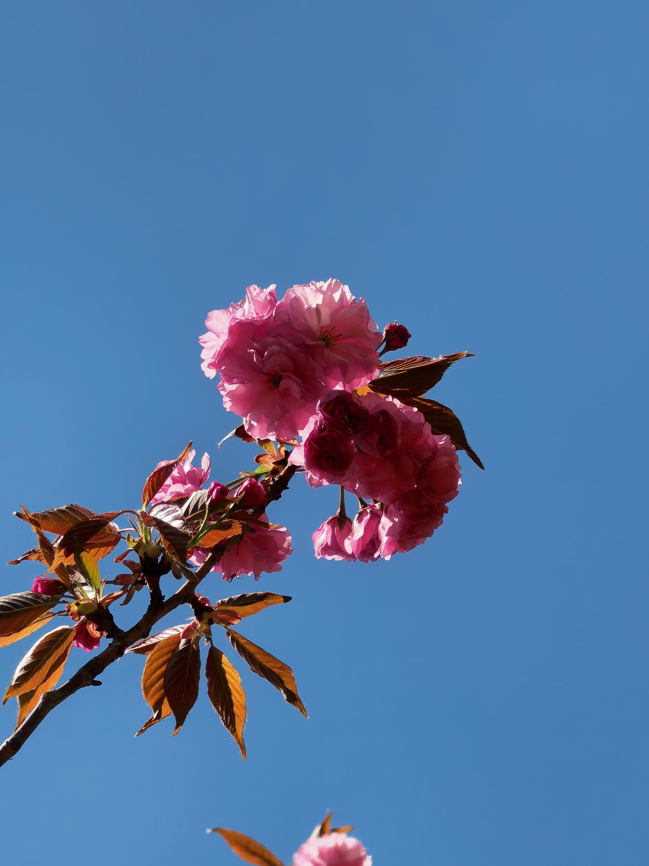 蓝天如洗,鲜花烂漫,桃红柳緑,鸟语花香! 芳菲四月,晚樱绽放,粉红浪漫,随风摇