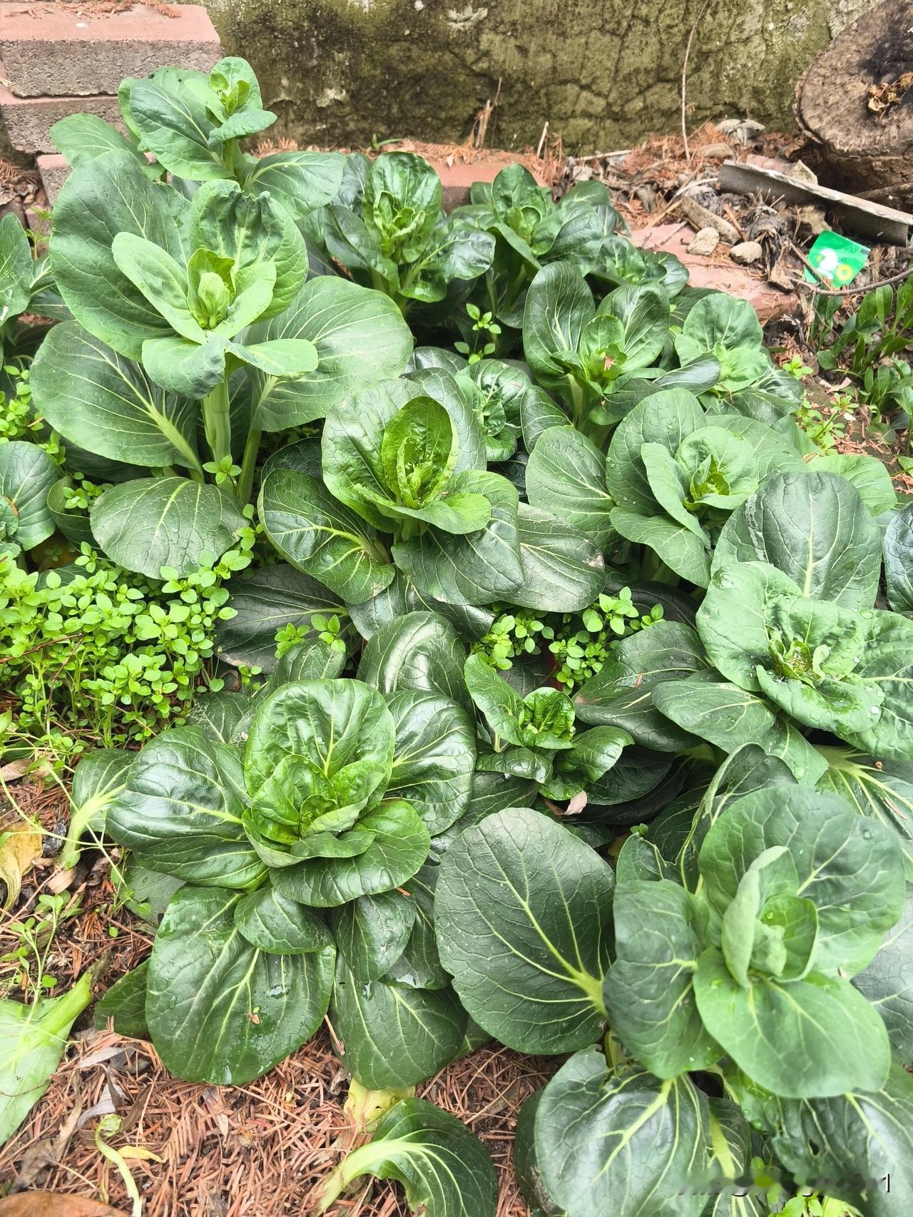 养儿育女,负重前行! 年前于小区废弃树池移栽的上海青白菜,长势十分喜人。