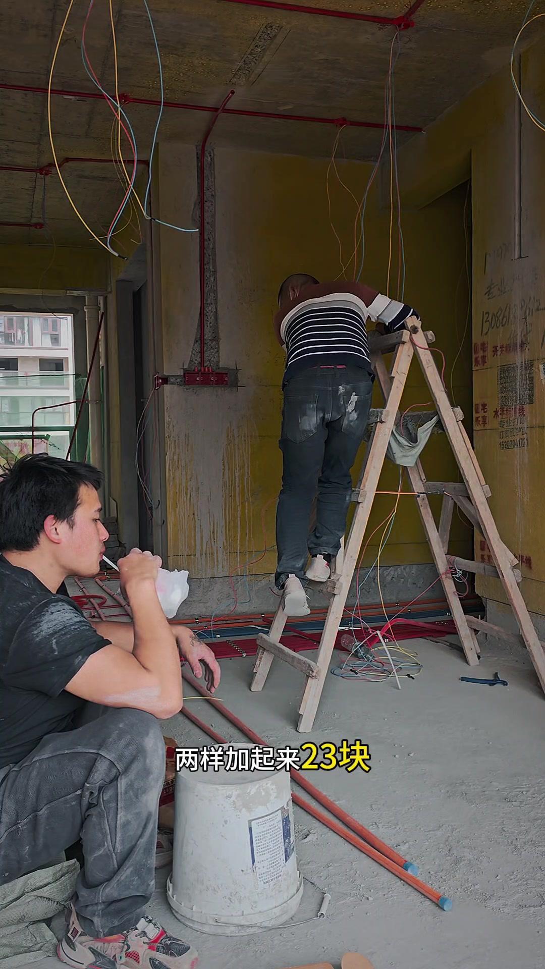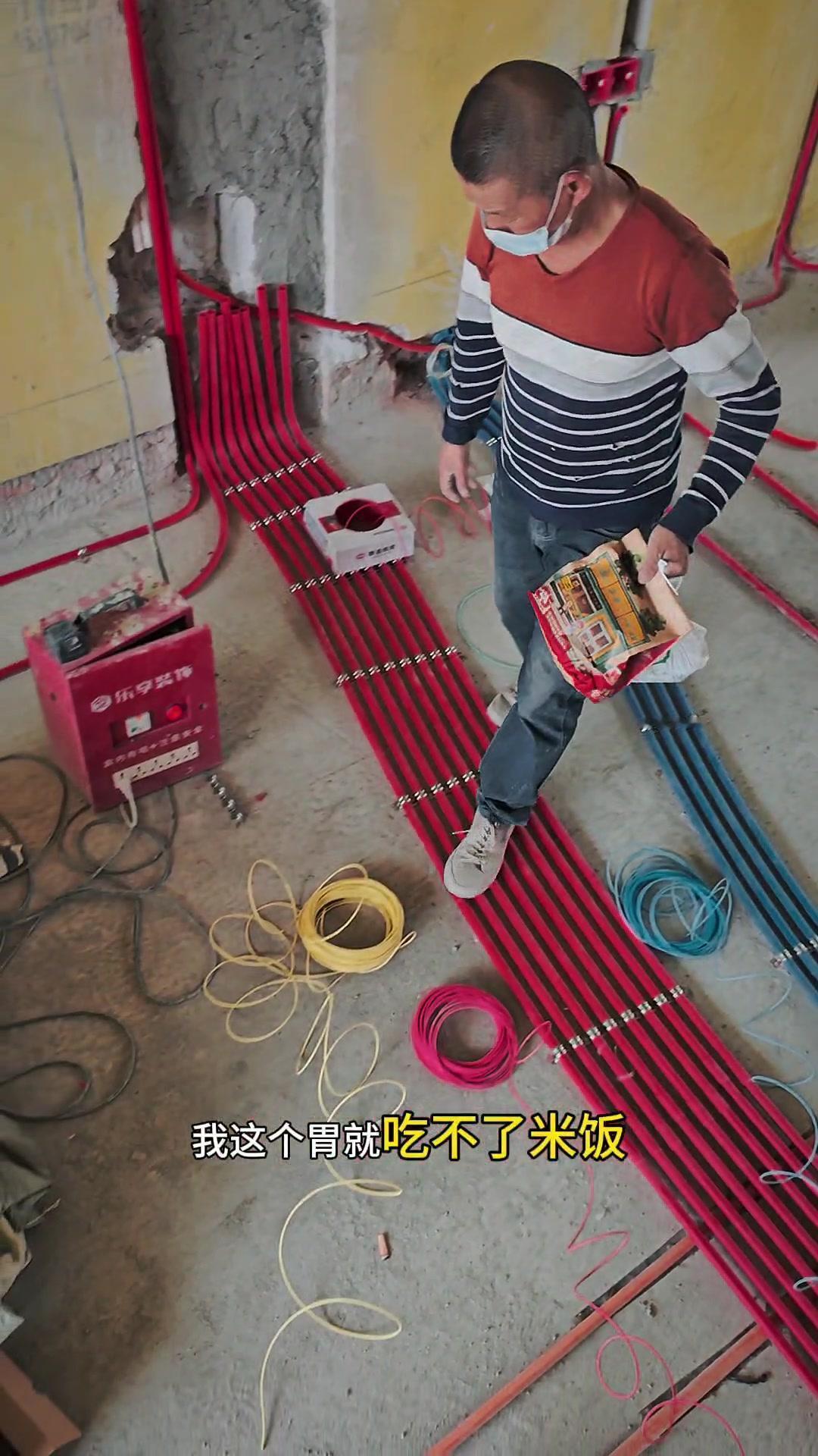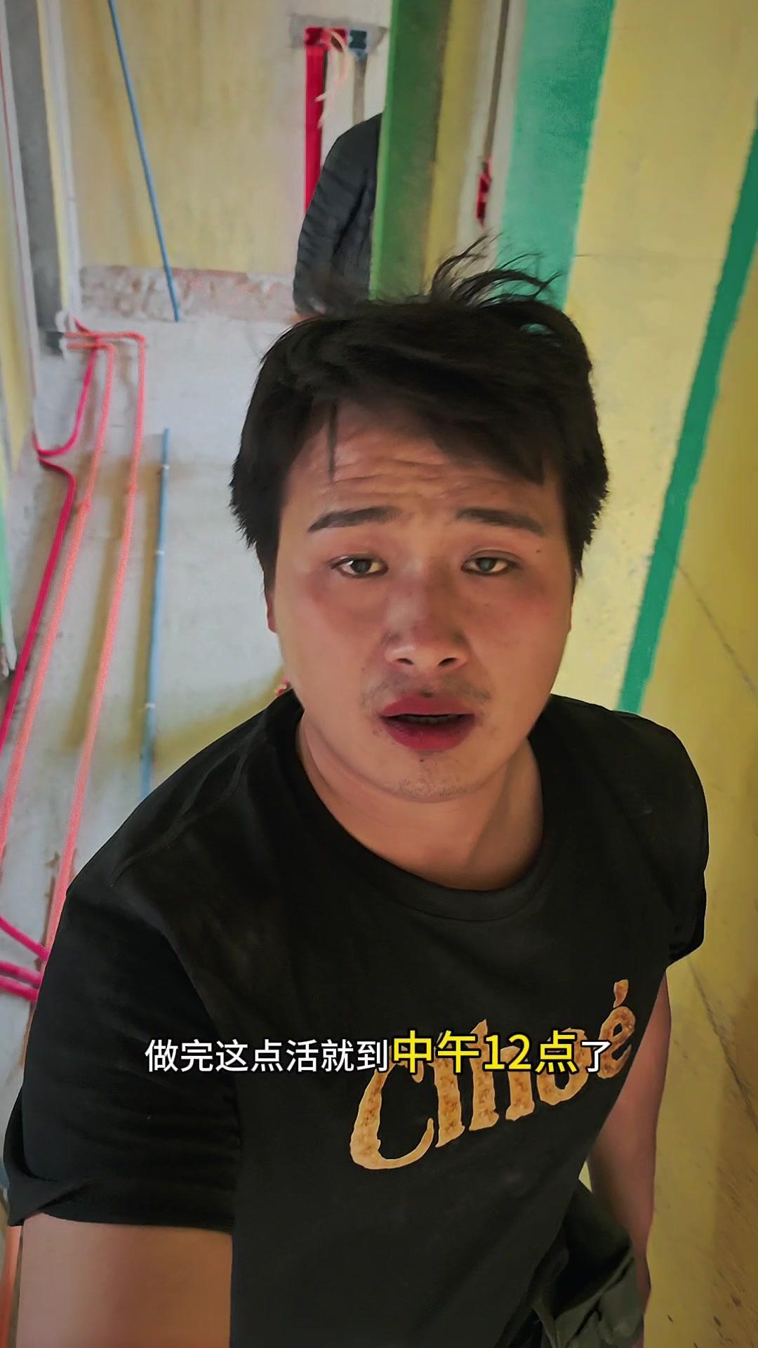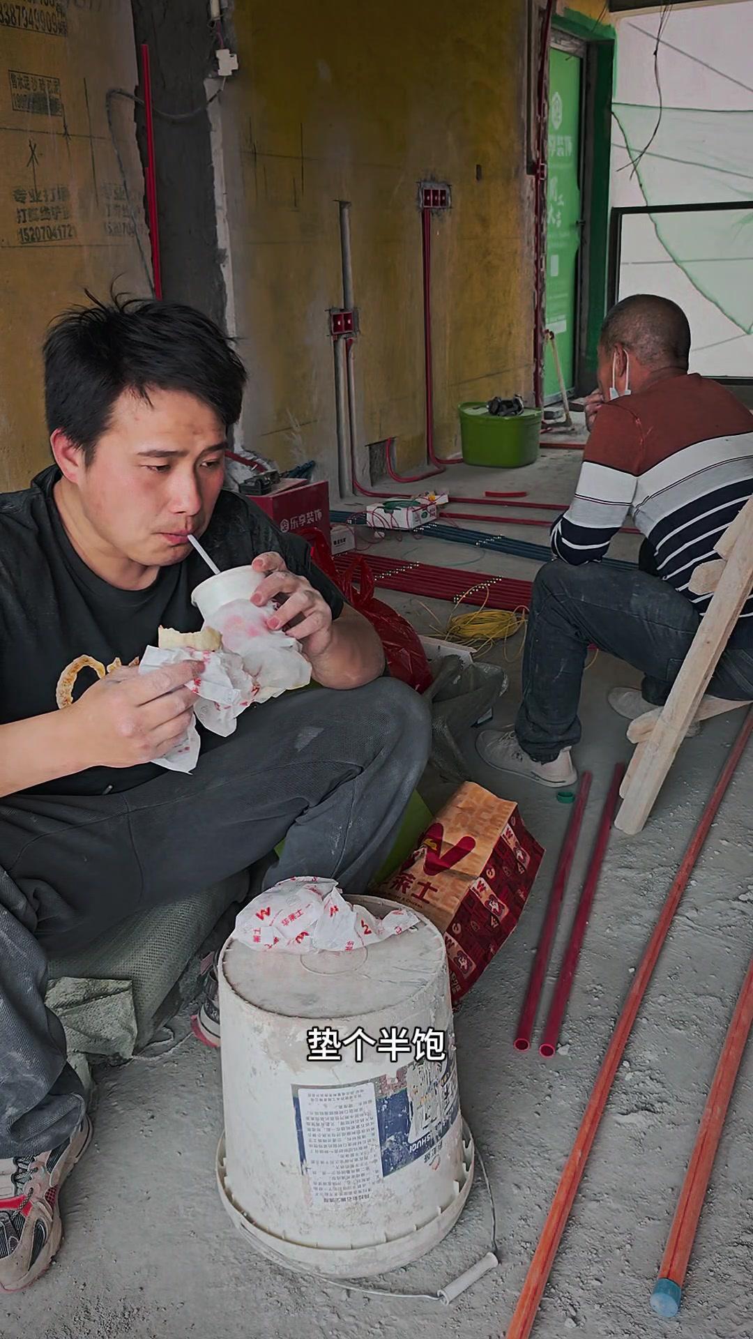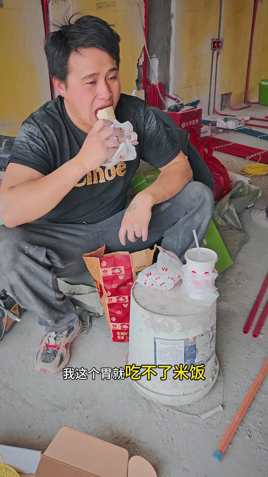 中午我处理了午饭,给媳妇买了泡粉加猪肺,自己则吃汉堡和大肉卷。下午继续干活,这套房子做无主灯线路,从1点干到4点,晚上还要处理水管、电线上的事。现在没老爷子帮忙,我身体好像没以前好,干活时脾气上来,老爷子也会急,吵吵闹闹又和好,希望有办法缓和关系。