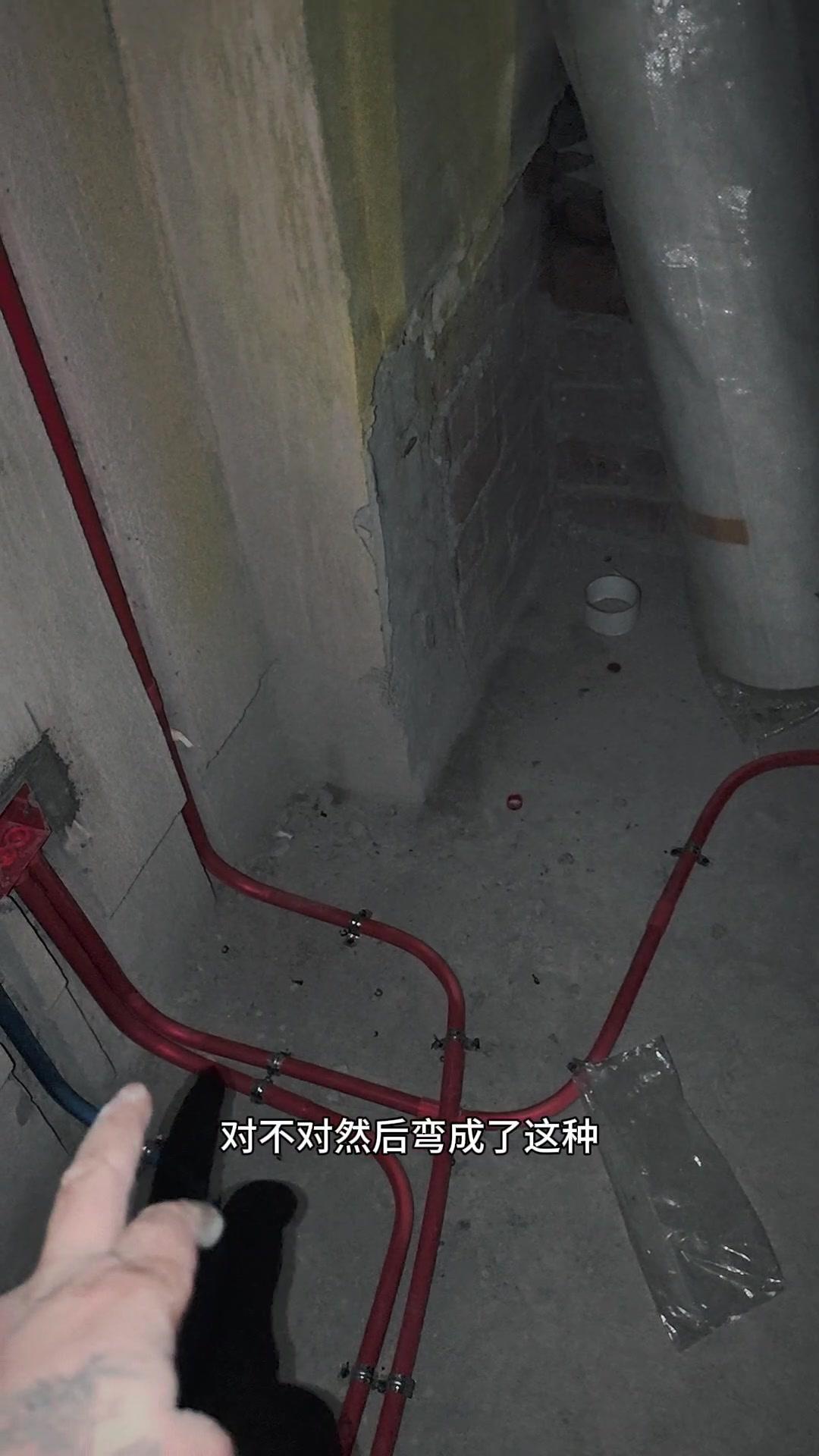 2️⃣返工情况:晚上去看工地,发现管子全是问题,接头、斜管到处都是,这么短距离弯了好几个90度,明明可以大弯直接过,非要小弯叠着来,现在整改又要花钱,师傅技术真的堪忧!