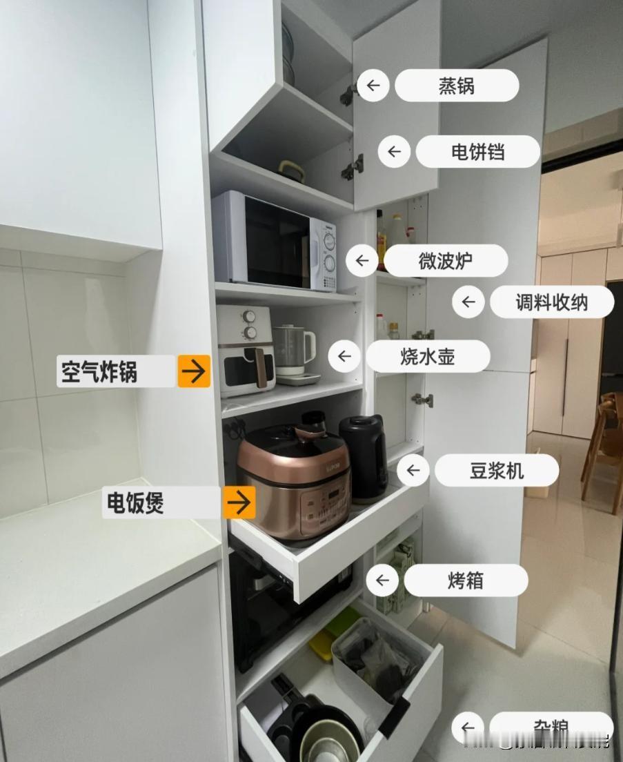 现在年轻人不做吊柜,可不是放弃收纳,而是换了更高效的方式:地柜做抽屉,利用率提升到90%以上;墙面装隔板、挂杆,常用调料伸手就拿;再配个小推车,灵活又能装。