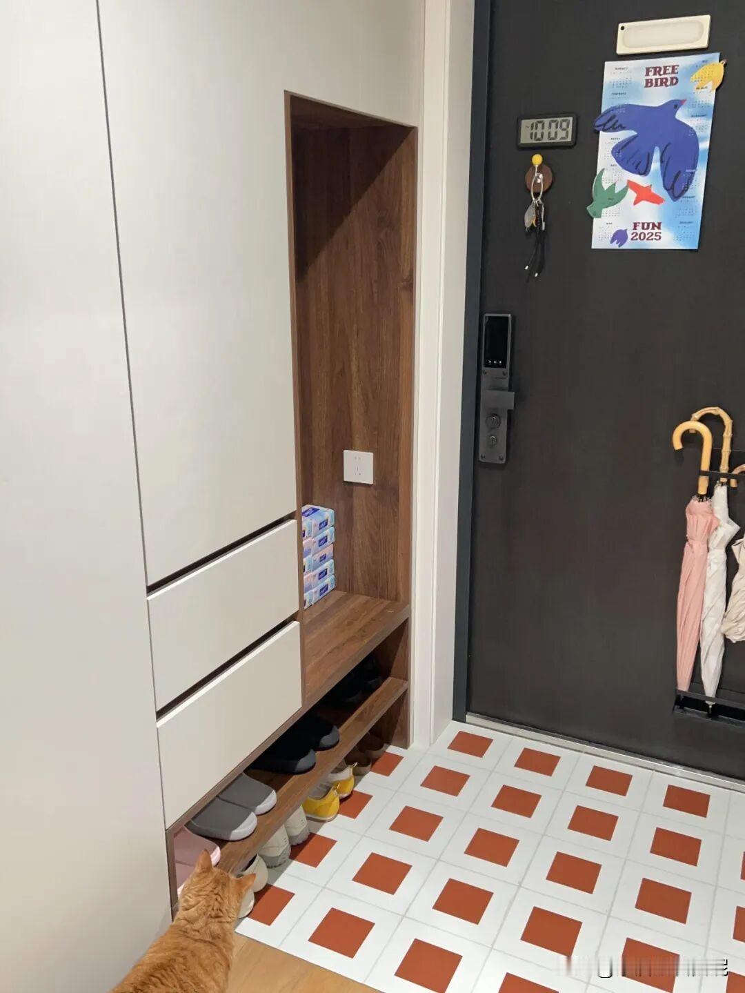 玄关柜千万别只做底部放鞋。一定要做到顶,上面放过季鞋子、囤货纸巾;中间留空放钥匙、包包;底部悬空15厘米,常穿鞋子踢进去。再加一排挂衣钩,进门大衣、围巾随手挂。一个合格的玄关柜,能挡住家里80%的杂乱。🚪