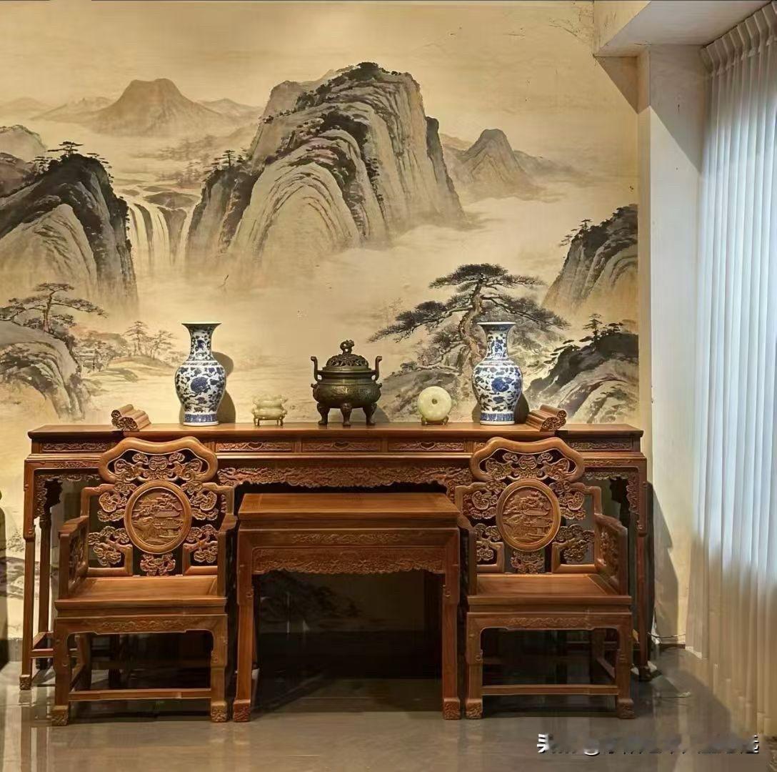 中堂立乾坤,山水藏气象, 一席木作镇厅堂 缅甸花梨•中堂六件套