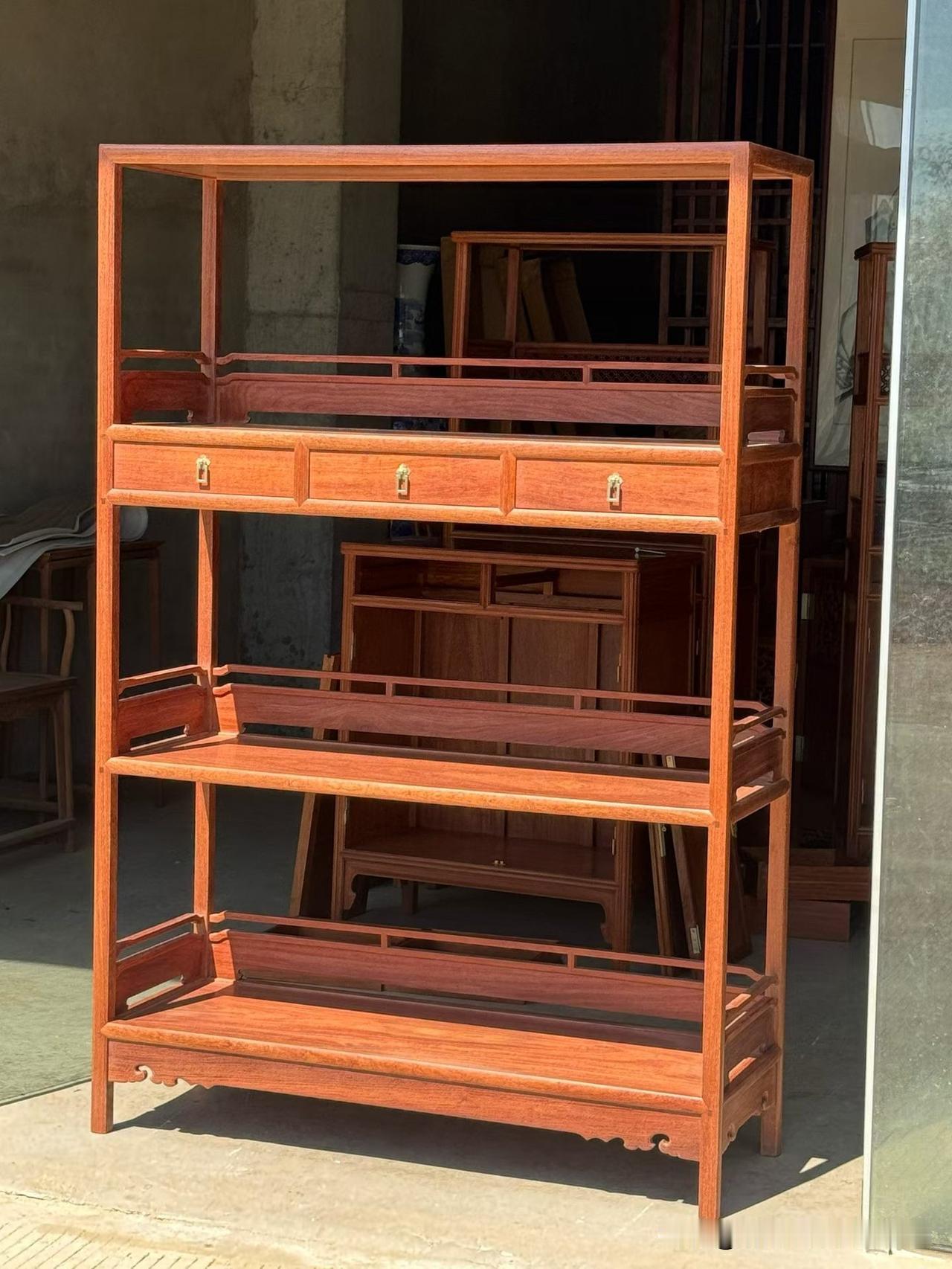 缅甸花梨•嘉木堂收藏款三屉层架/书架 尺寸 :124x45✖️186 既可安