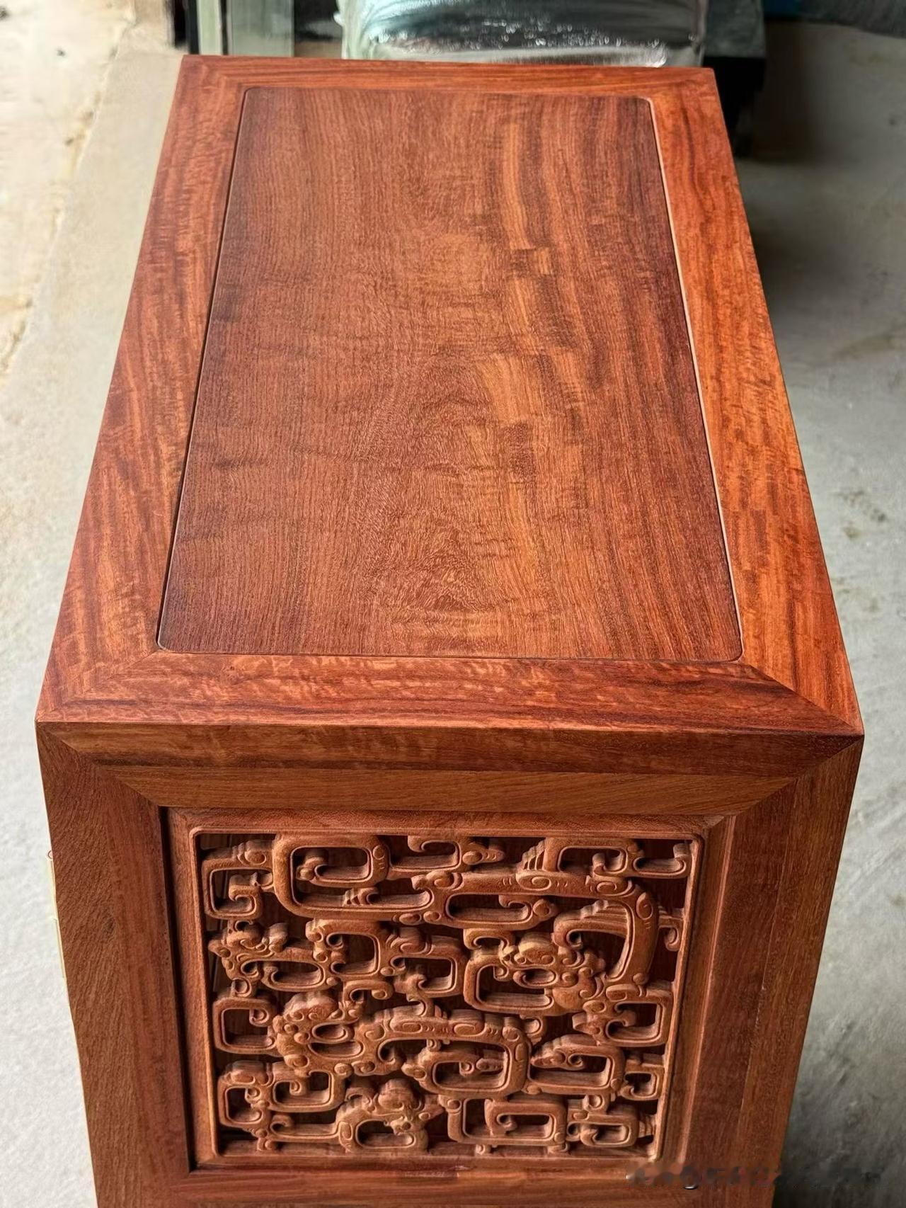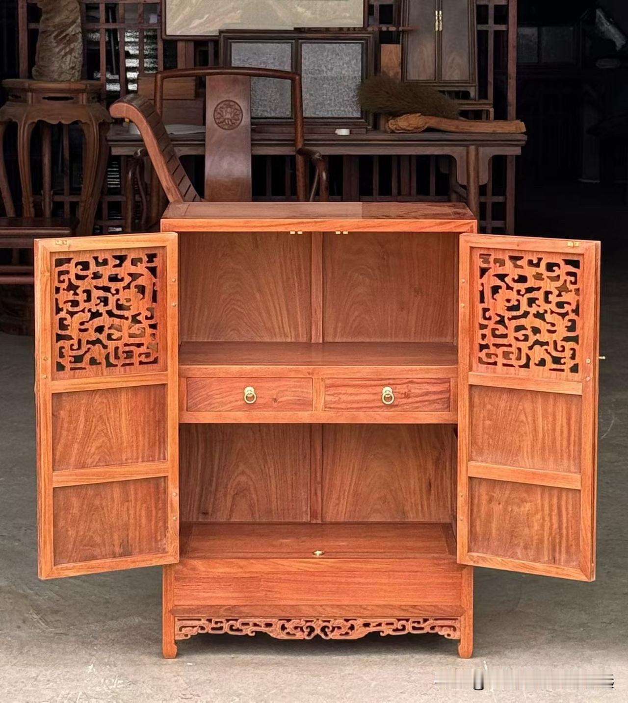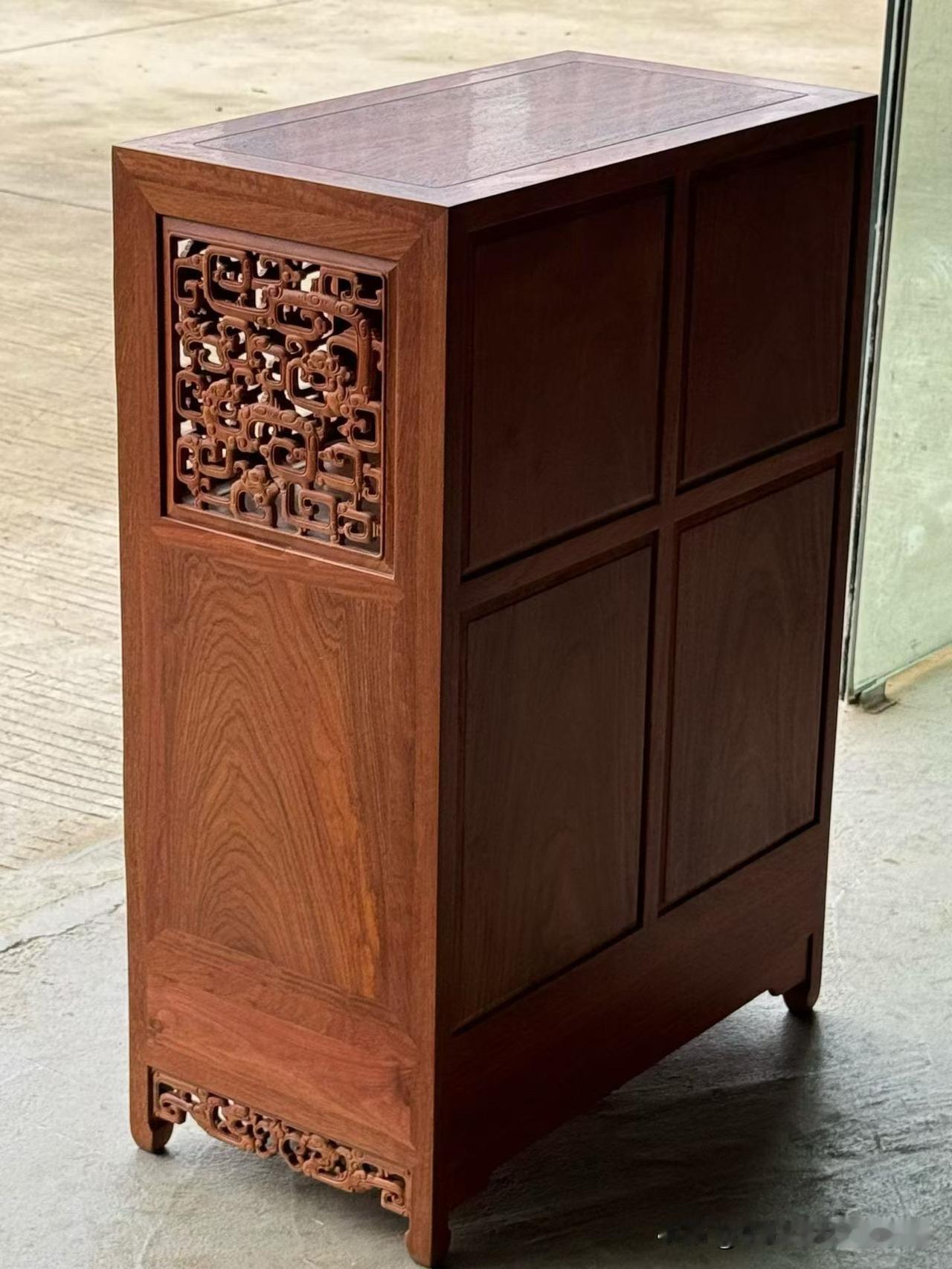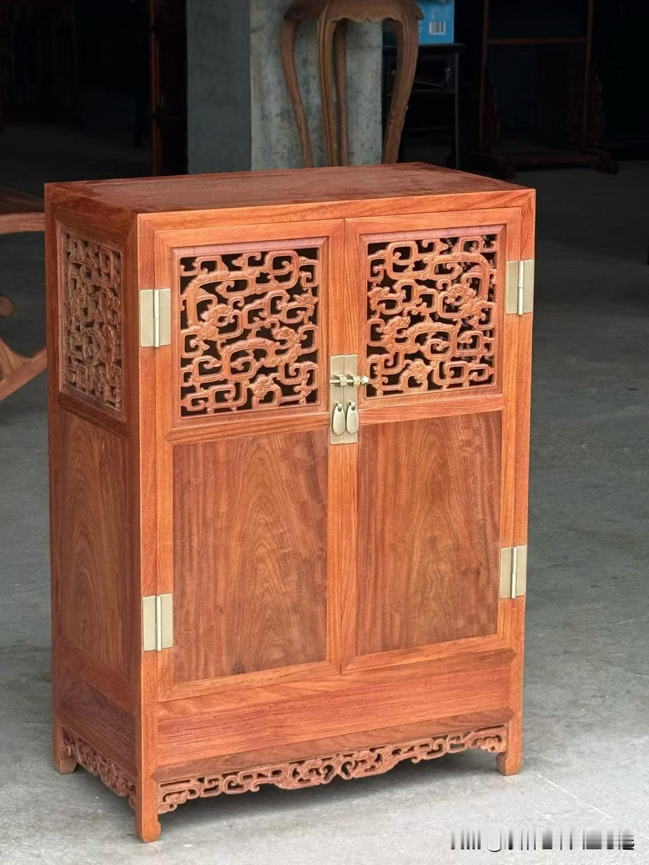 缅甸花梨•螭龙纹透格门小方角柜