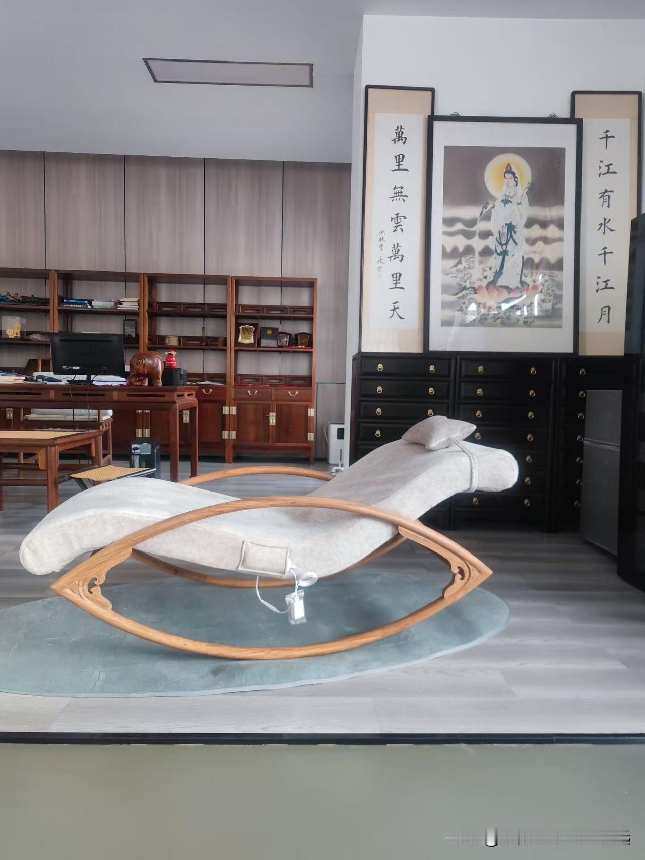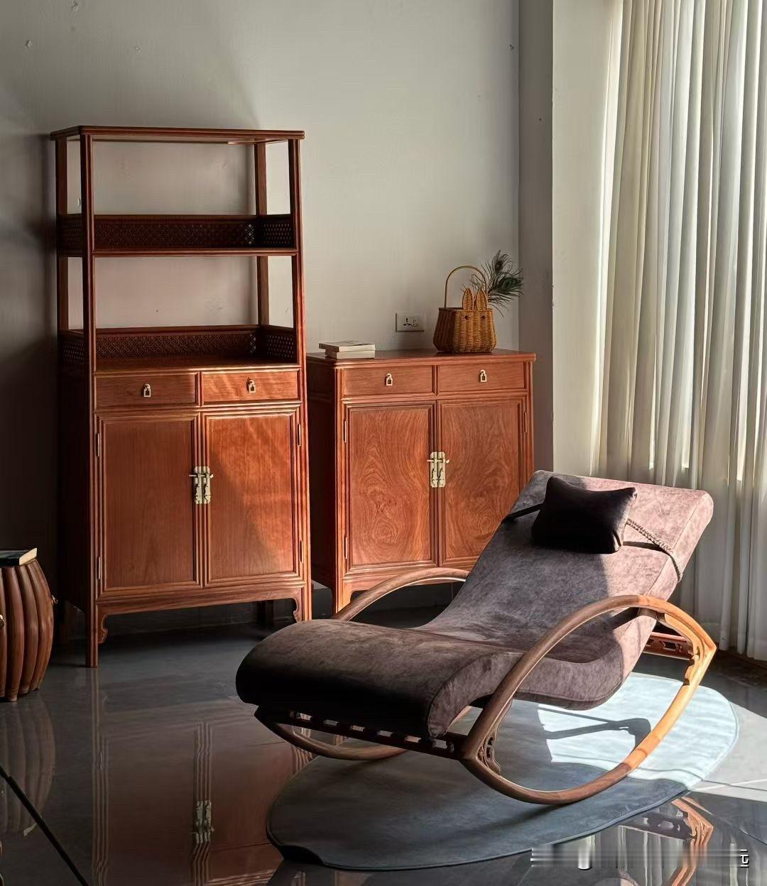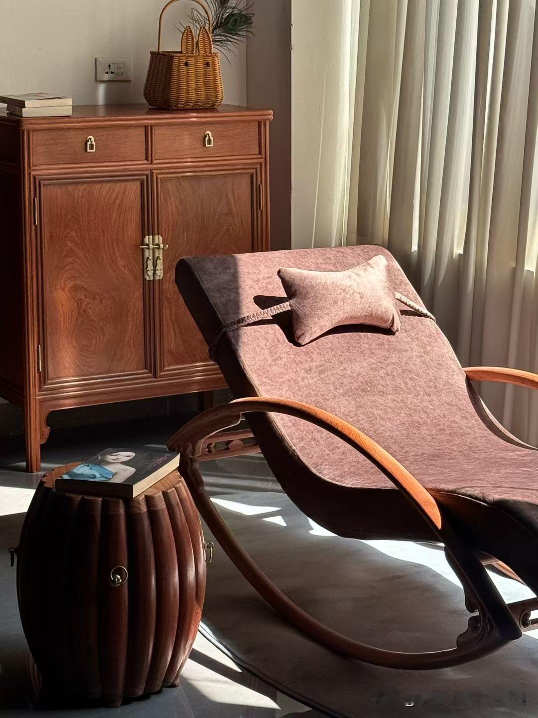 木韵藏雅,静享时光。 从本体的榫卯到摇椅的曲线, 每一处都是东方美学的温柔表达,