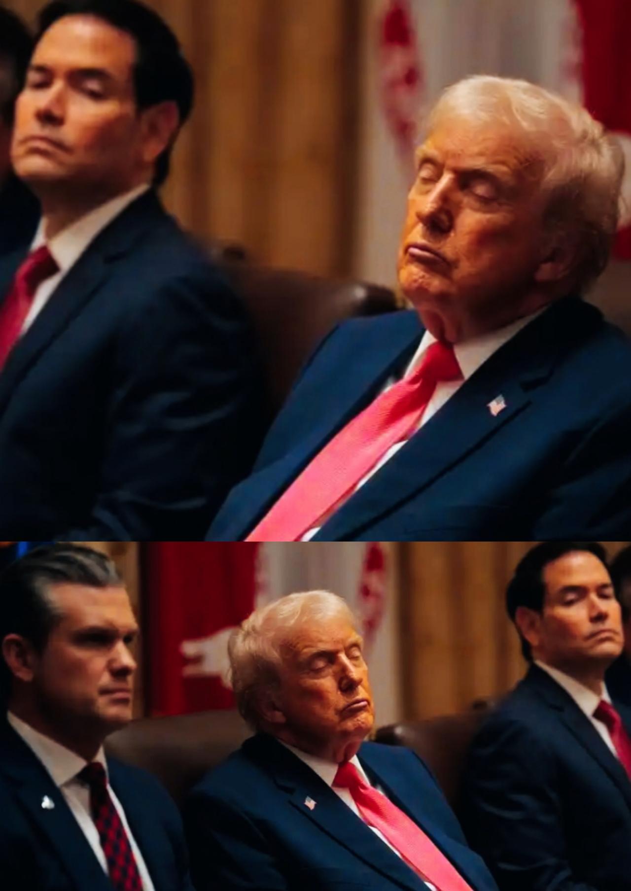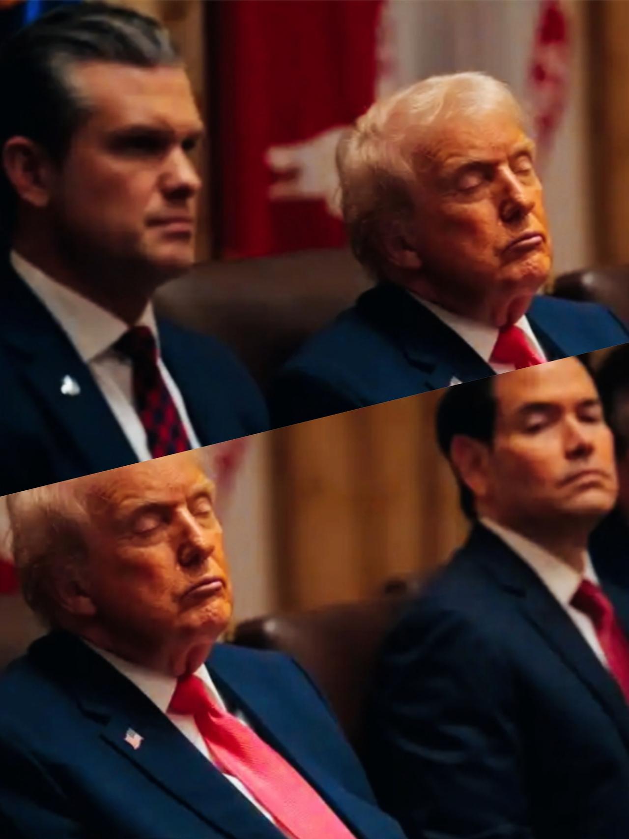 特朗普这是开会睡着了吗?这是进入梦乡了吗? 鲁比奥和海格赛斯一左一右,也没有提醒