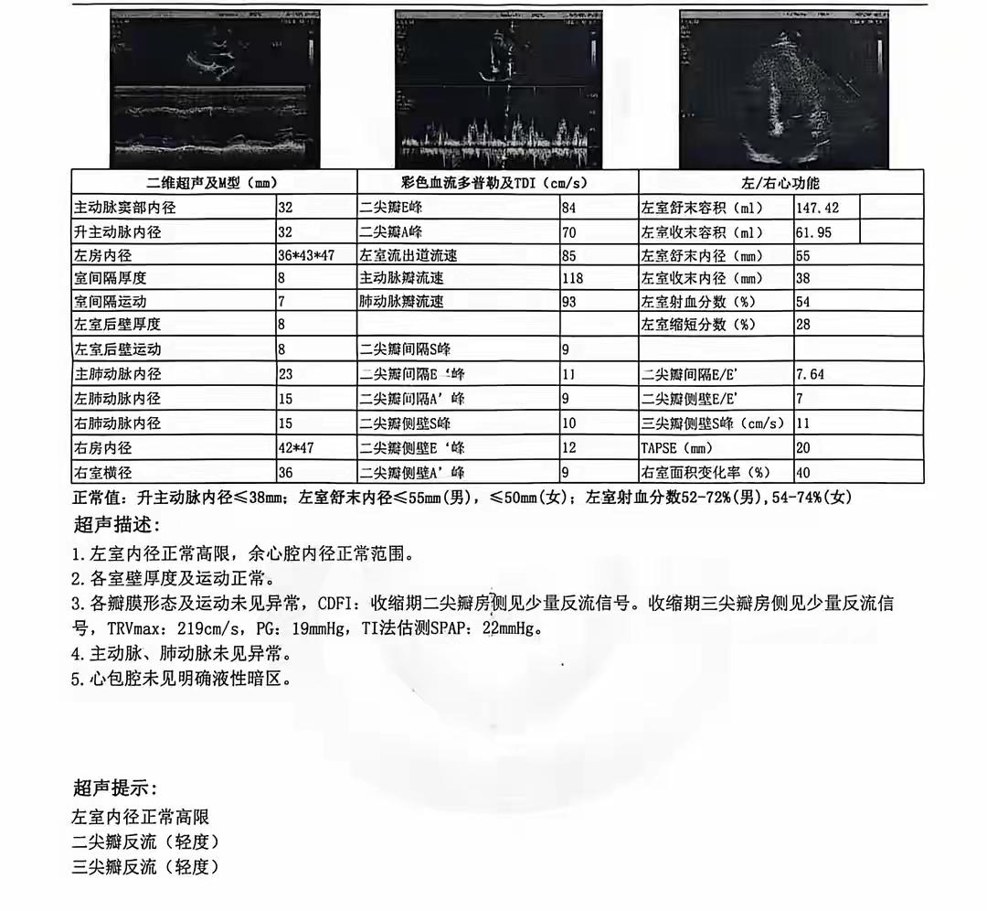 - 确诊房颤第二天:左房内径37/43/55,结论左心轻大