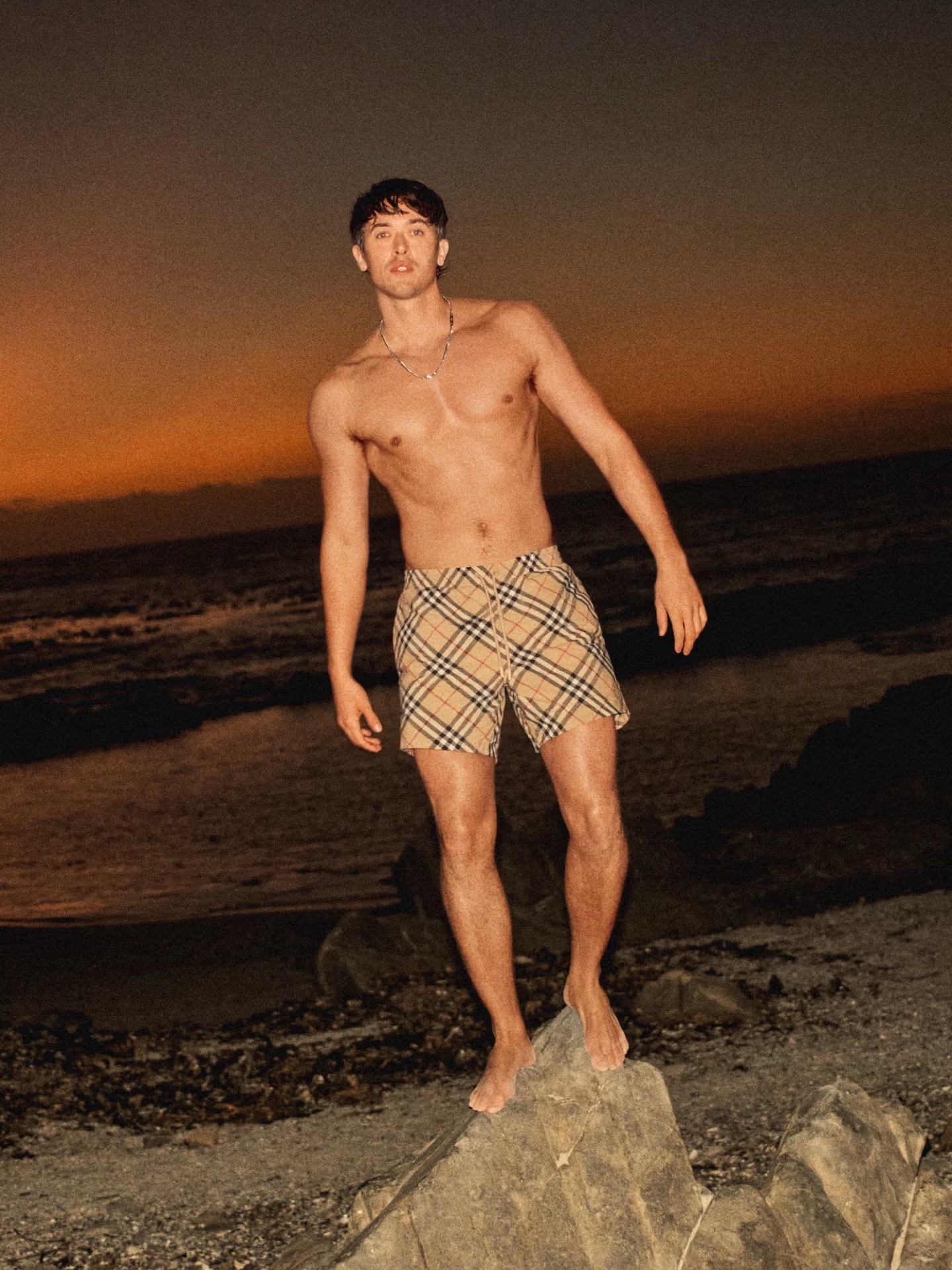 这一季最打动我的,反而是经典元素被重新处理的方式。标志性的格纹没有被强调得太用力,而是落在比基尼、泳裤这些更贴近身体的单品上,让经典变得更随性、更年轻。沙米色、茄紫色到矢车菊蓝的色调过渡,也很像一天之中光线的变化——从午后到傍晚,慢慢柔下来。