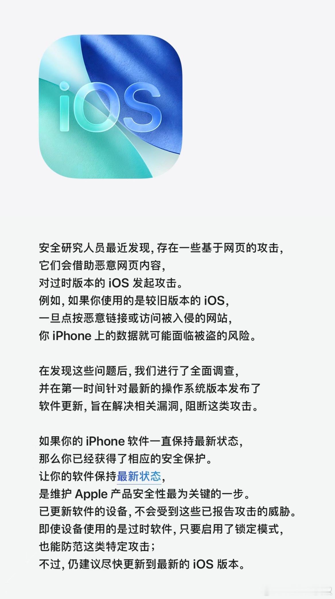 真的很少看到,官网发文来催你更新系统的…苹果官方发文提醒