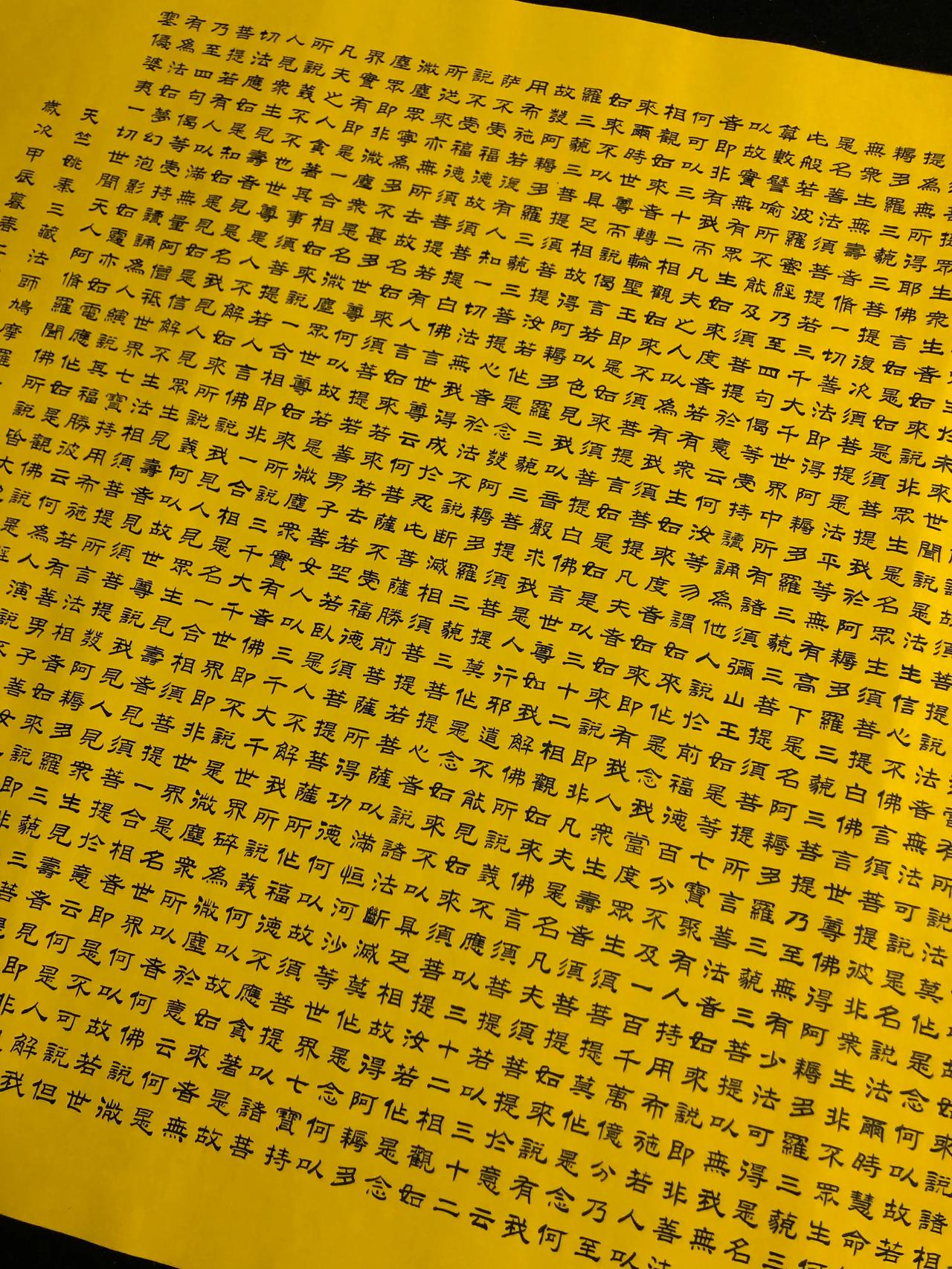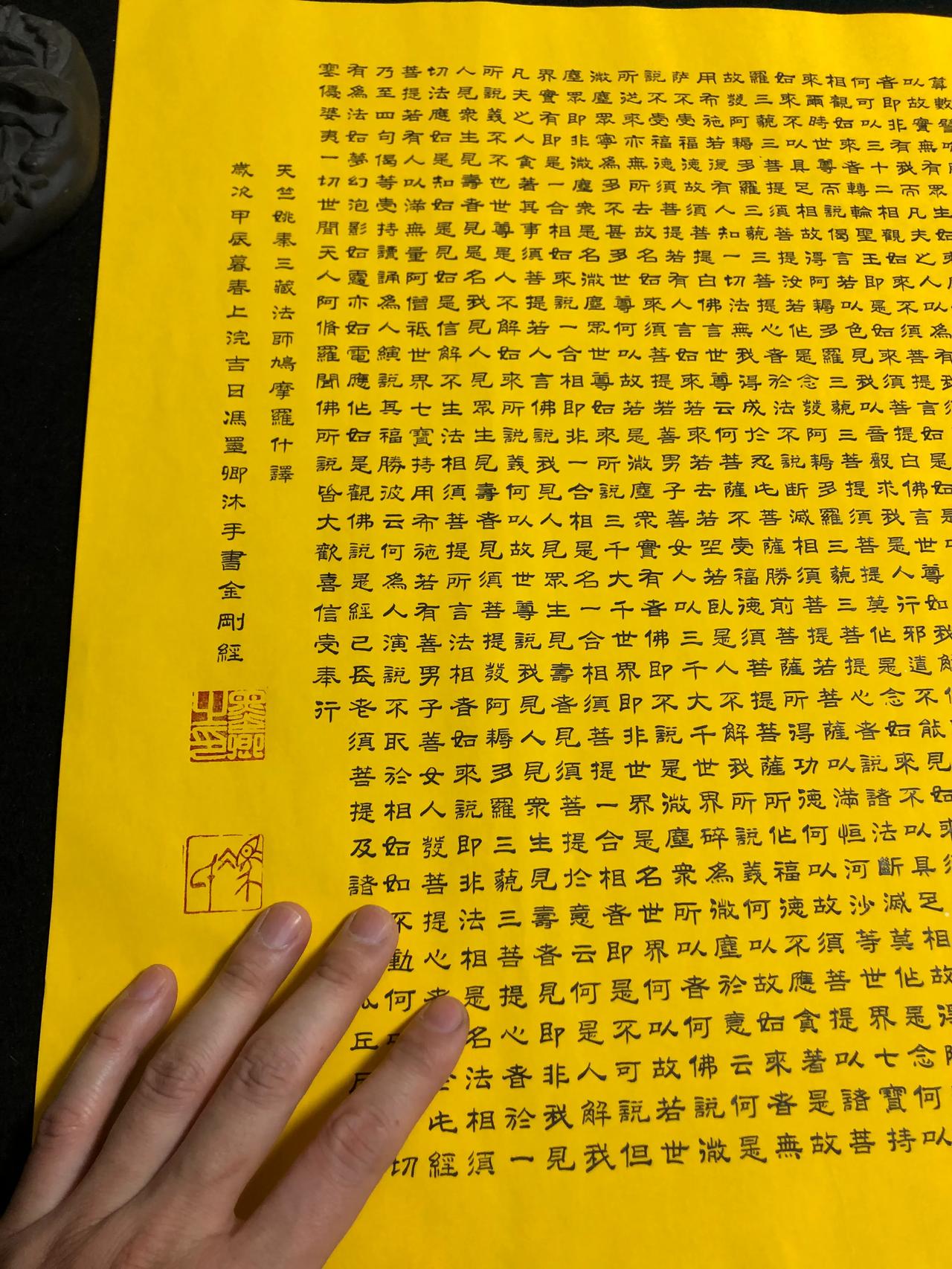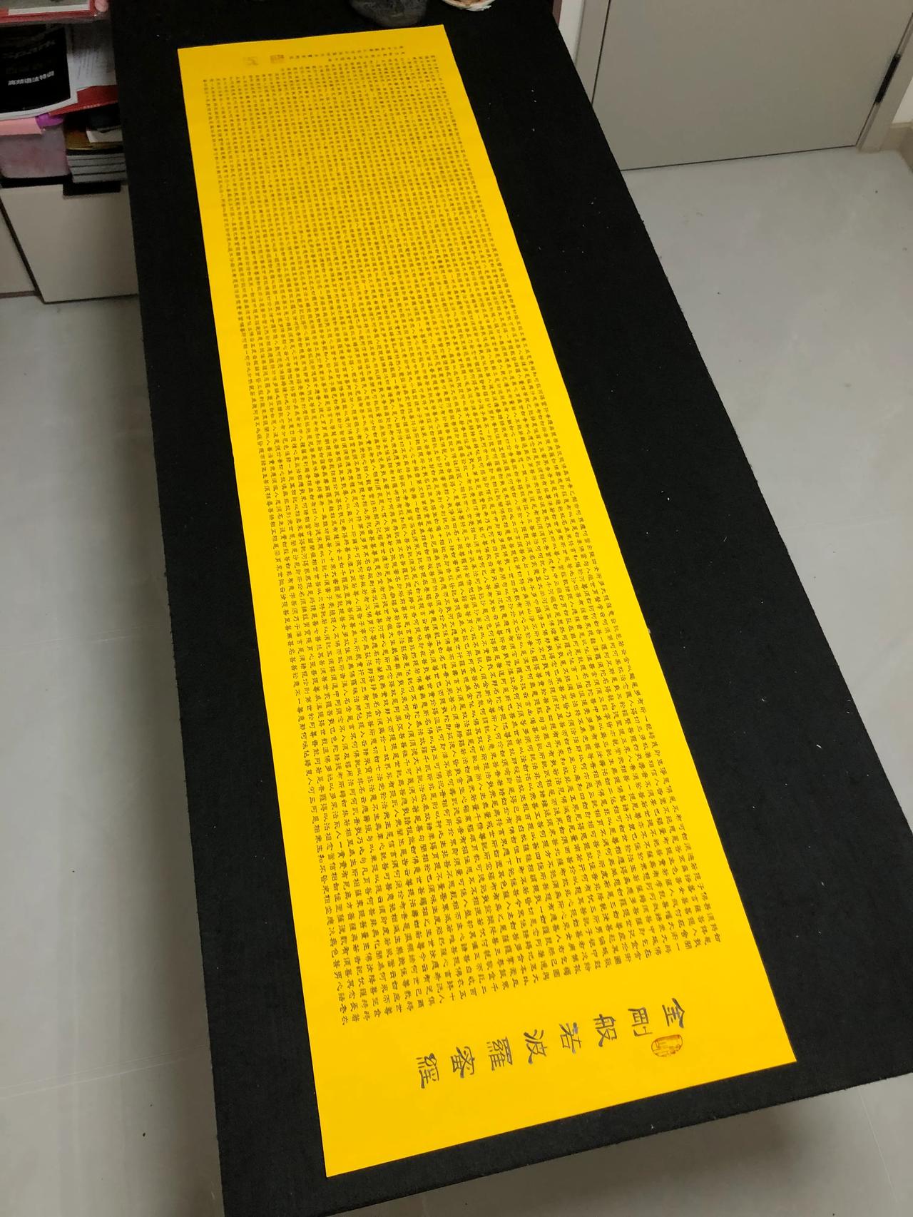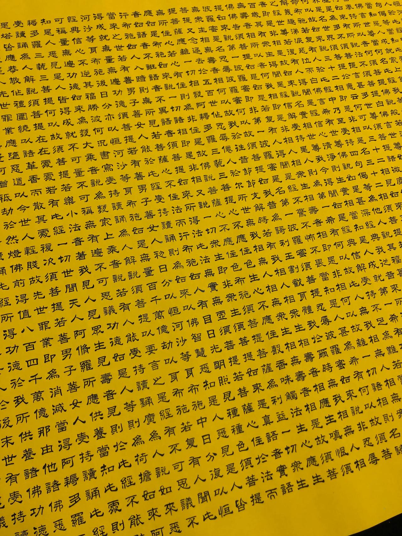 金刚经,5000多字,花了一周的时间,每天七八个小时,每个字0.7厘米,比小拇指