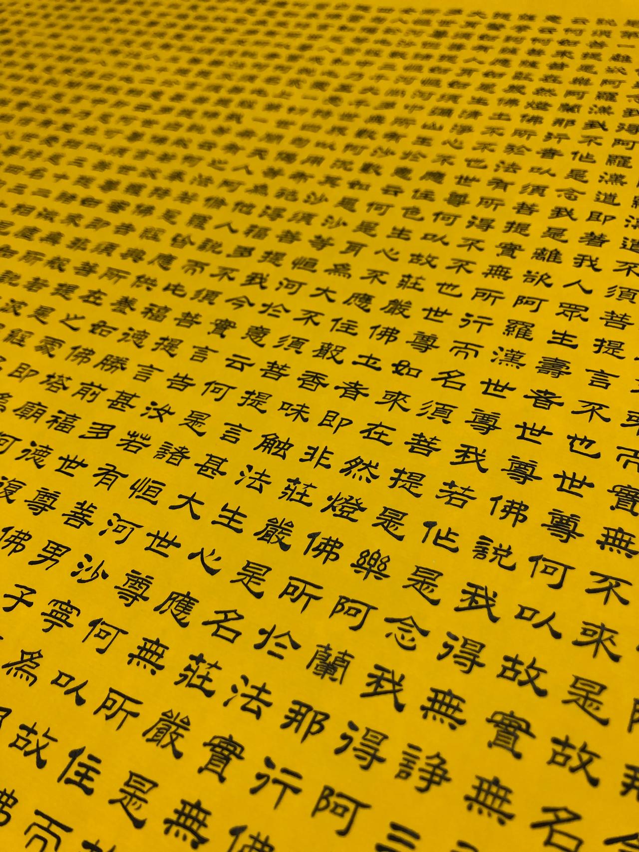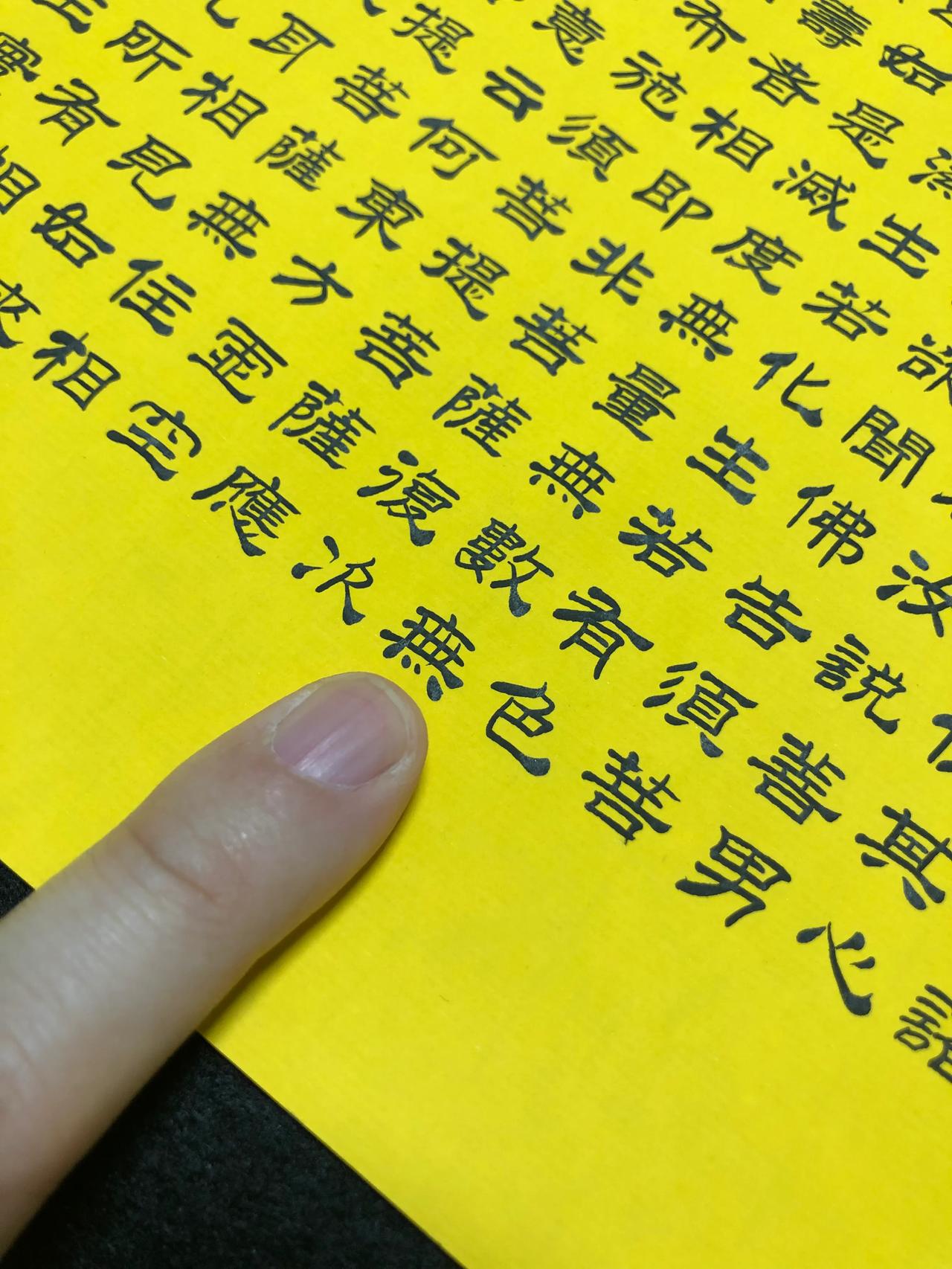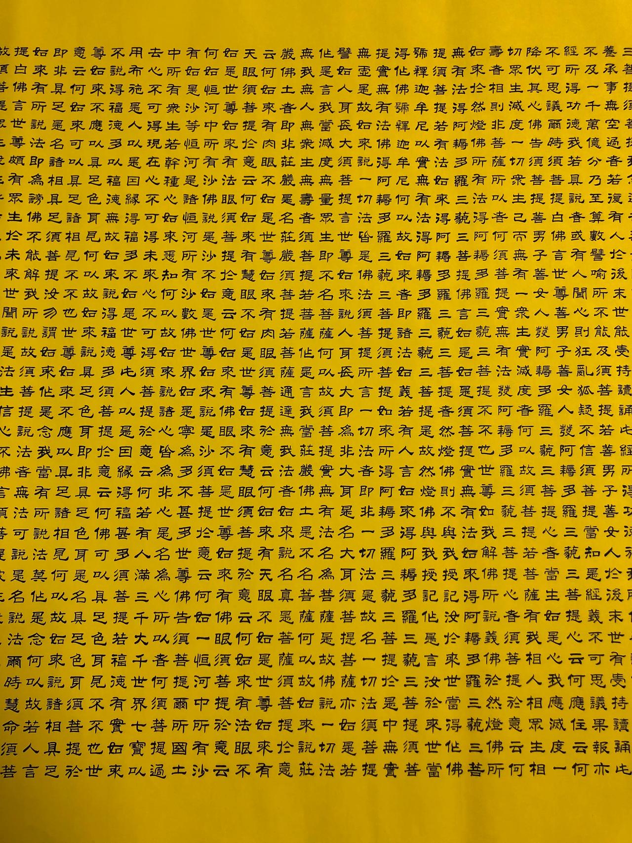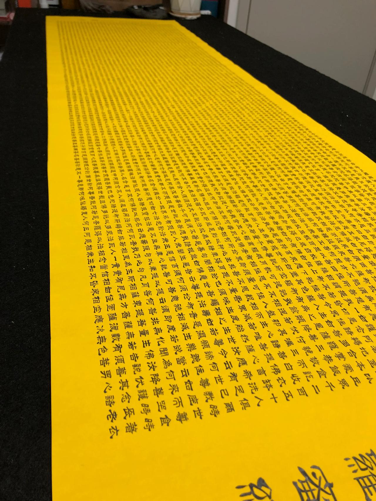 金刚经,5000多字,花了一周的时间,每天七八个小时,每个字0.7厘米,比小拇指
