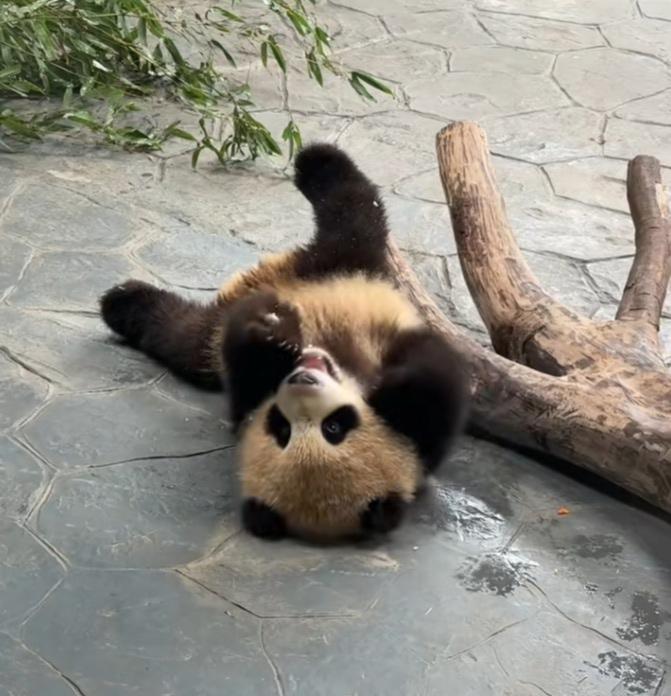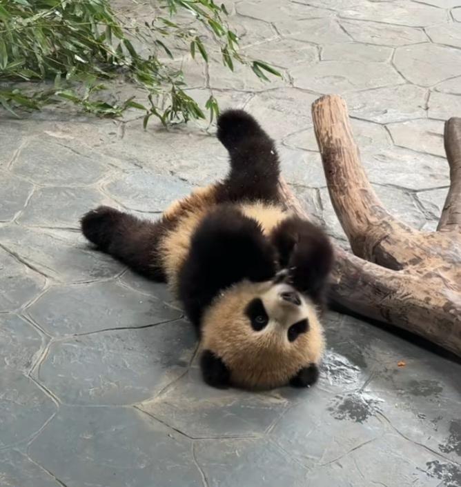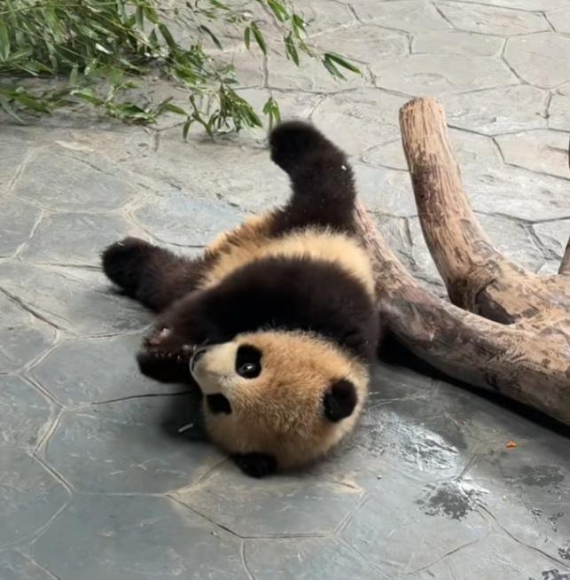 芊然小朋友拿着一小块嫩笋躺在地上咬啊咬,一只小脚翘得老高,这孩子这么小就开始挖煤了呀,弄得身上都是泥土的颜色,这样子真悠闲自在,网友们说看不得它这么悠闲,该送它上学去,给它布置一些作业做一做![偷笑]小家伙躺地上,开开心心无忧无虑地咬着笋块玩,就像个玩具小公仔,天真无邪可爱极了![比心][赞]芊然 熊猫芊然 熊猫 大熊猫 熊猫到底多可爱 今天看熊猫了吗 国宝 (cr:@芝士oo)