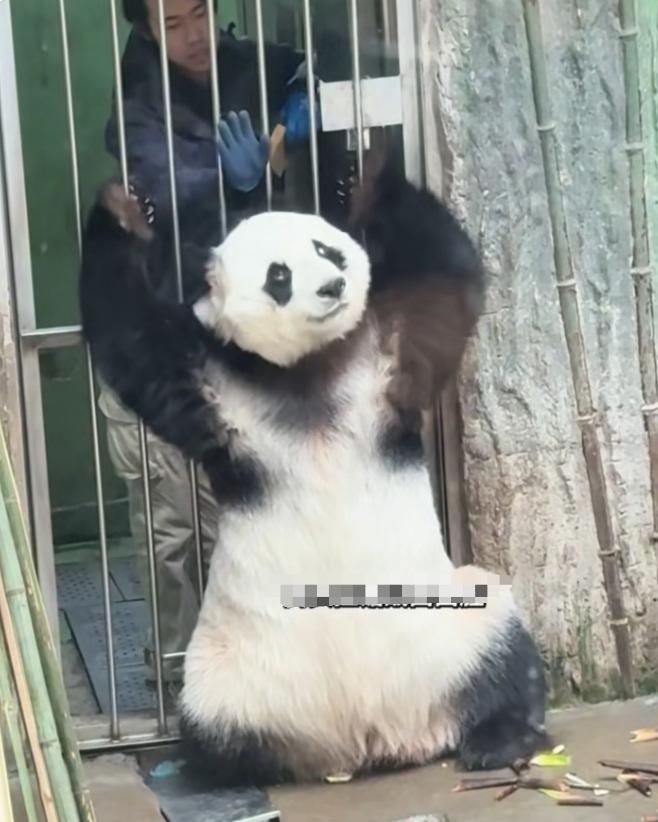 小白天好搞笑呀,又在铁门外面摆好姿势想让面面奶爸给它按摩,面面奶爸左手拿着一块窝窝头,用右手轻轻拍了几次小白天的头逗它:“你把窝窝头吃了我就给你按摩!”小白天被拍了几次头,又见奶爸还不给它按摩,心里特别不爽,翻了翻白眼,又张嘴质问奶爸:“你怎么还不给我按摩?你不给我按摩,我就不吃窝窝头!”小白天性格还挺倔强的,这位美丽的大小姐还真难伺候呢,它是什么时候开始喜欢按摩的呀?小姑娘挺会享受挺聪明,它也知道按摩很舒服,对身体有好处,它这个爱好还挺特别的![大笑][赞]小白天 熊猫小白天 熊猫 大熊猫 国宝 国宝团子 (cr:@汤圆🐼)