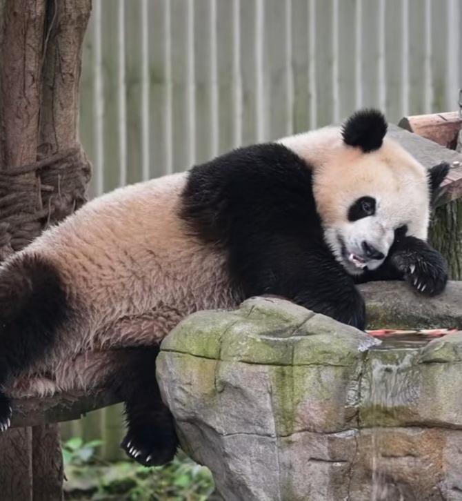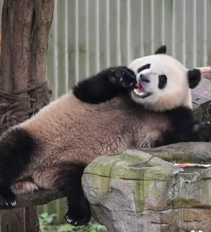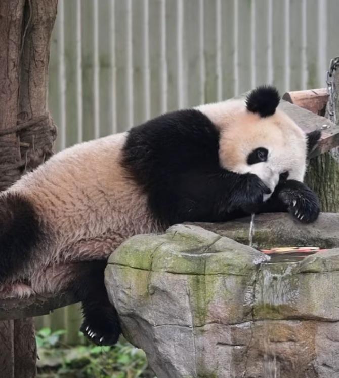 三妹儿一天好潇洒好自在呀,躺在装有水果块的水槽边,开开心心拿里面的水果块儿吃,一只小脚翘一翘甩一甩的,打着快乐的节拍,好得意好高兴啊,如果此时身旁再放一个迷你小音箱,播放一点舒缓的音乐或者好听的儿歌,那简直是太享受了!三妹儿这日子过得太悠闲太舒服了!换作谁都羡慕不已![比心][大笑]奇三妹 熊猫奇三妹 青虫看奇三妹 熊猫 大熊猫 国宝 重庆动物园 (cr:@掩藏的时光a)