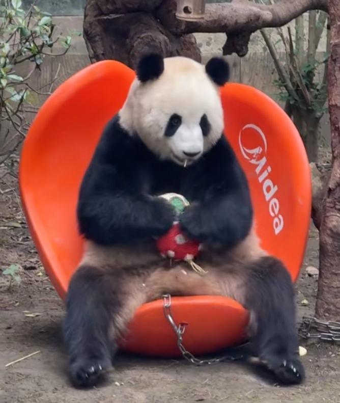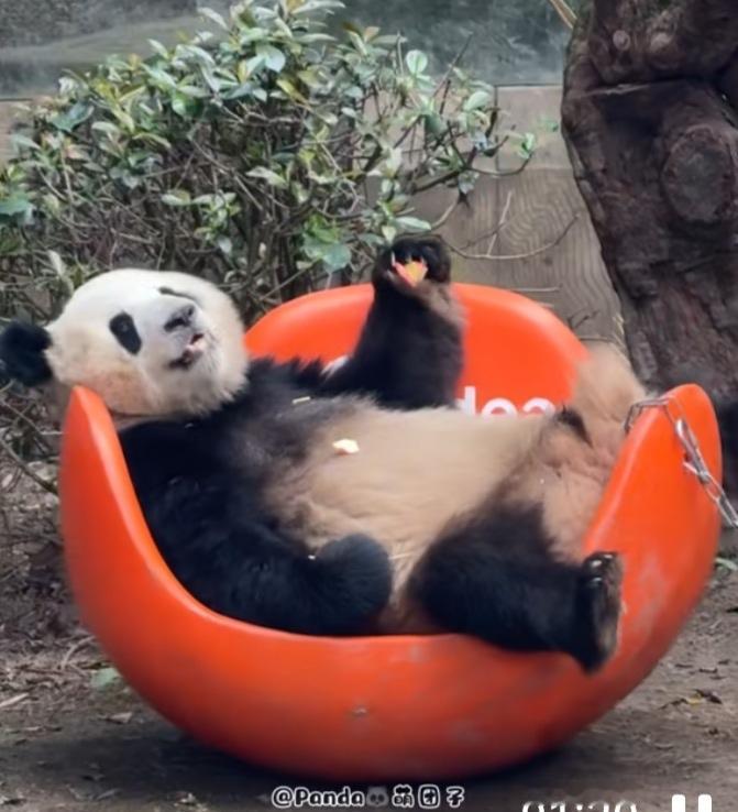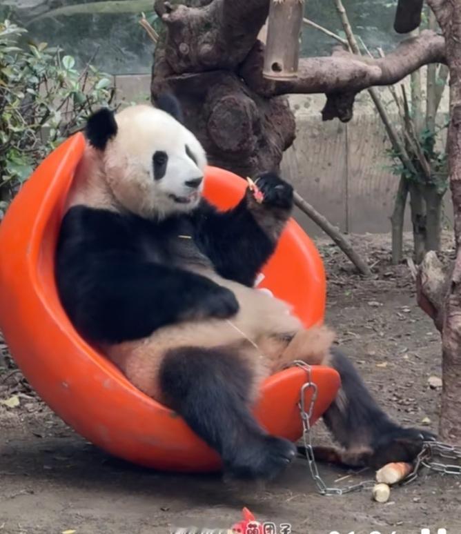 国宝挺会享受生活,它们很聪明,能解锁很多玩具的用法,智力挺高的!渝可真聪明,还知道这个橙色椅子是这样坐的,看它坐在上面好舒服的样子,偶尔舒服地晃一晃小脚,样子好帅好甜呀,人里人气的,特别可爱呆萌!这个橙色椅子还挺有趣的,又可以当靠椅,又可以当躺椅,一椅两用,被渝可玩得明明白白![赞][比心]渝可 熊猫渝可 熊猫 大熊猫 国宝 国宝团子 重庆动物园 (cr:@Panda🐼萌团子)